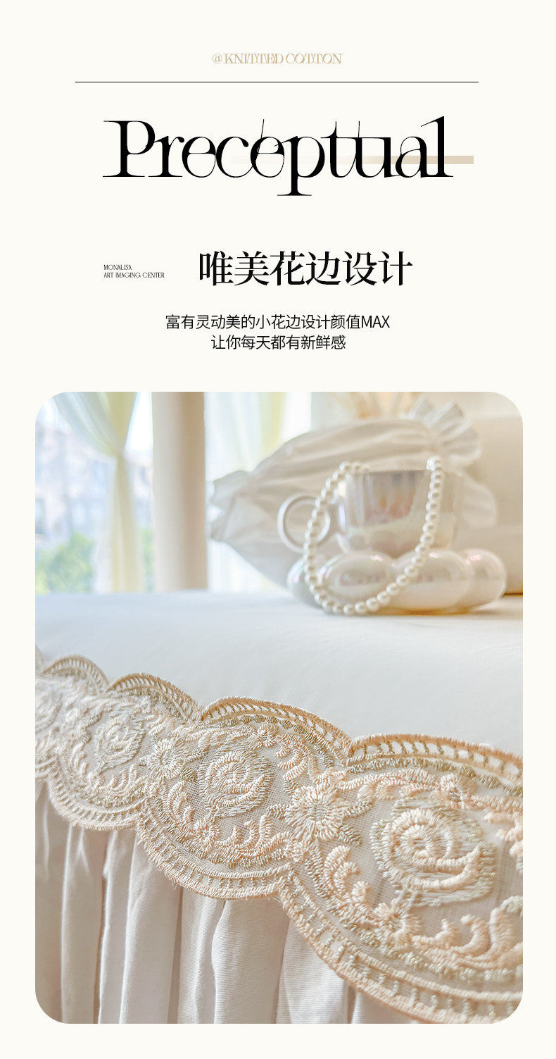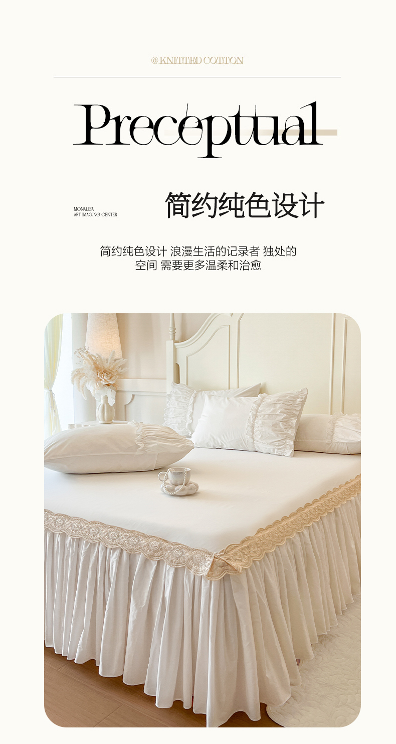 • 91家纺网 家纺一手货源 找家纺 (总)瑞宝 2025新款全棉花边床裙四件套系列-落日甜茶(控价308起),落日甜茶-梦幻玉,落日甜茶-奶油白,落日甜茶-青柠绿,落日甜茶-甜紫