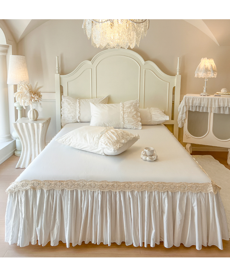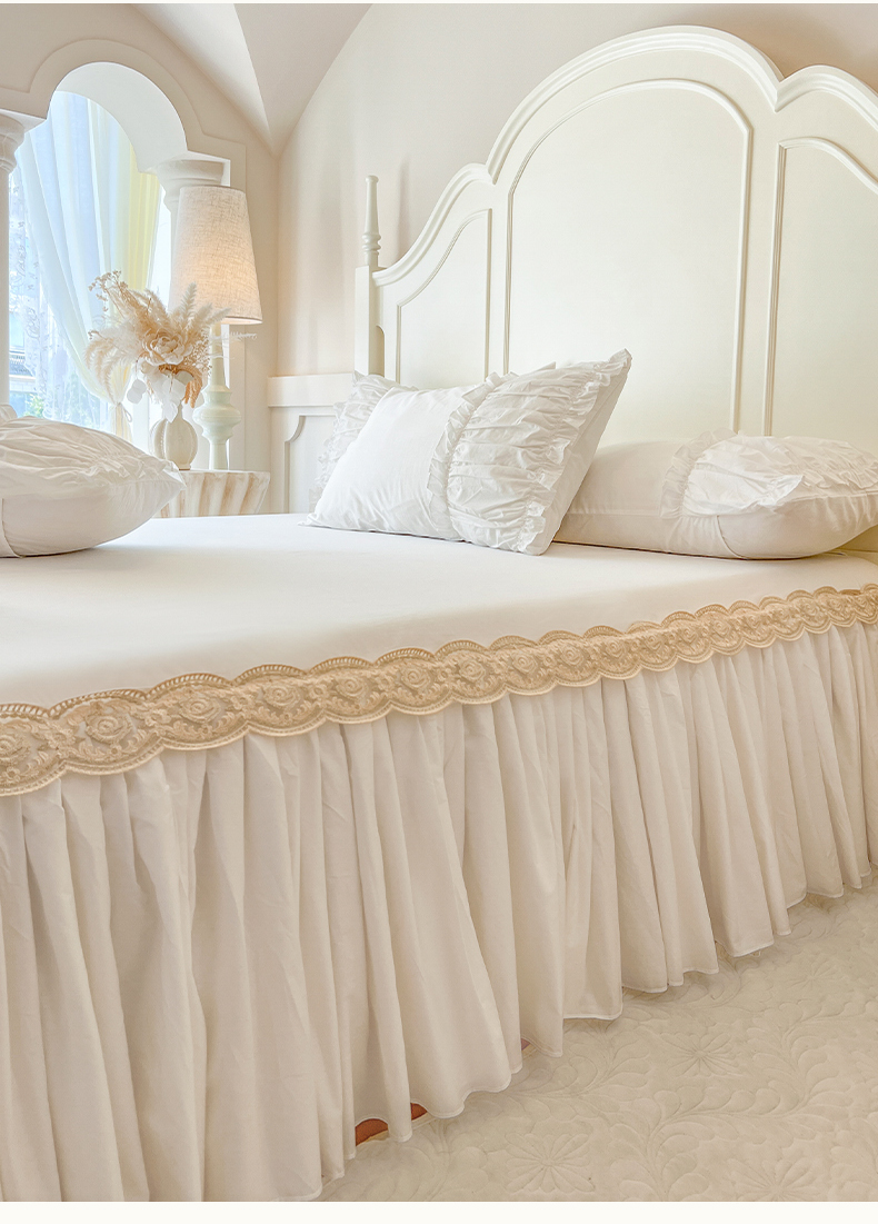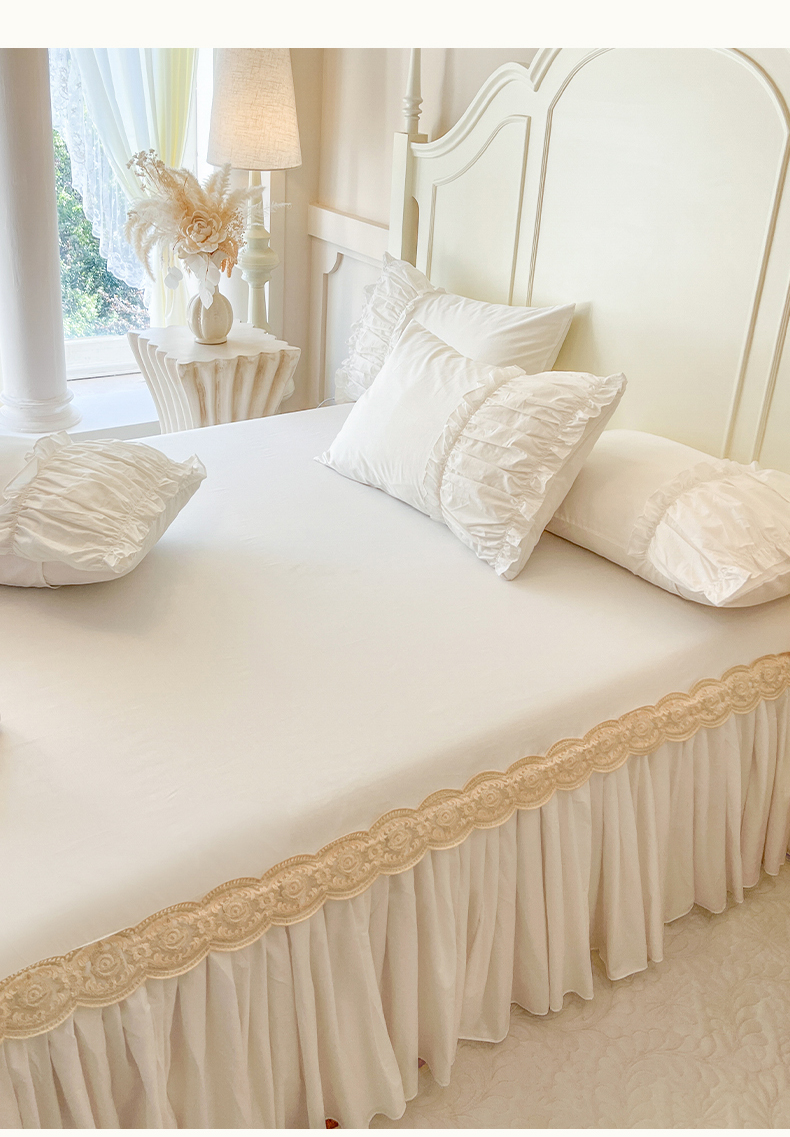 瑞宝 2025新款法式全棉花边维密系列床裙款三件套 维密-奶油白
