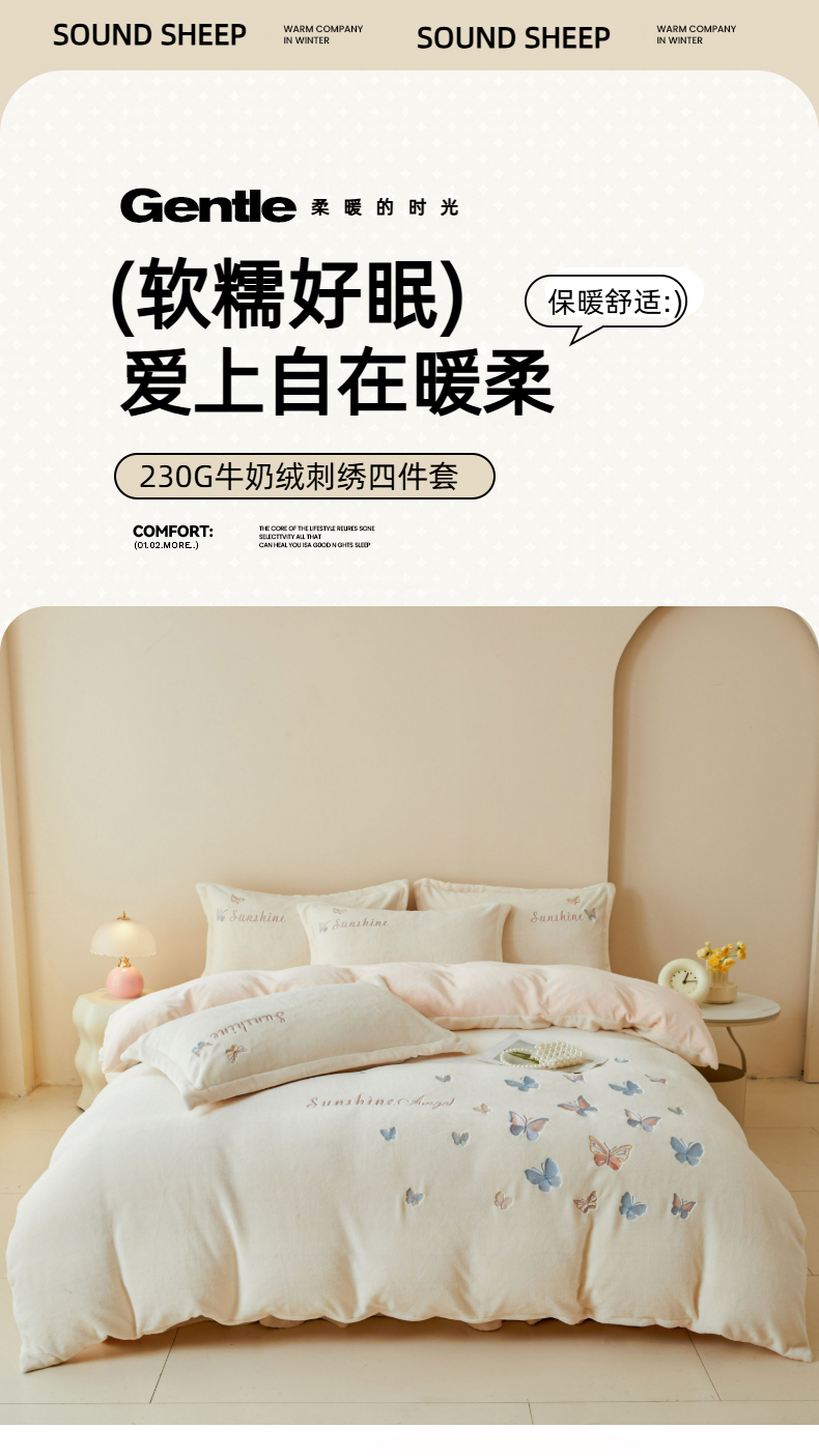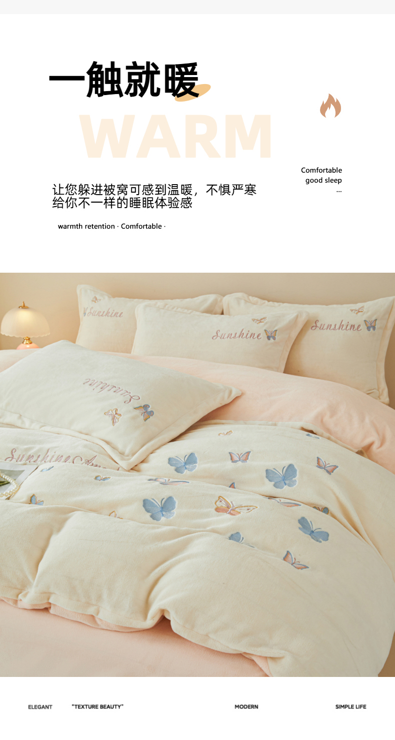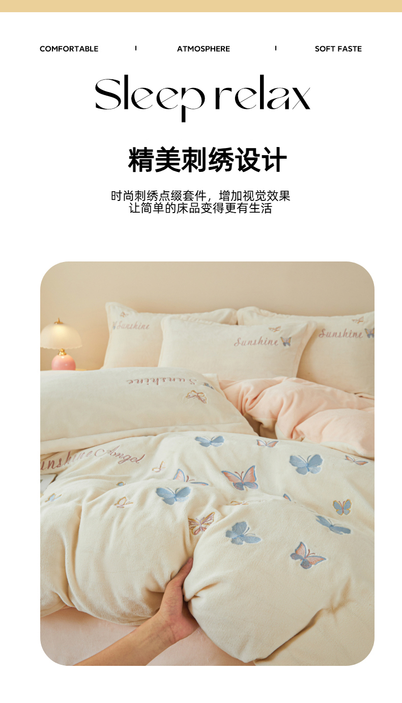 当前位置: 91家纺网 > 商品网购 > 床品套件 > 四件套 > 牛奶绒四件套 > 莱越家纺 2025秋冬新款蝴蝶刺绣牛奶绒四件套 刺绣蝴蝶款-米白+淡雅玉