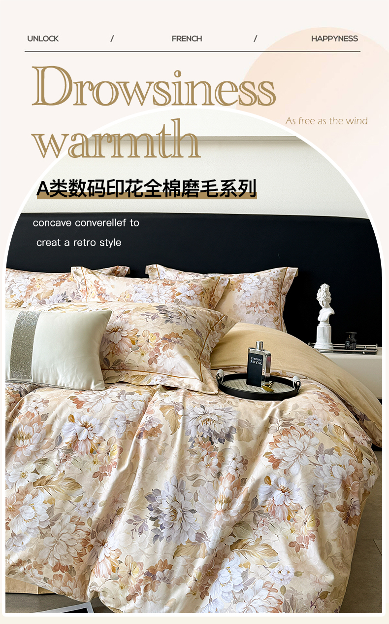 当前位置: 91家纺网 > 商品网购 > 床品套件 > 四件套 > 普通磨毛四件套 > 清雅福2025新款A类全棉磨毛数码印花四件套 曲艺芳华