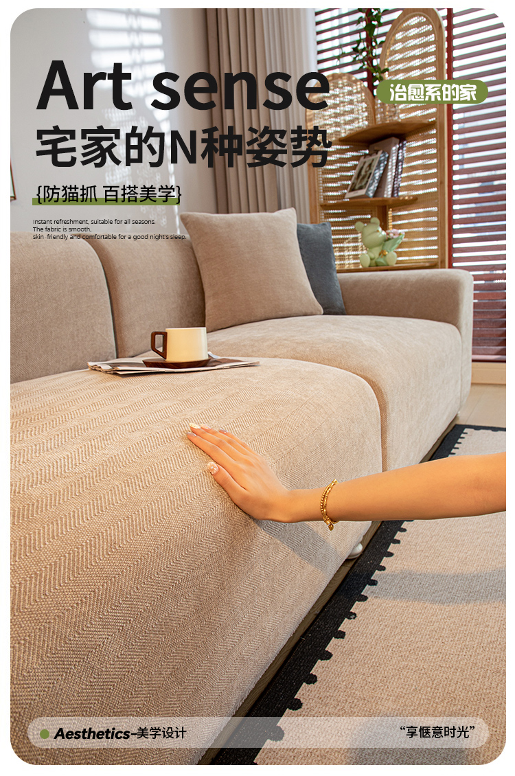 沐沐家纺 2026新款南笙沙发套 抹茶