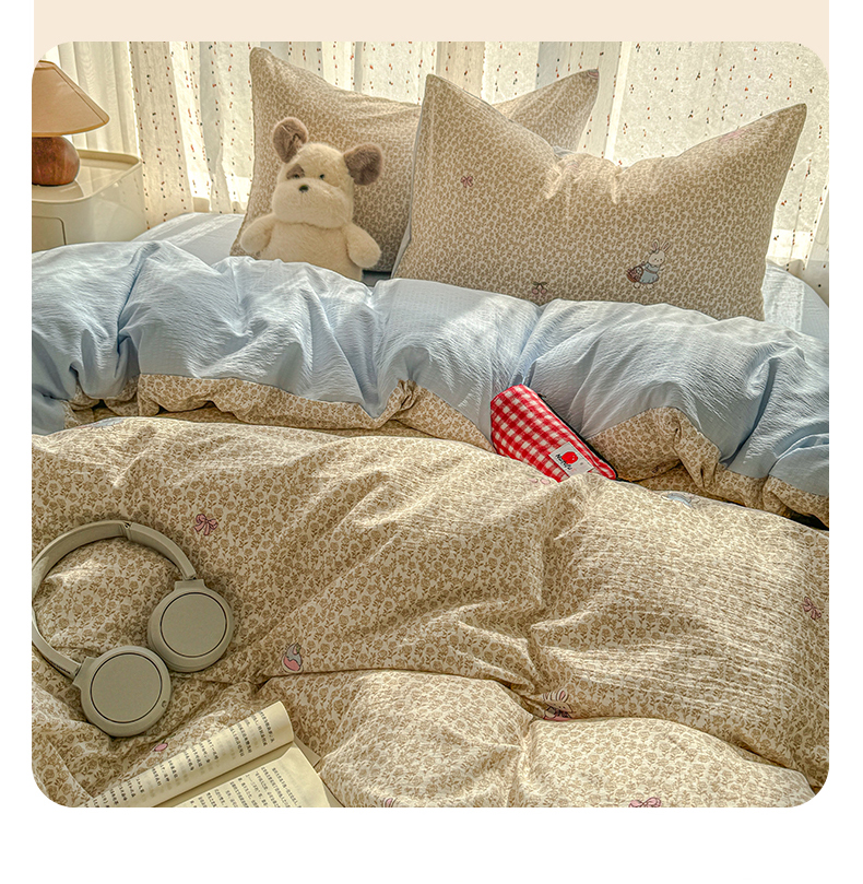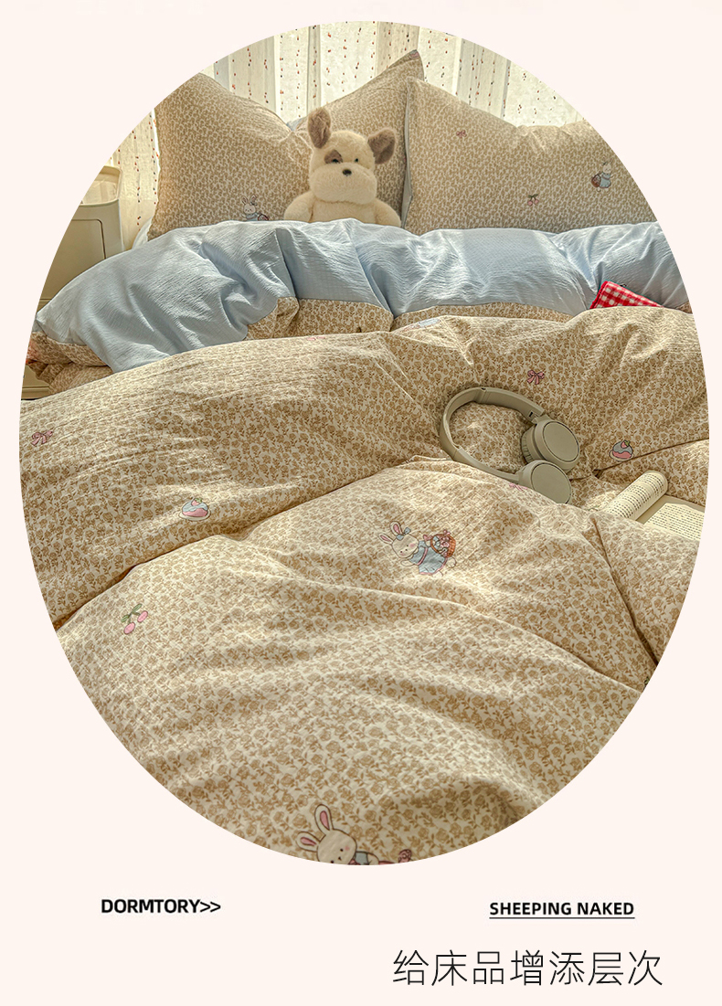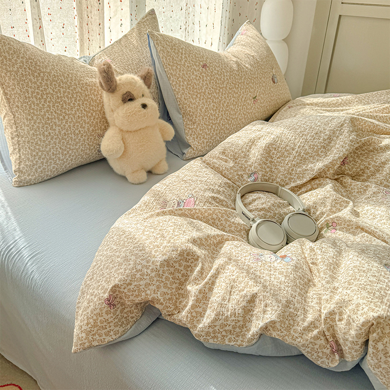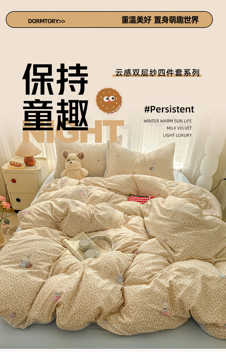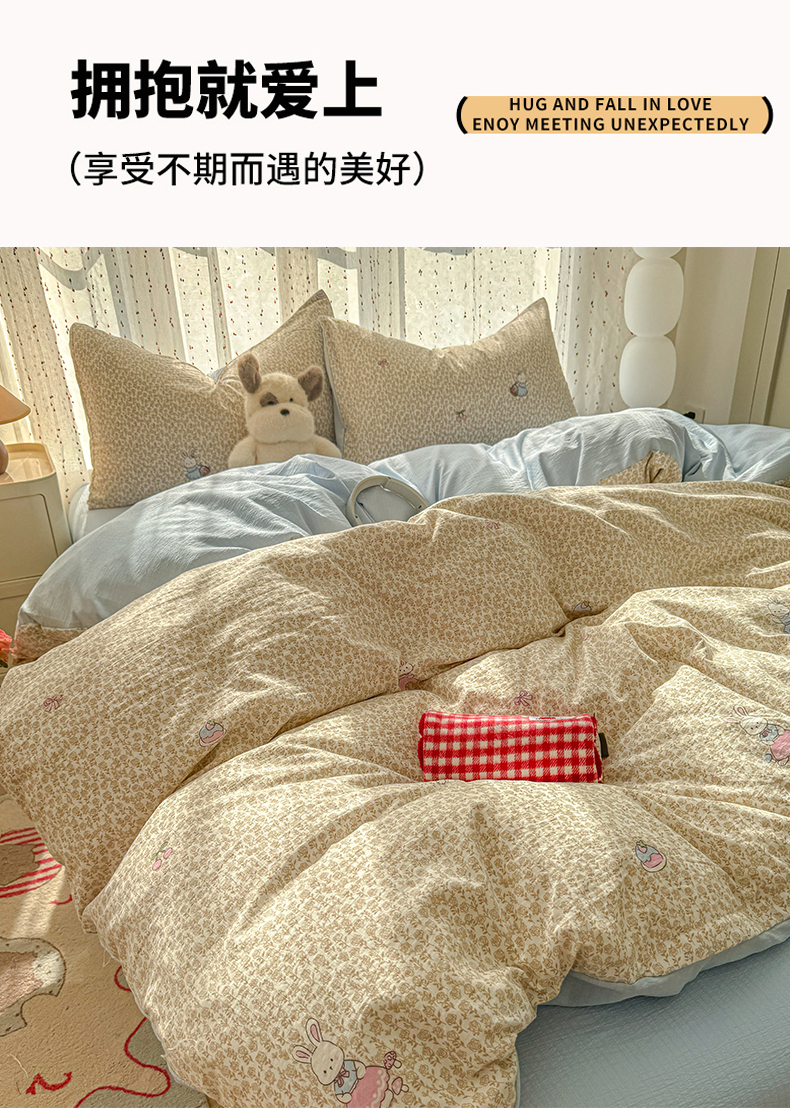 当前位置: 91家纺网 > 商品网购 > 床品套件 > 四件套 > 双层纱四件套 > 艾特你 2025新款云感双层纱卡通萌趣四件套 遇见-樱桃小兔