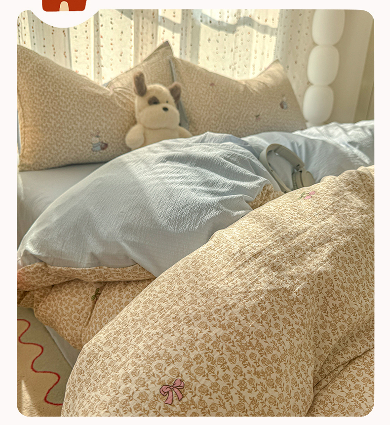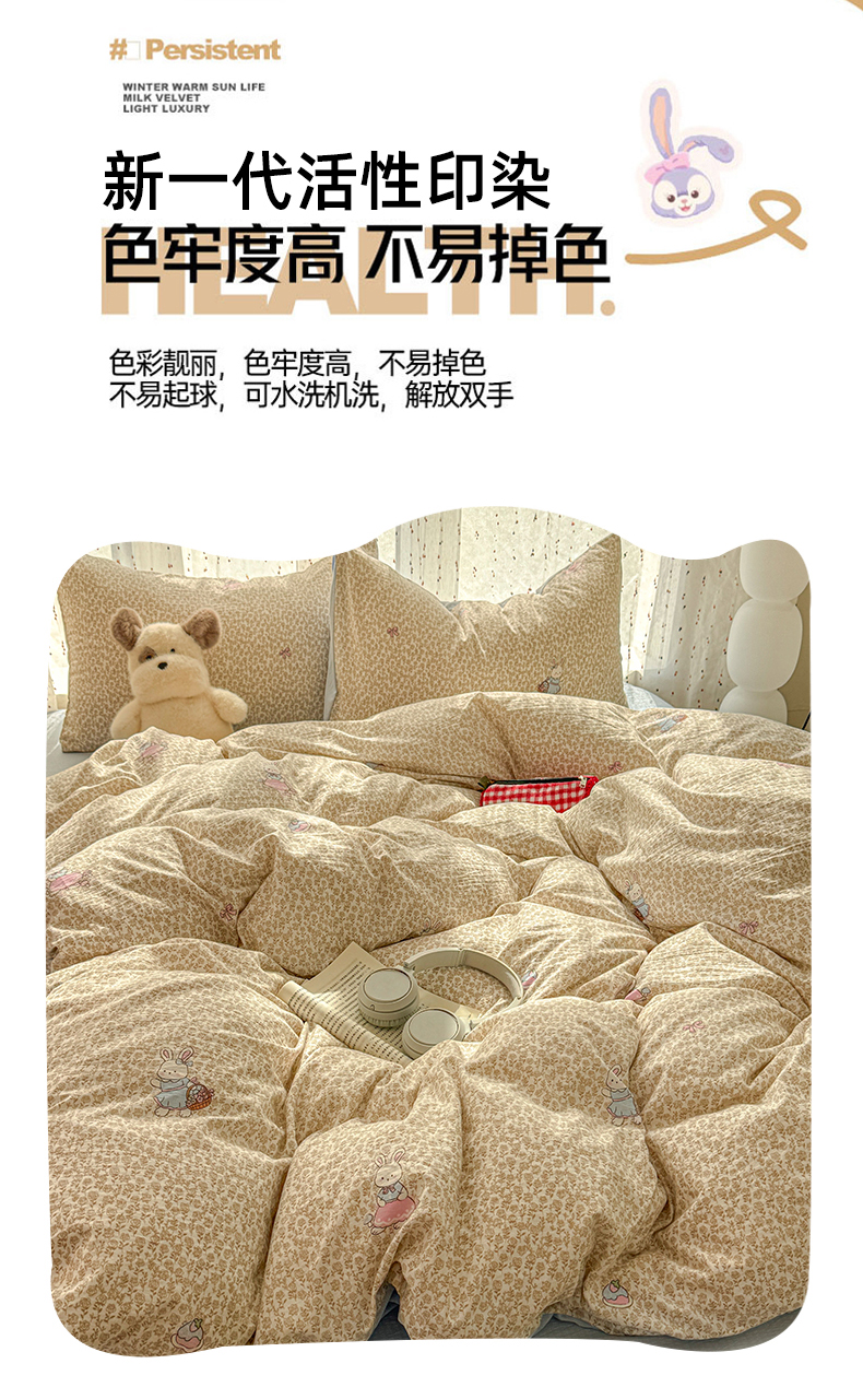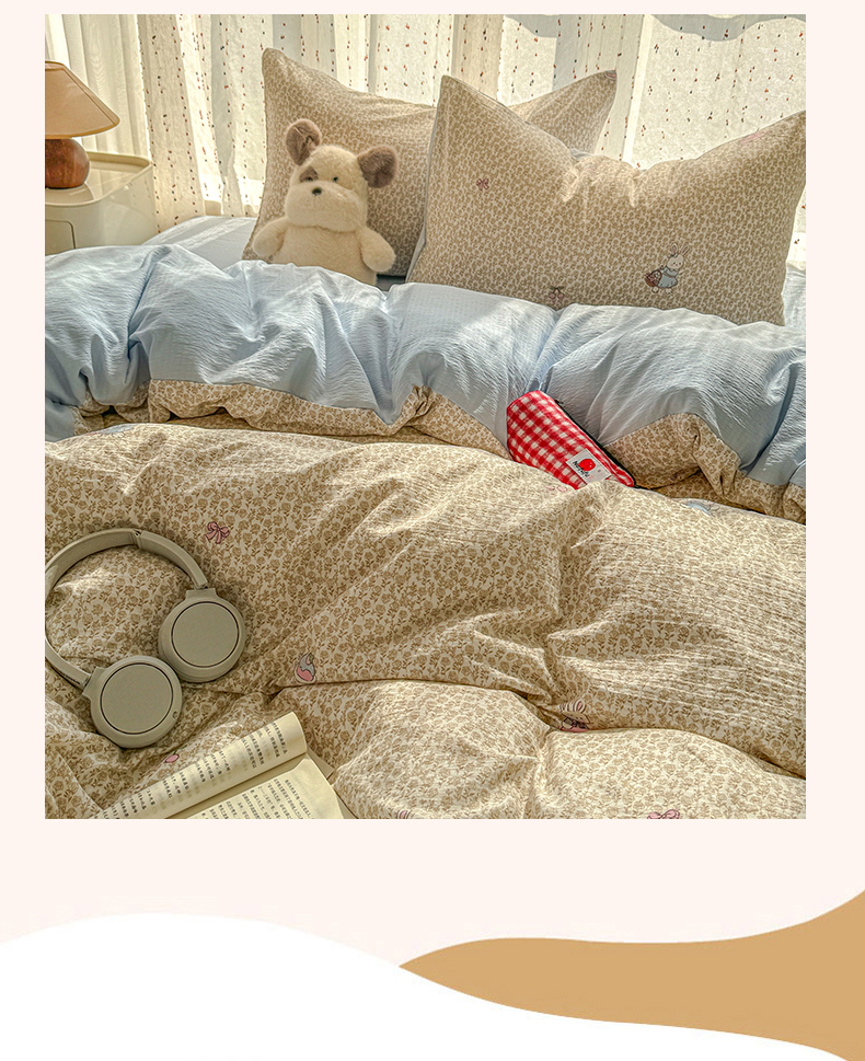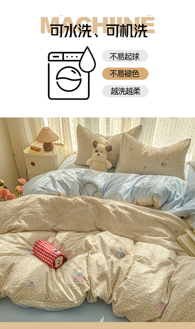 当前位置: 91家纺网 > 商品网购 > 床品套件 > 四件套 > 双层纱四件套 > 艾特你 2025新款云感双层纱卡通萌趣四件套 遇见-樱桃小兔