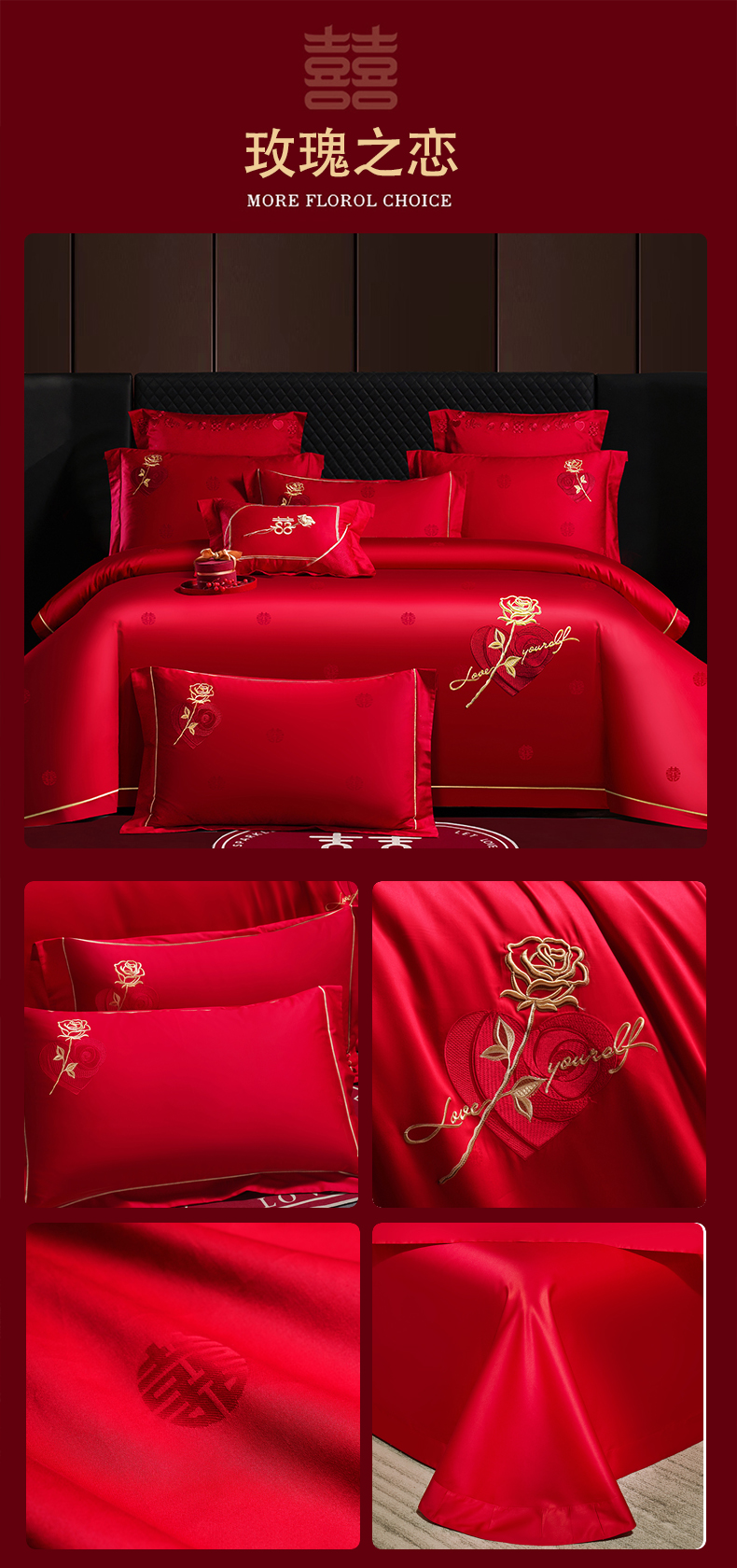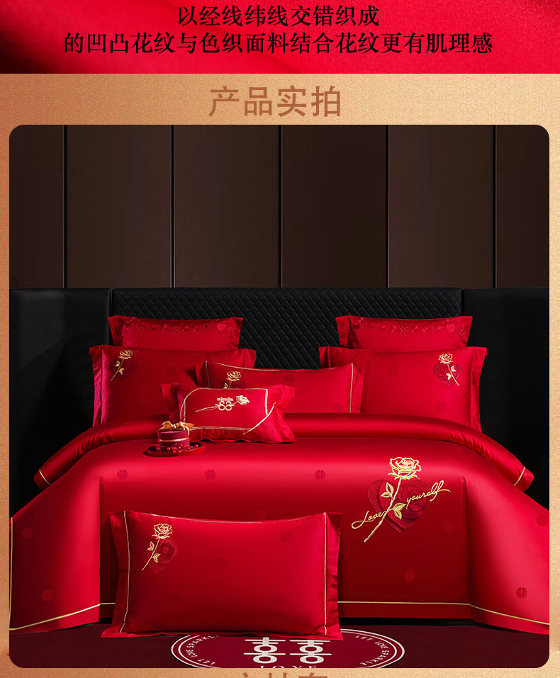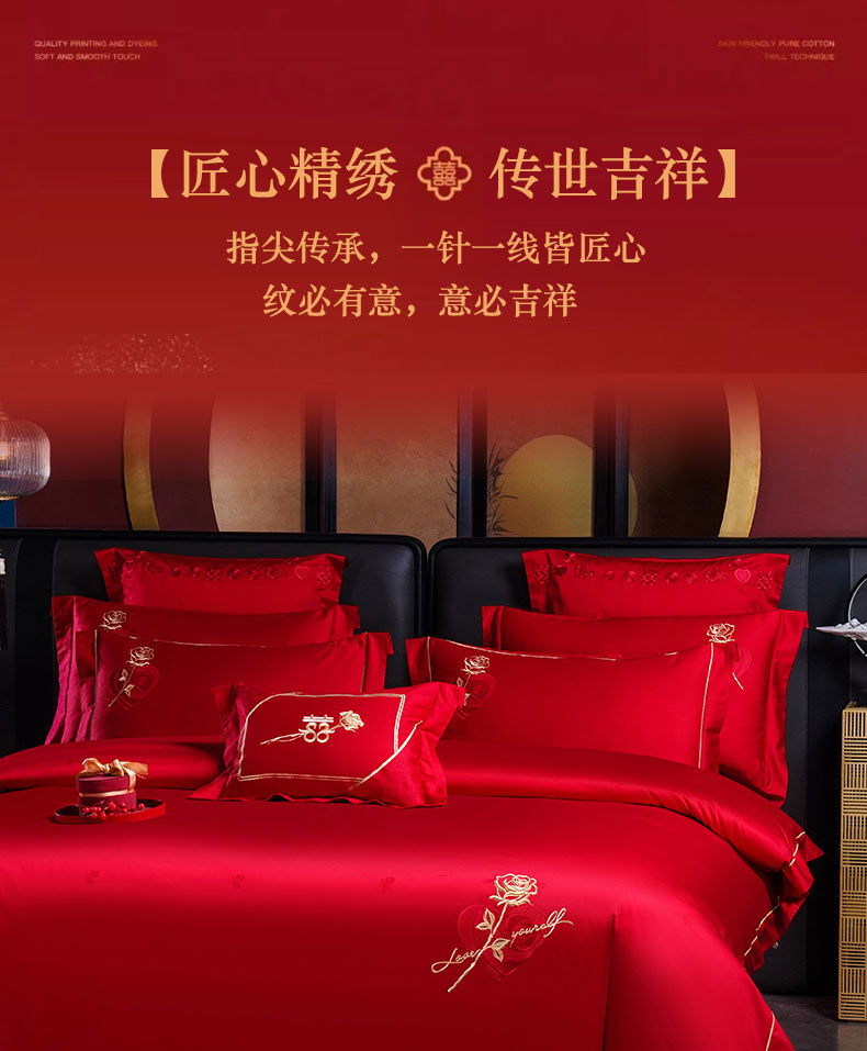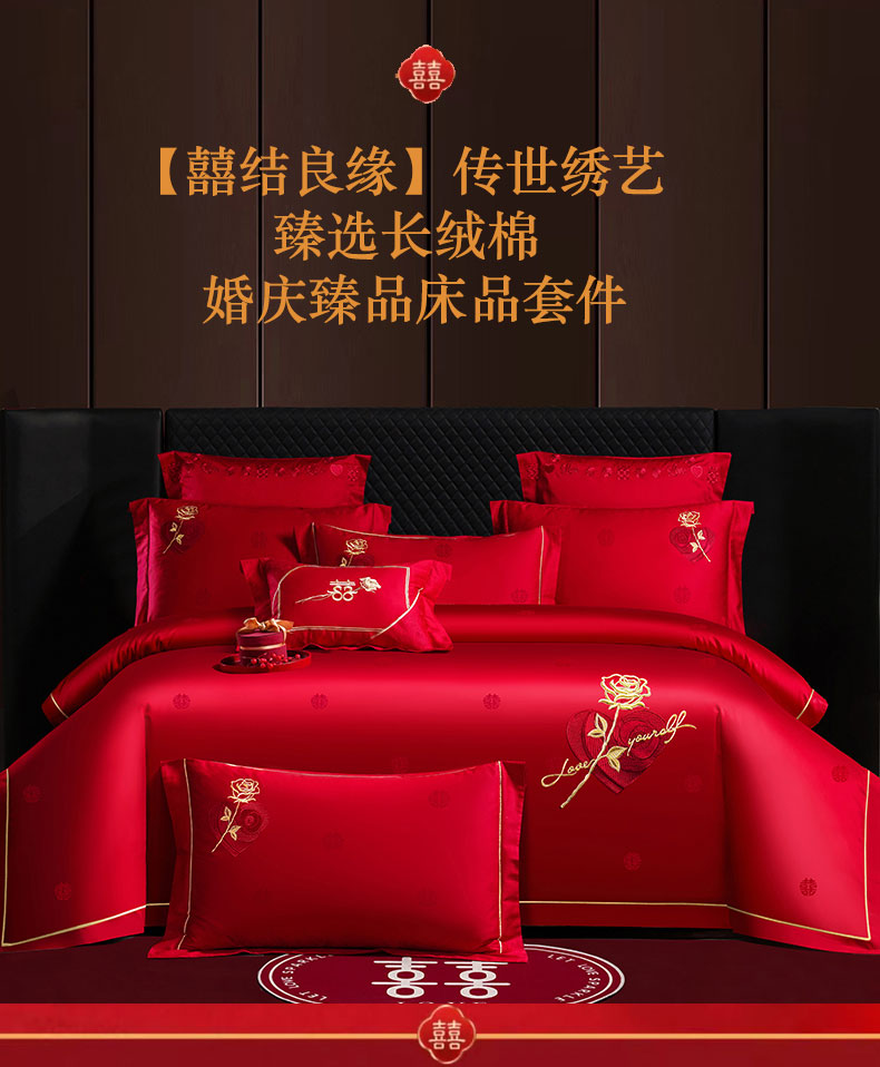 当前位置: 91家纺网 > 商品网购 > 床品套件 > 四件套 > 婚庆四件套 > 蒂爵 2025新款婚庆长绒棉时尚小红书爆款刺绣婚庆四件套多件套-提花款 玫瑰之恋