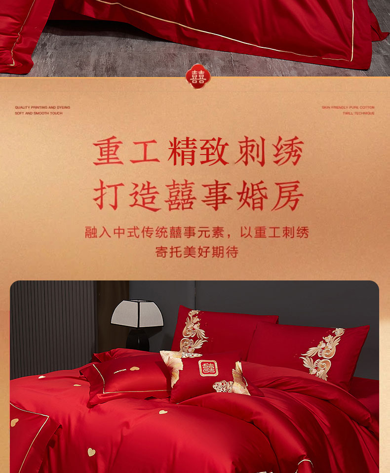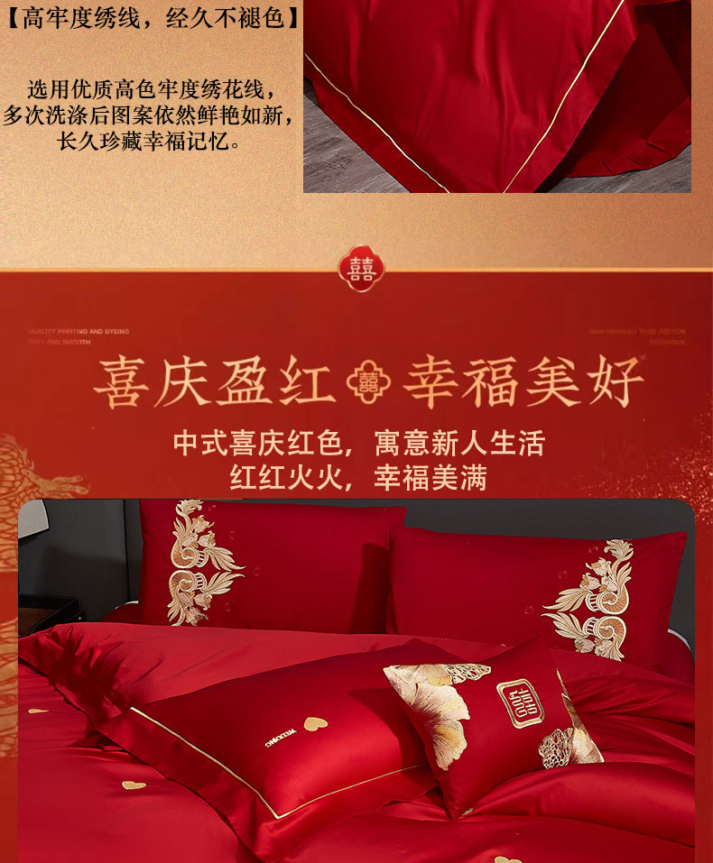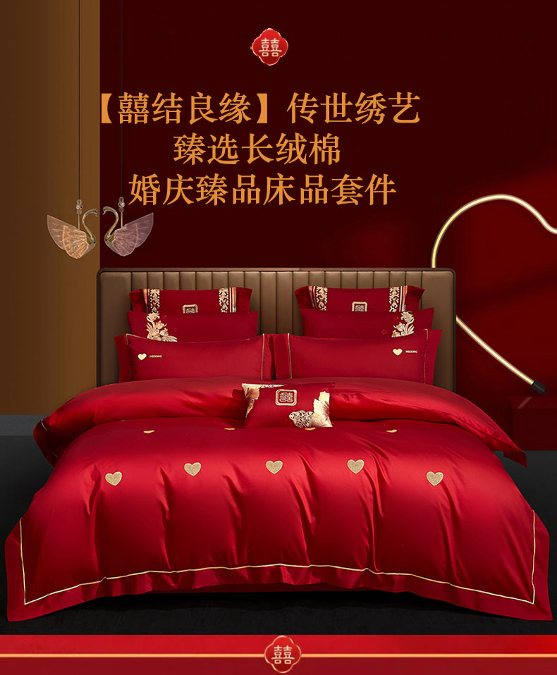当前位置: 91家纺网 > 商品网购 > 床品套件 > 四件套 > 婚庆四件套 > 蒂爵 2025新款婚庆长绒棉时尚小红书爆款刺绣婚庆四件套多件套-无提花款 喜乐年华