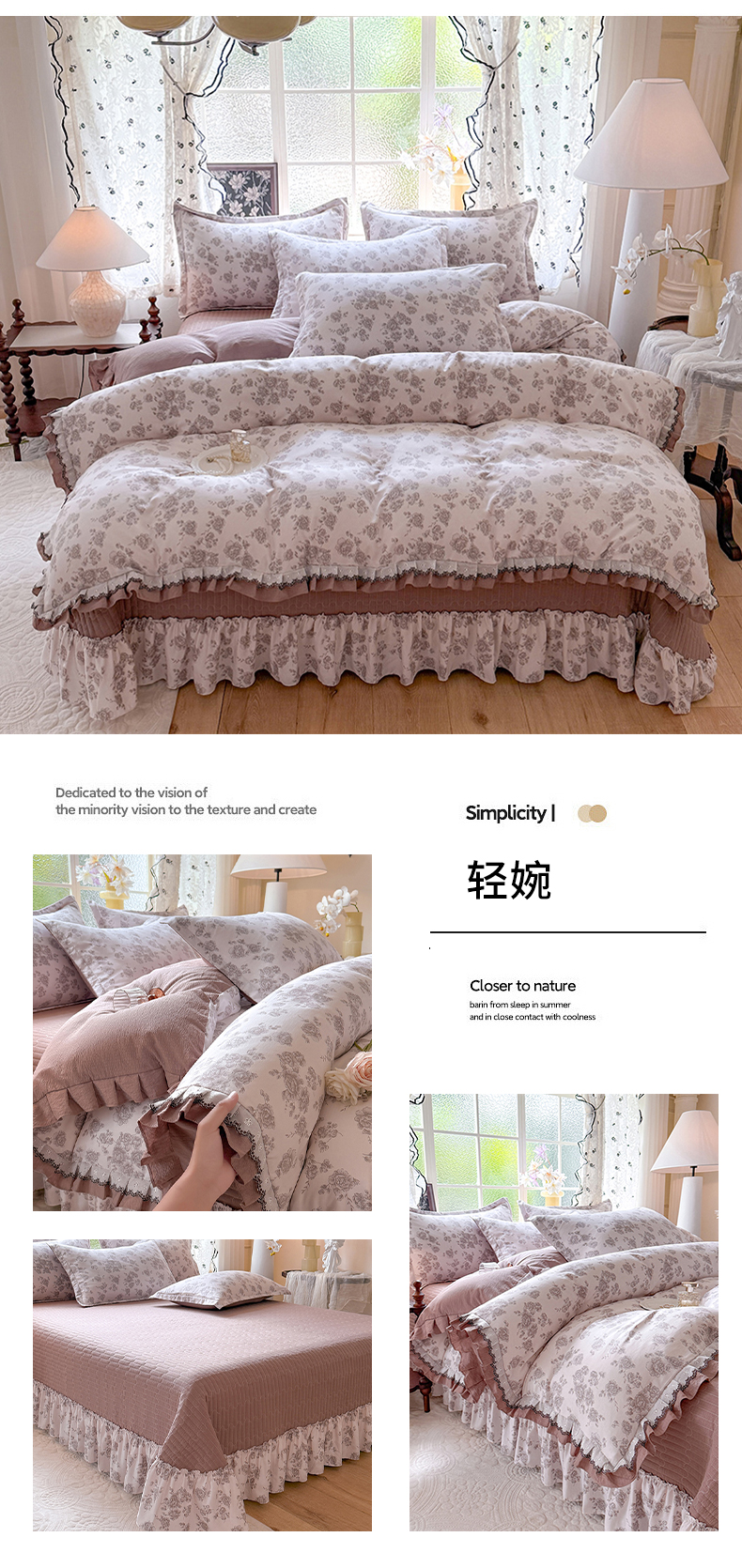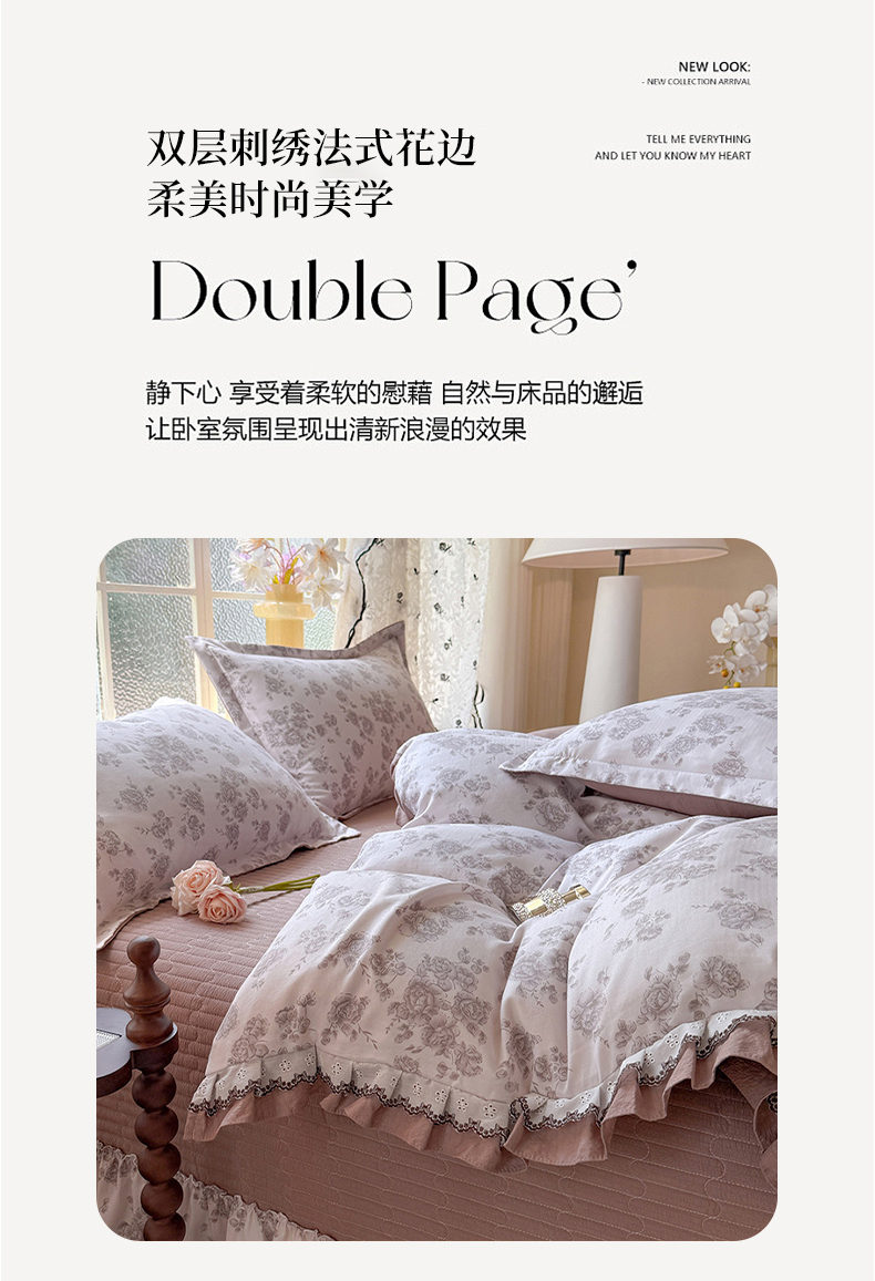 (总)韩约家纺 2026新款法式大花边古法棉感床盖四件套,春熙,宁静时光,紫妍,香兰,思绪,靓彩,艾米,轻颜