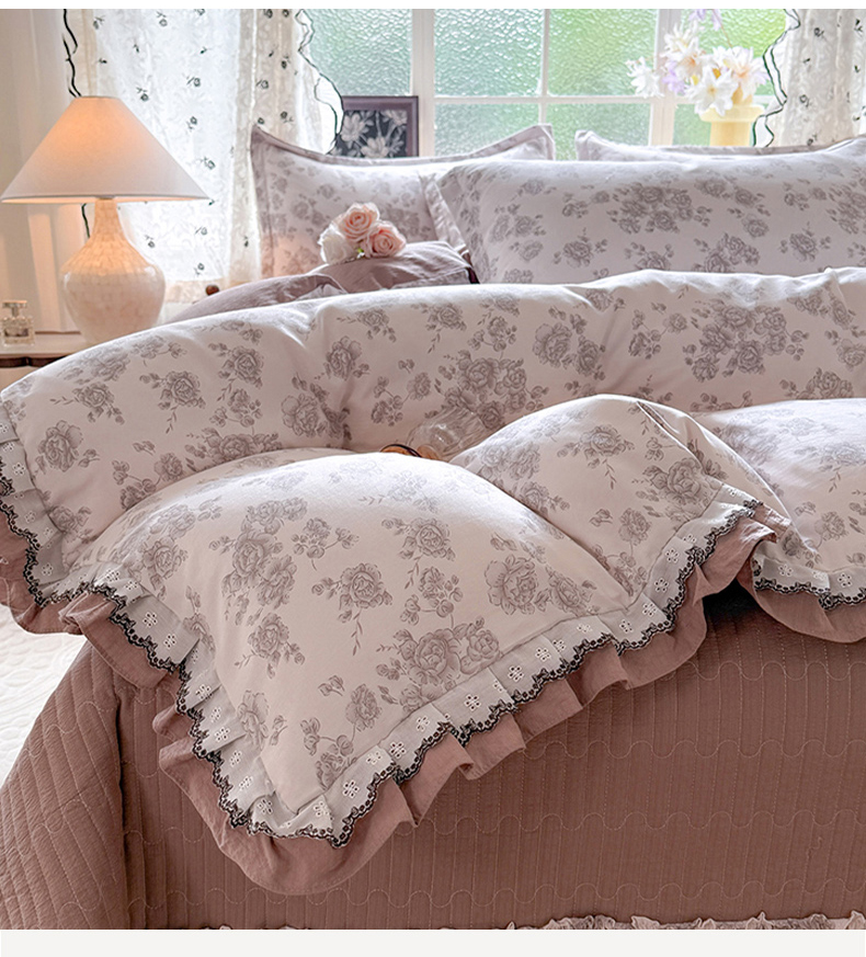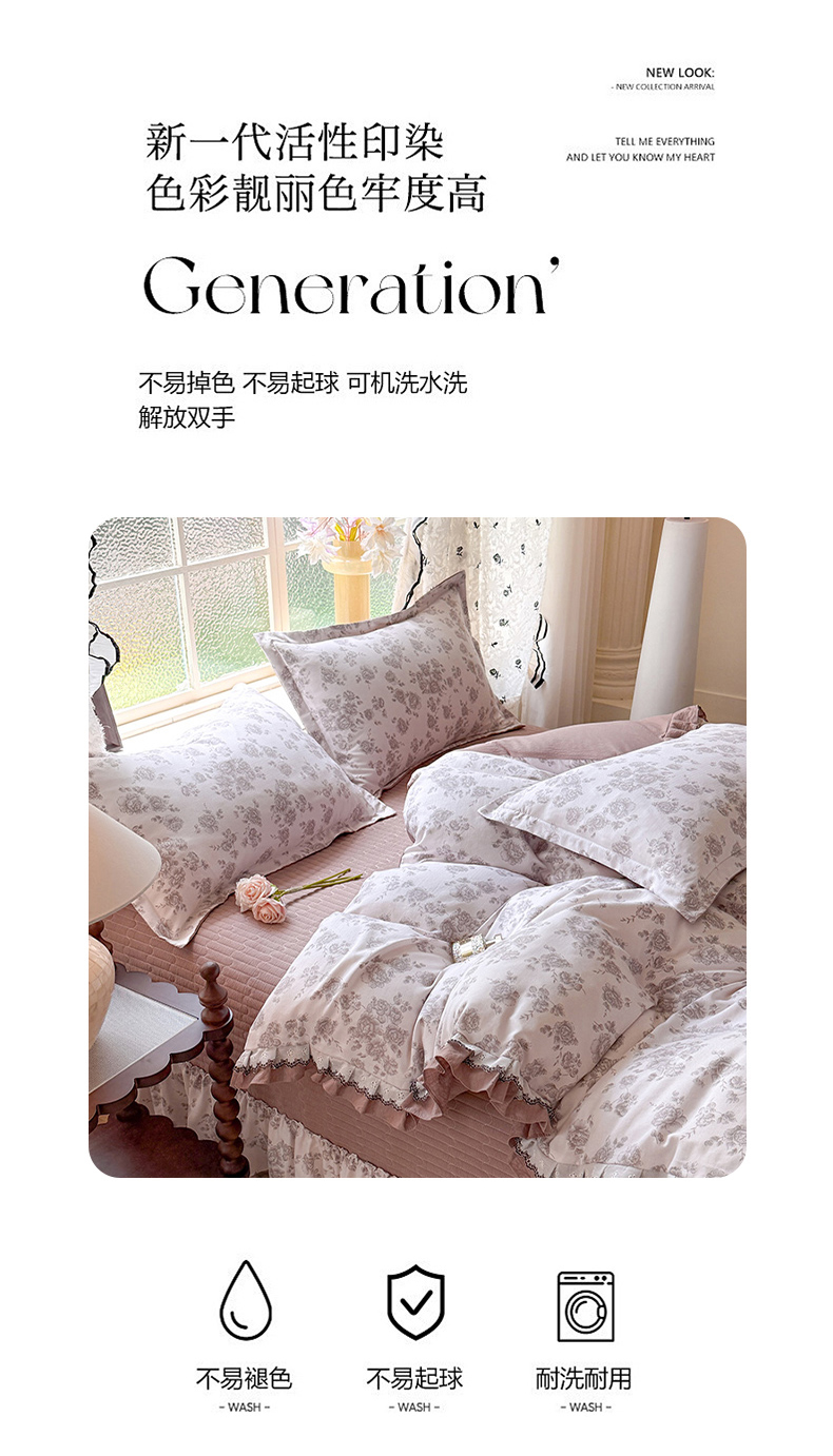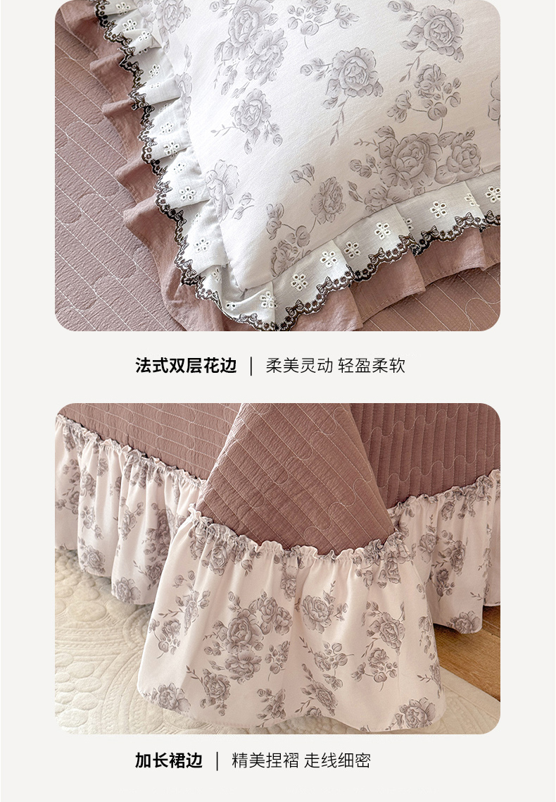 (总)韩约家纺 2026新款韩式花边古法棉感床盖四件套,知否,午后时光,漫花蝶舞,莓莓果,花影,甜心狗,初遇,萝莉,雨沫