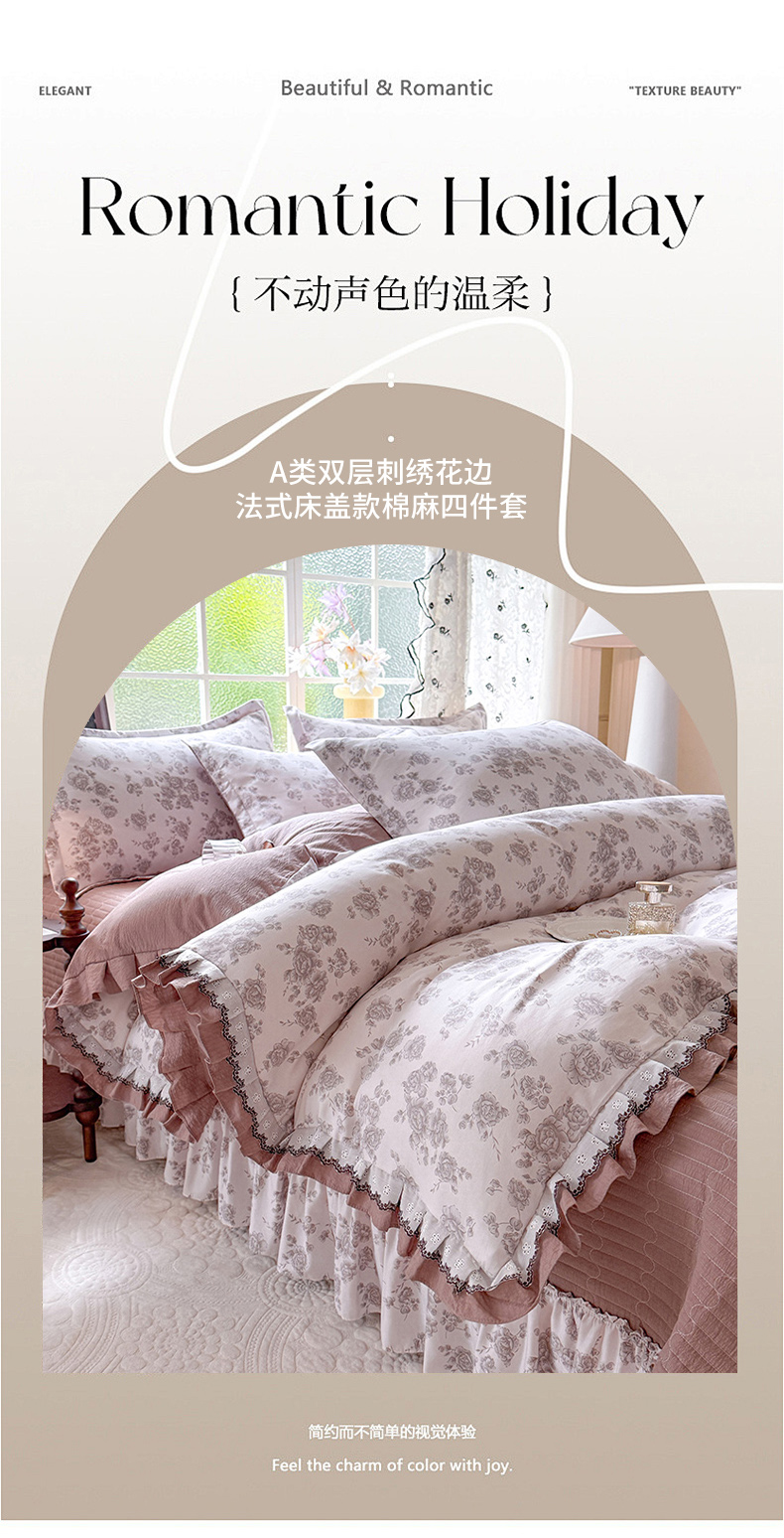 韩约家纺 2025新款1双层刺绣花边法式床盖款棉麻四件套(全网控价:不低于1.5m139,1.8m144,2.0m149,2.0加大154) 轻婉