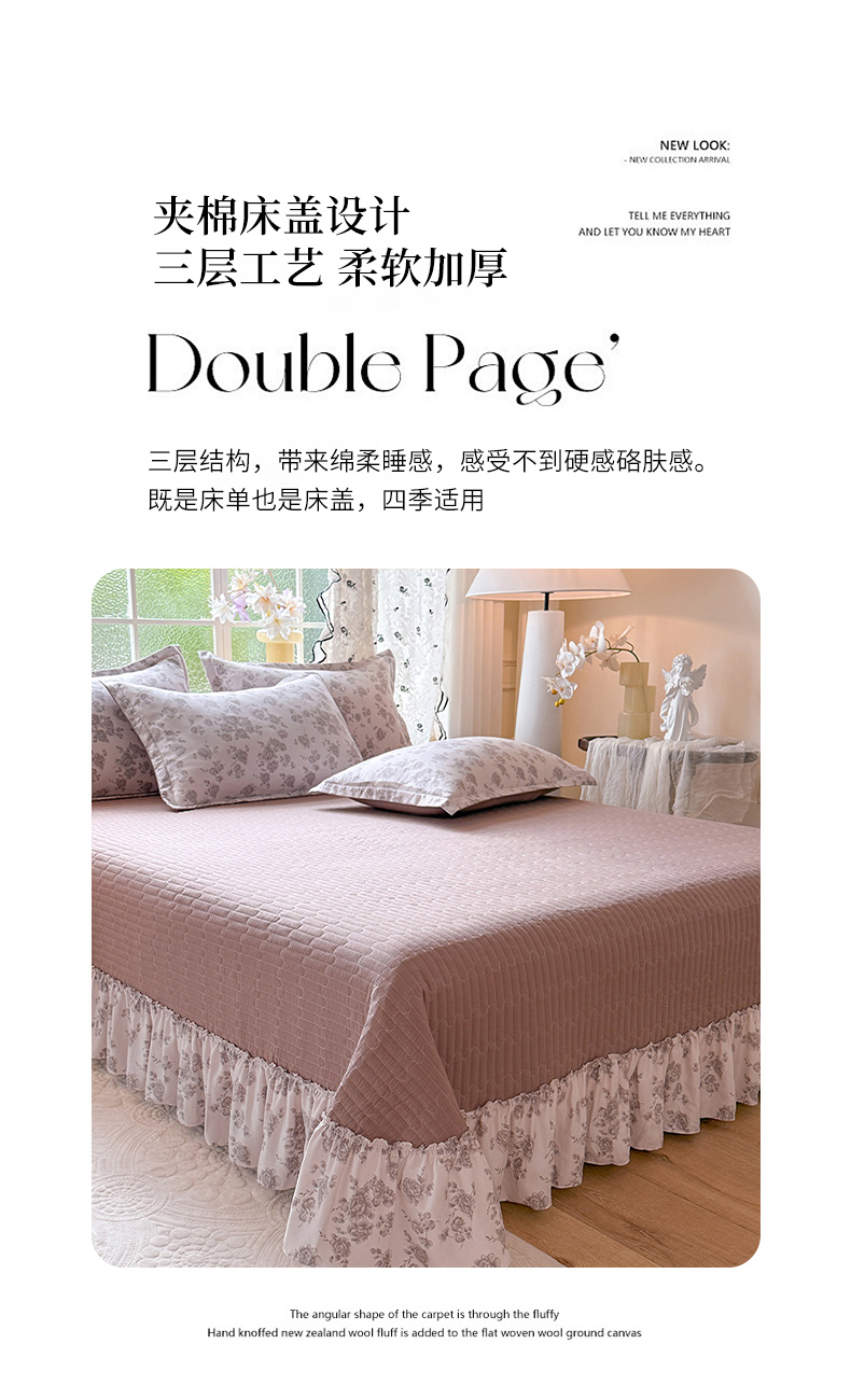 (总)韩约家纺 2026新款韩式双层花边古法棉感床盖四件套,安妮,豹纹女孩,彩心,繁花似锦,蝴蝶伙伴,萌萌兔,柔梦,甜心樱桃