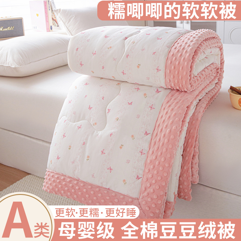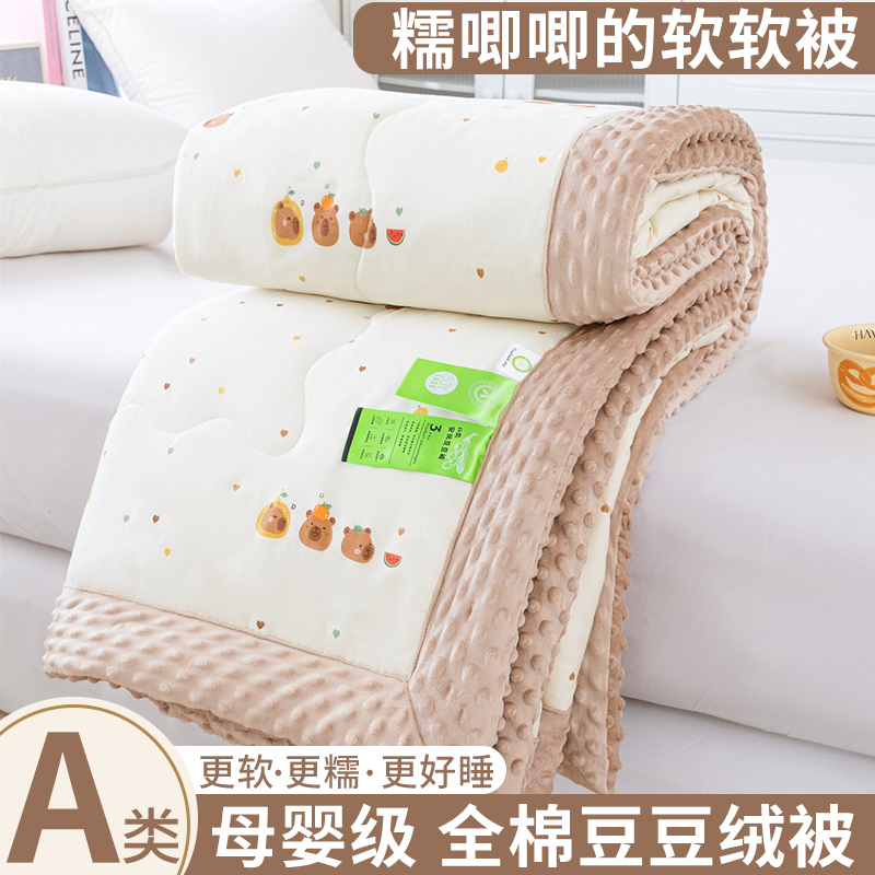 商品名称:柏薇 2025新款A类全棉纯棉豆豆绒被 被子被芯 奶油小熊