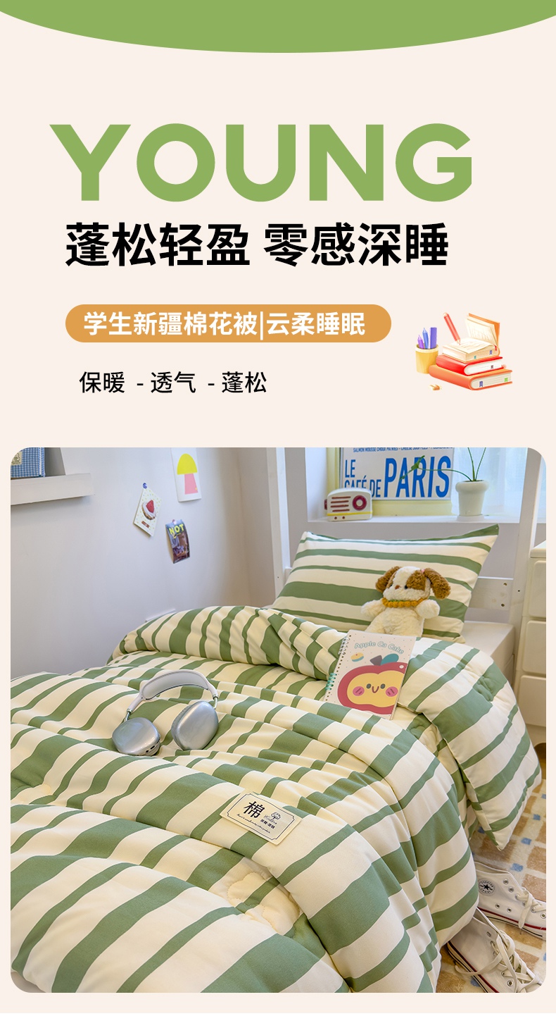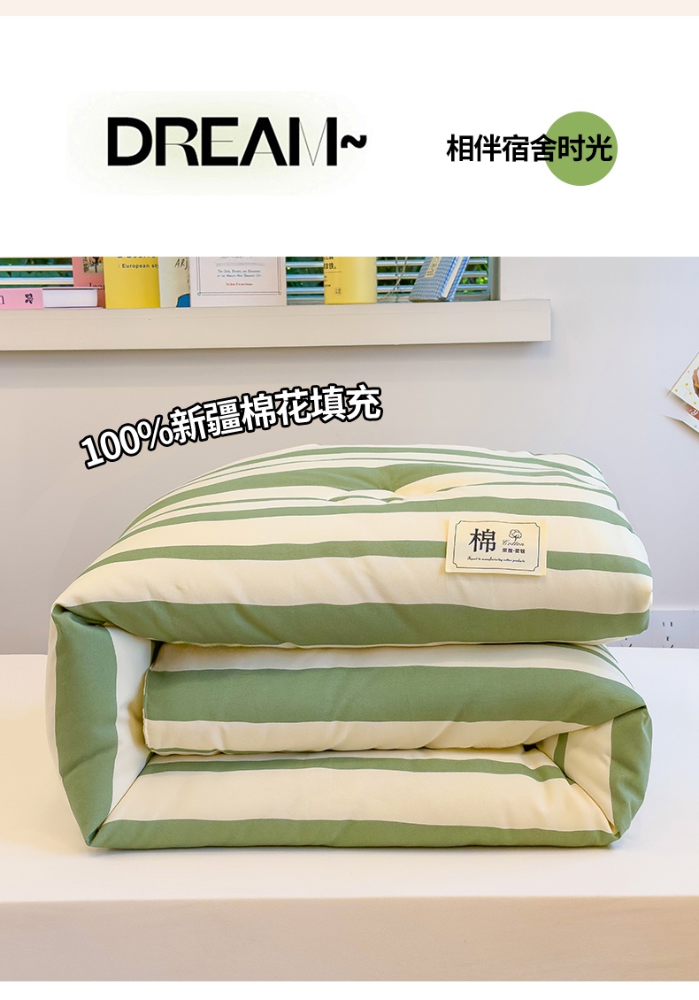 商品名称:默忆 2025新款新疆棉学生棉花被 被子被芯 绿白宽条