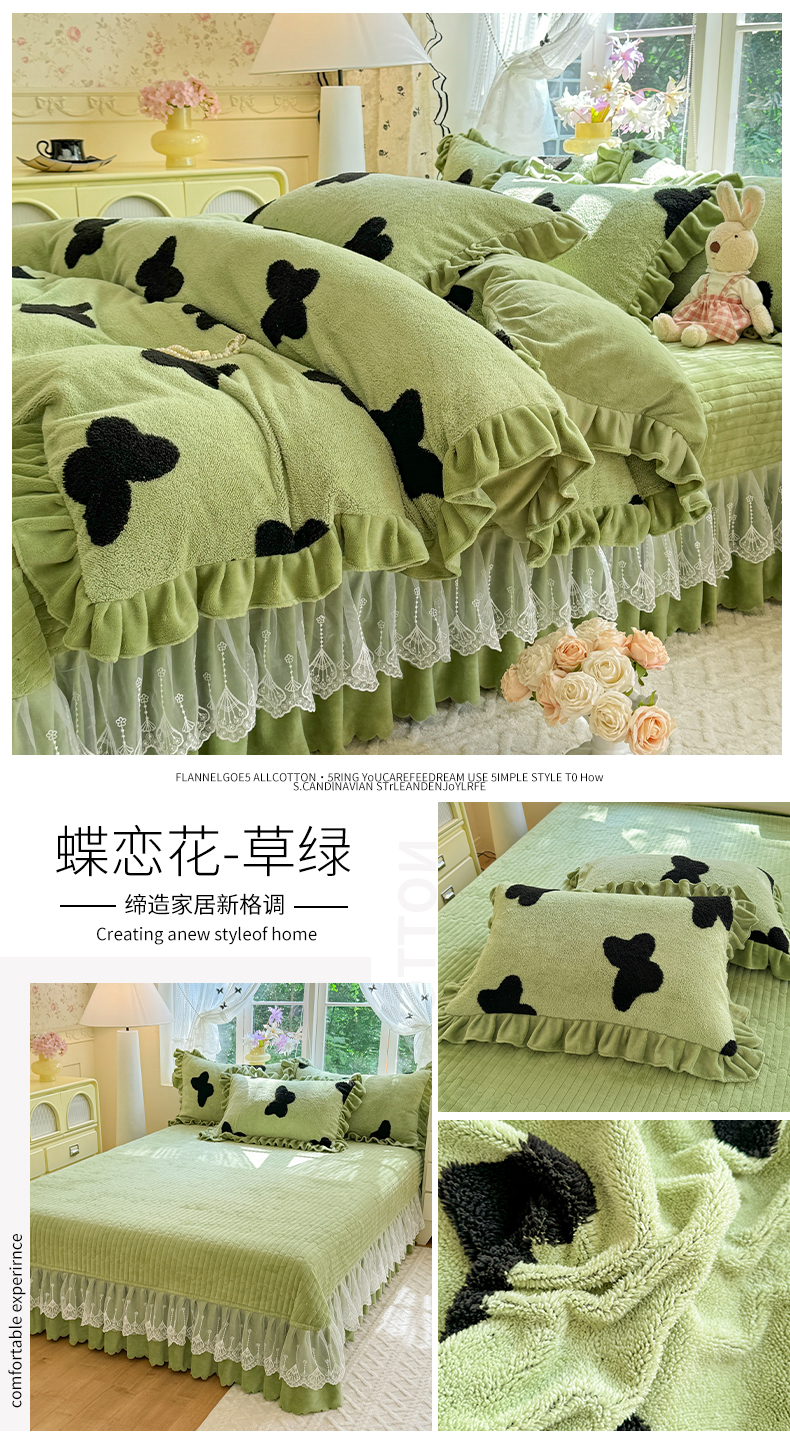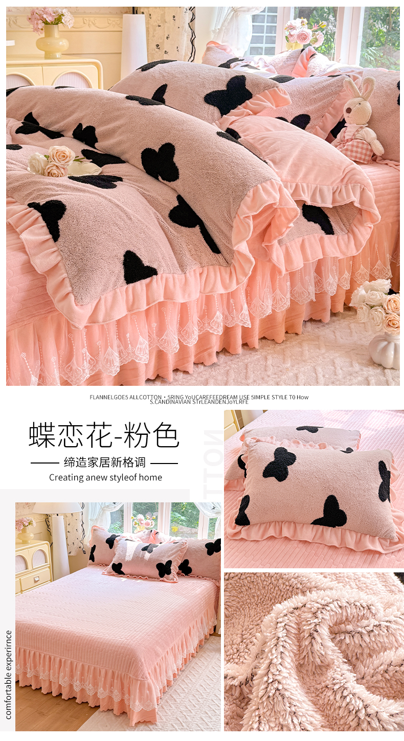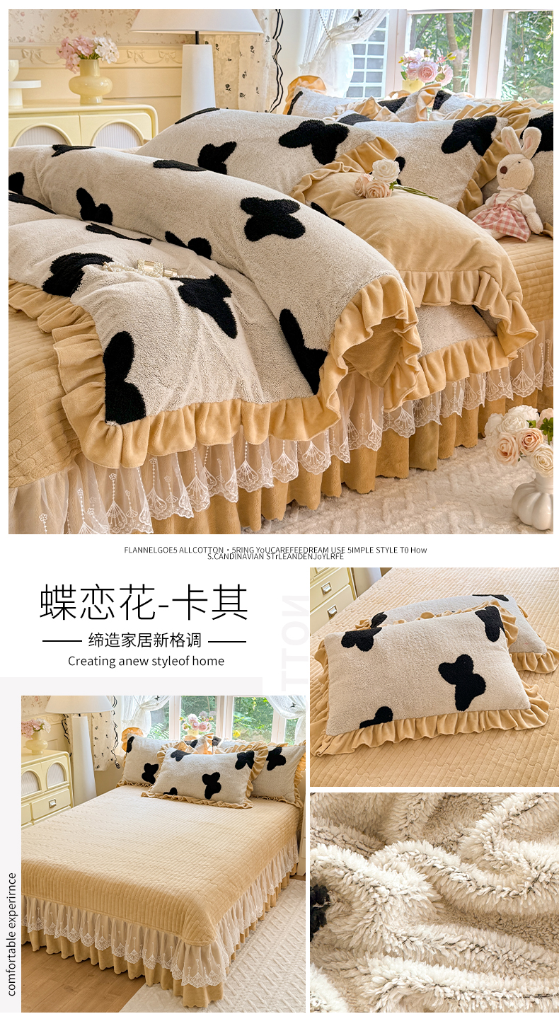 (总)唐人居 2025新款高克重牛奶绒花边夹棉四件套-蝴蝶纷飞,蝴蝶纷飞-浅蓝,蝴蝶纷飞-豆沙,蝴蝶纷飞-浅紫,蝴蝶纷飞-暖橘,蝴蝶纷飞-粉色,蝴蝶纷飞-草绿