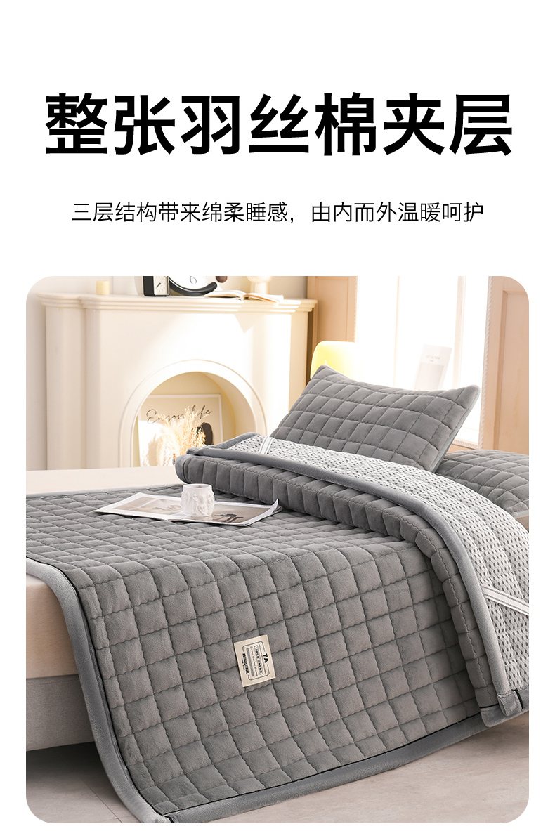 • 91家纺网 家纺一手货源 找家纺 欧邦 2025新款加厚臻棉绒半消光牛奶绒床垫床褥学生榻榻米薄垫子 和煦春风-象灰