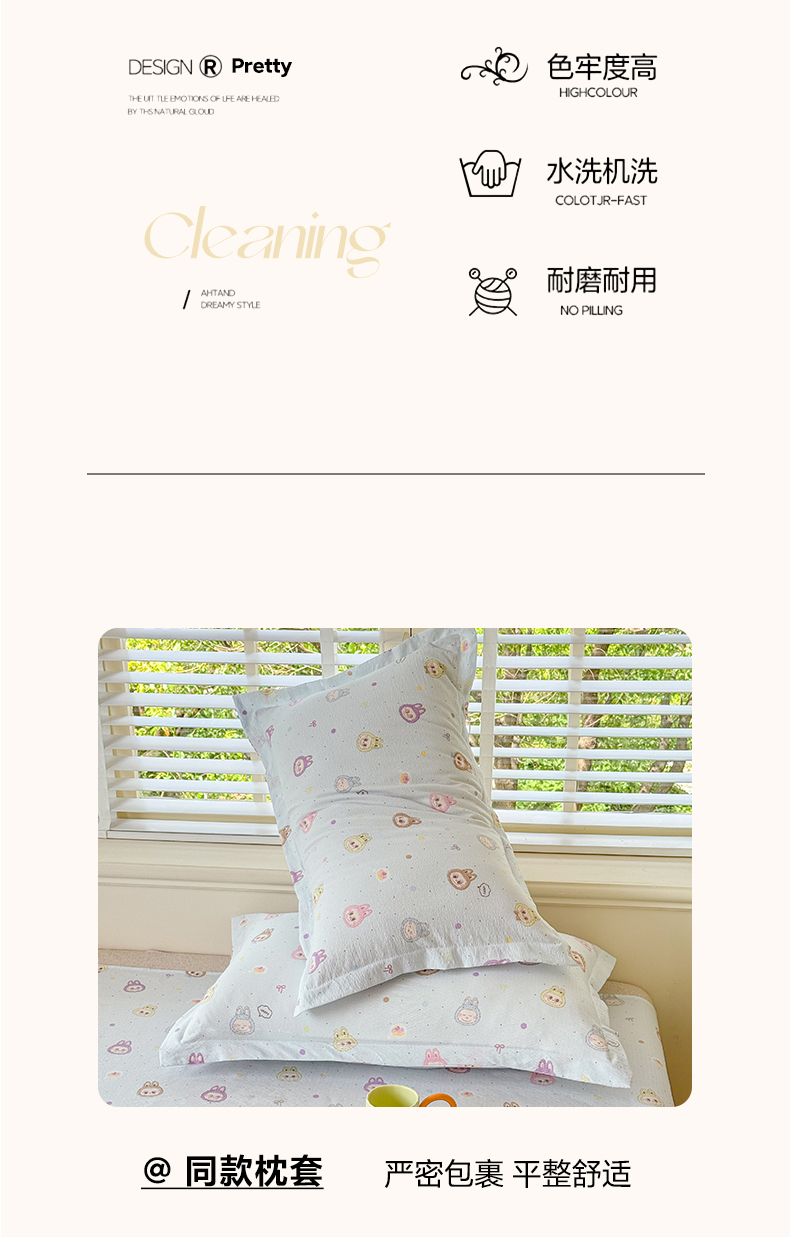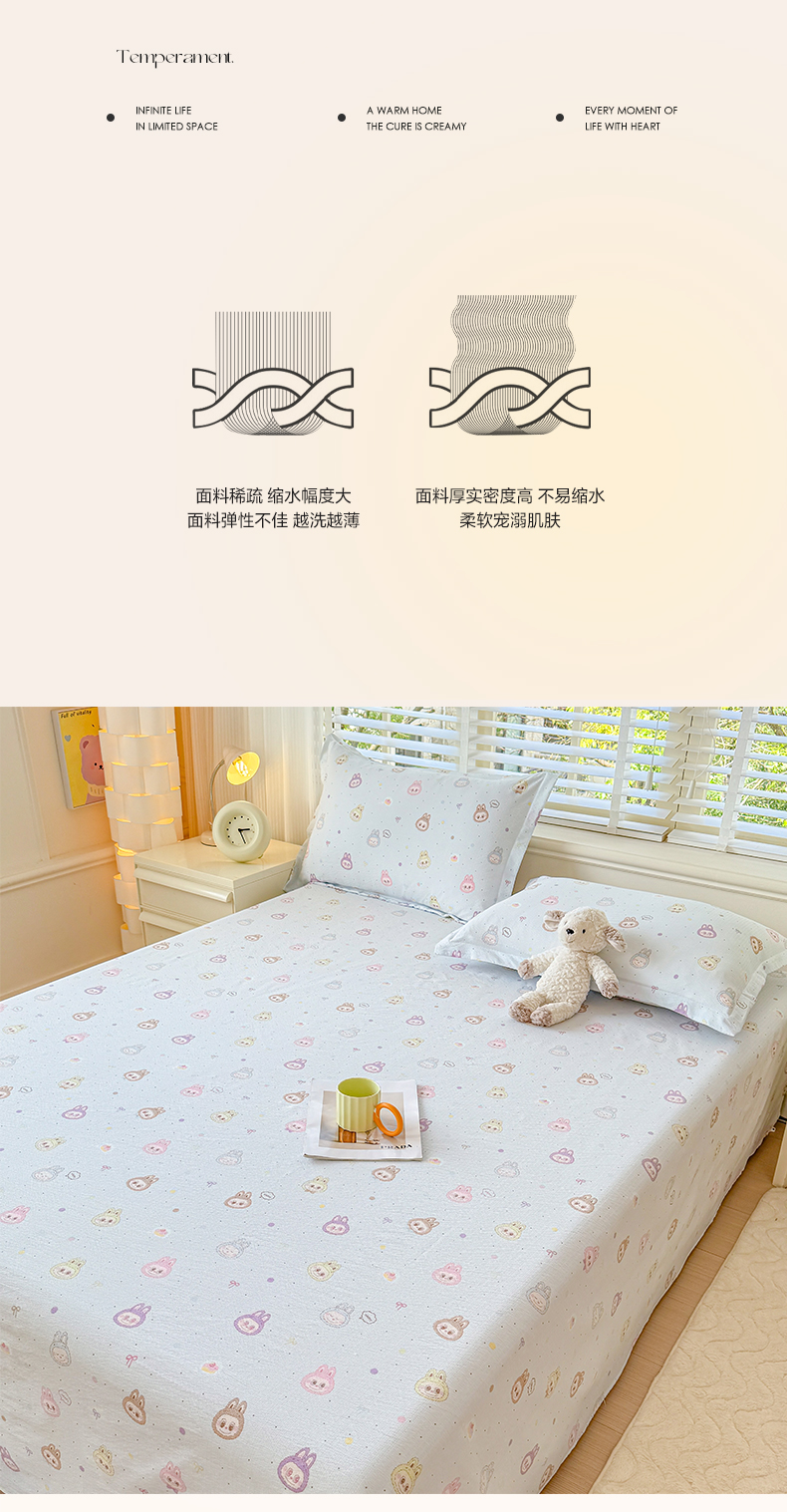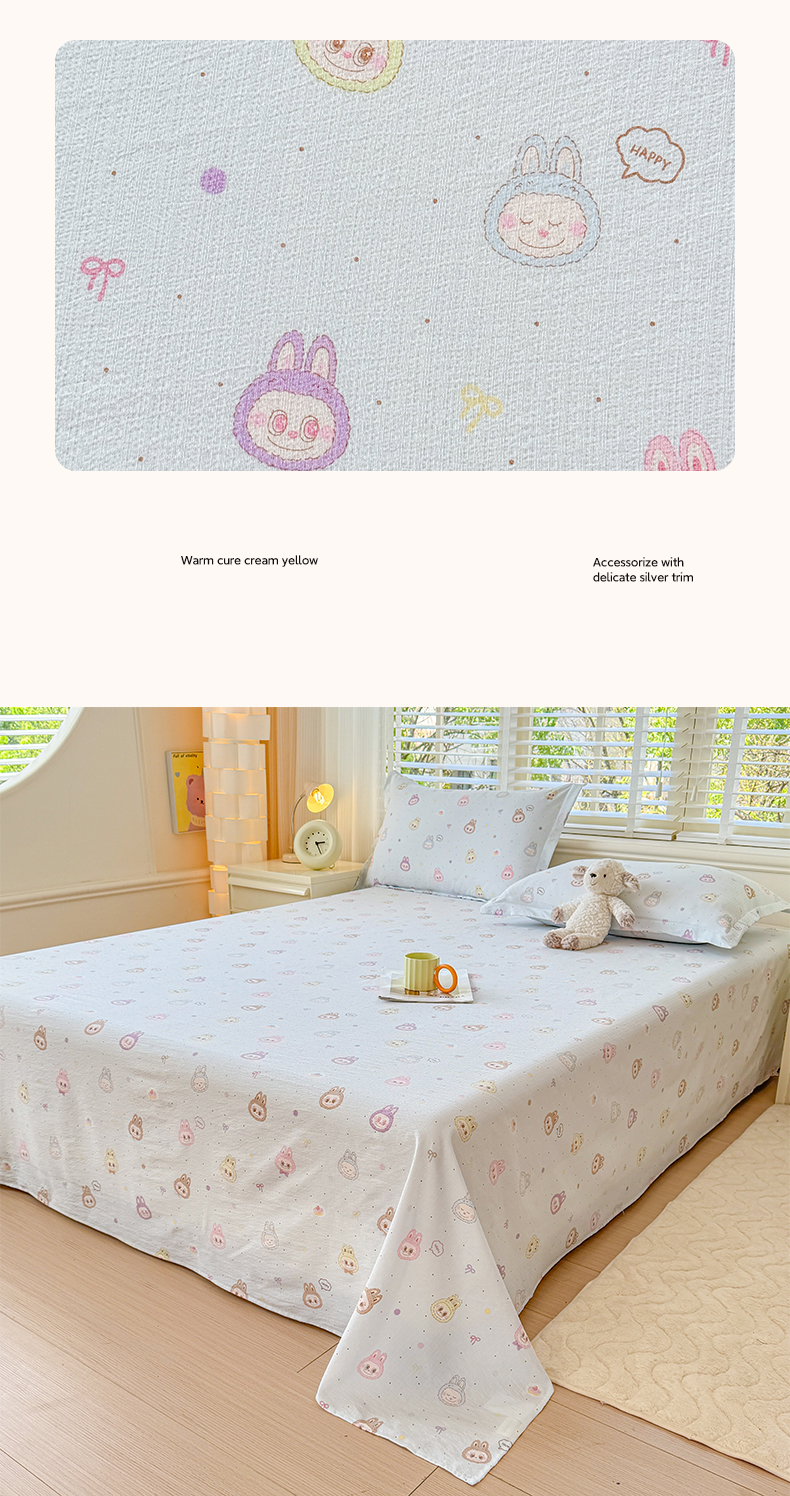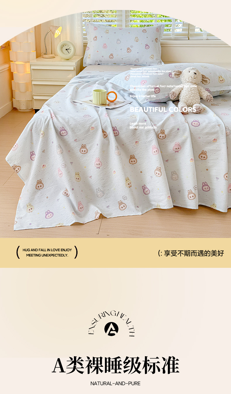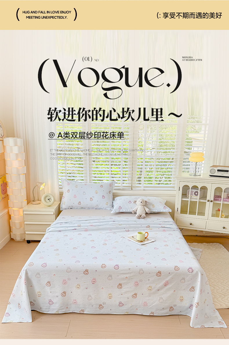 一诺家居 2025新款A类云感双层纱针织棉印花母婴级裸睡床单三件套 量大可优惠 量大可送货 海盐耶耶
