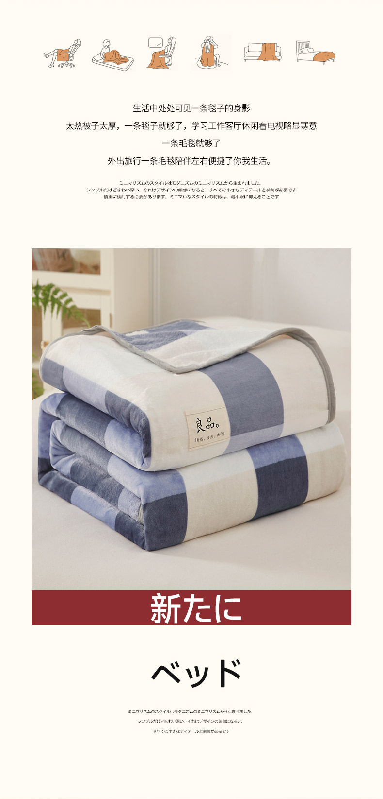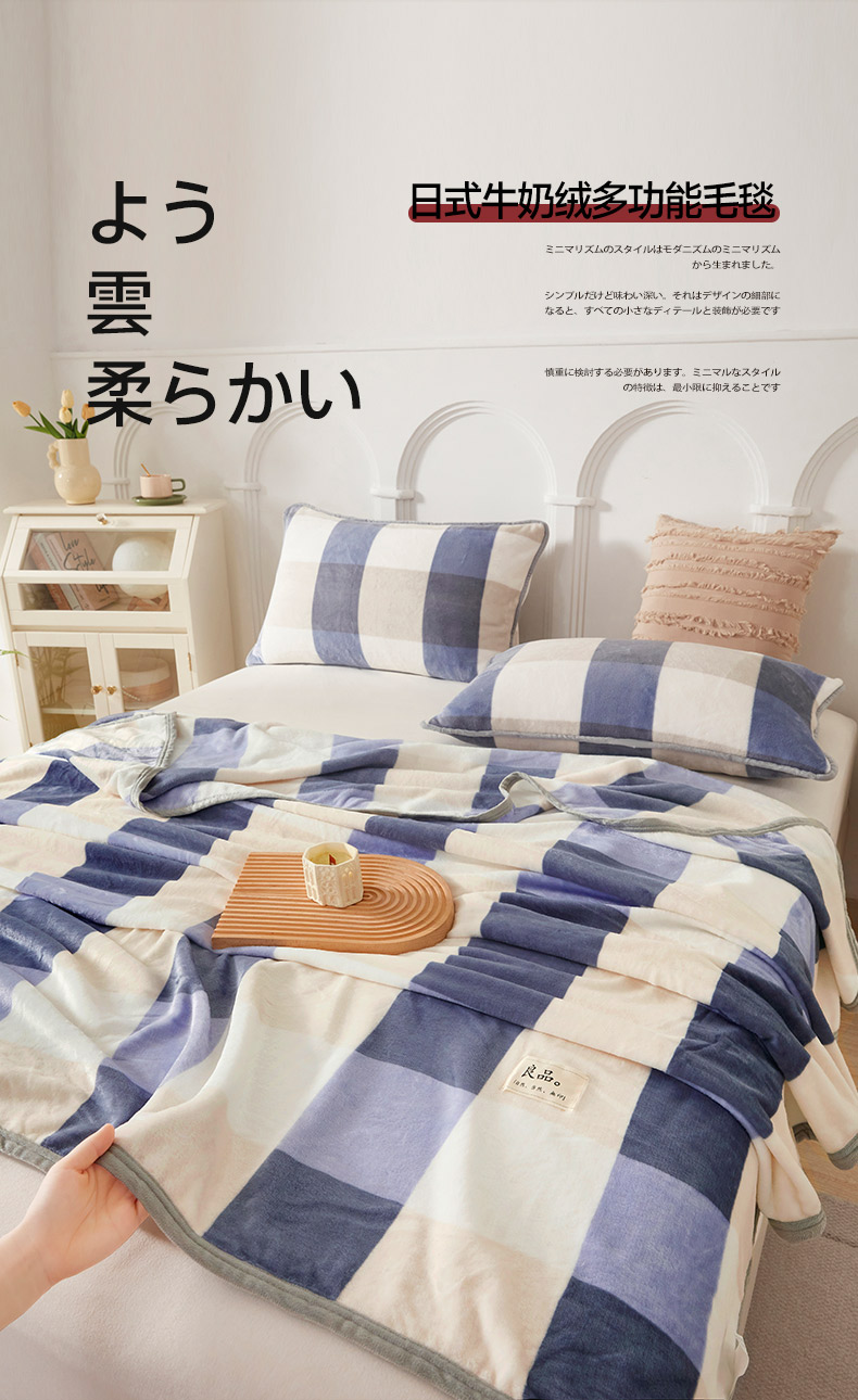 当前位置: 91家纺网 > 商品网购 > 毛毯休闲毯绒毯 > 珊瑚绒毯 > 悦织湾家纺 2025新款牛奶绒毛毯高克重日式良品盖毯毯子办公室休闲沙发毯跨境专供外贸出口 蓝大格