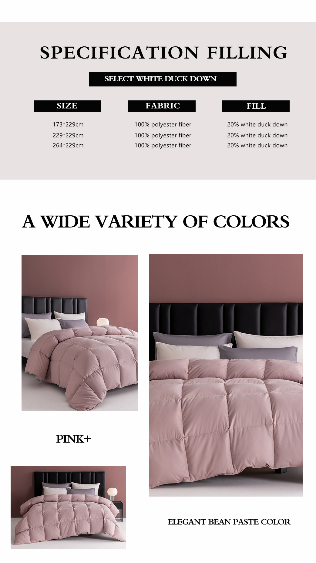 (总)圣梦莱羽绒家纺 2025款新品跨境出海外贸专供羽绒被(订单)可定制填充重量(gsm),粉色,深灰色,咖啡色,白色