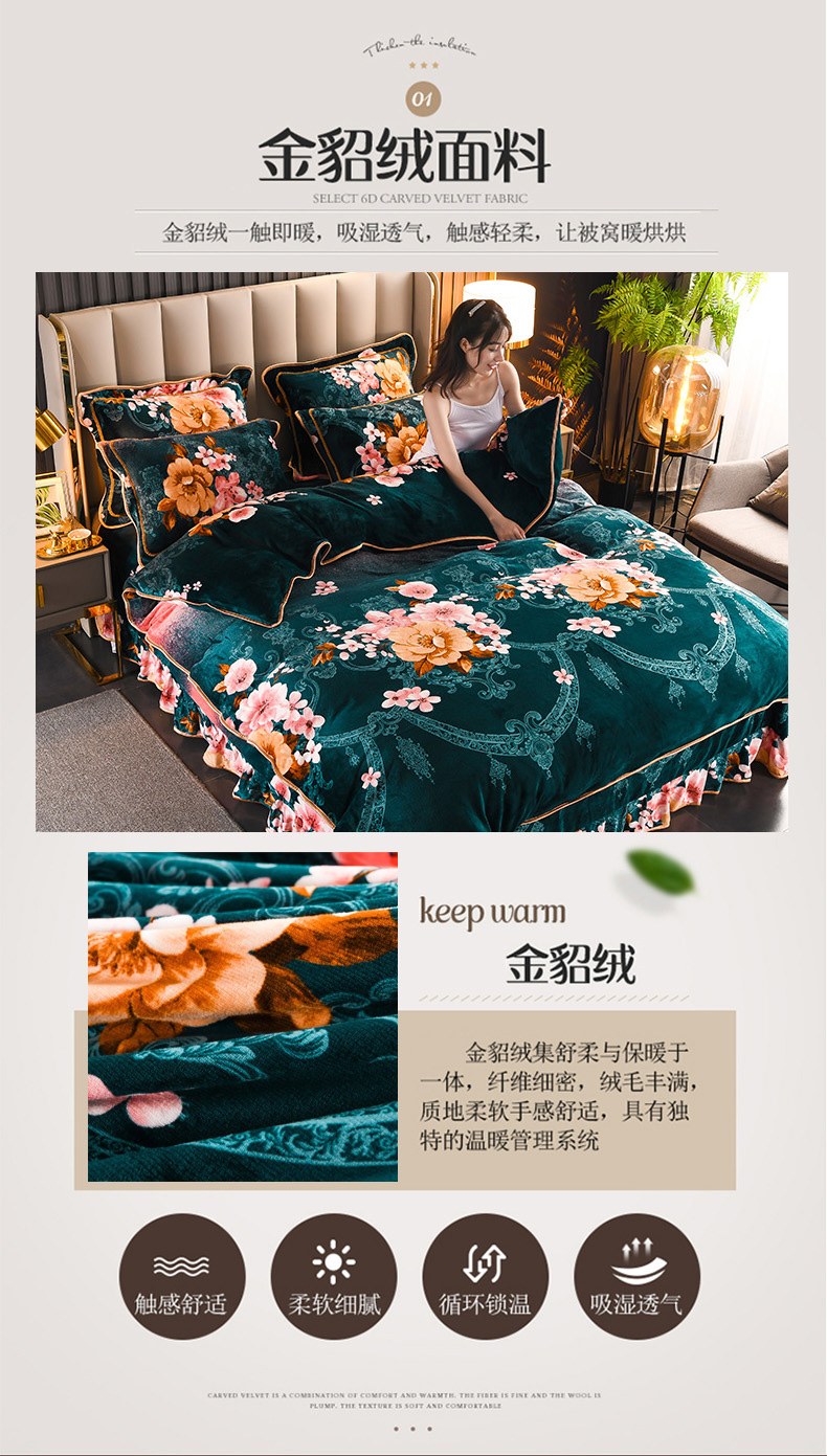 商品名称:(总)首选家纺 2025新款加厚保暖牛奶绒金貂绒法莱绒床裙款四件套