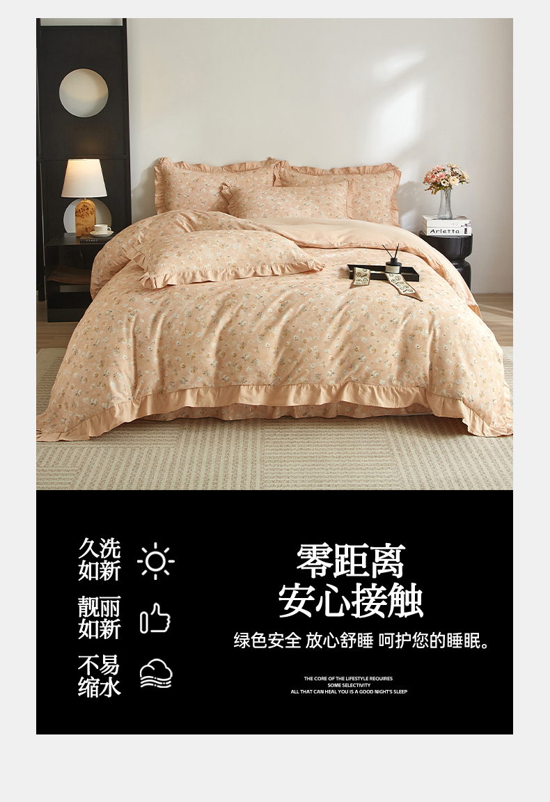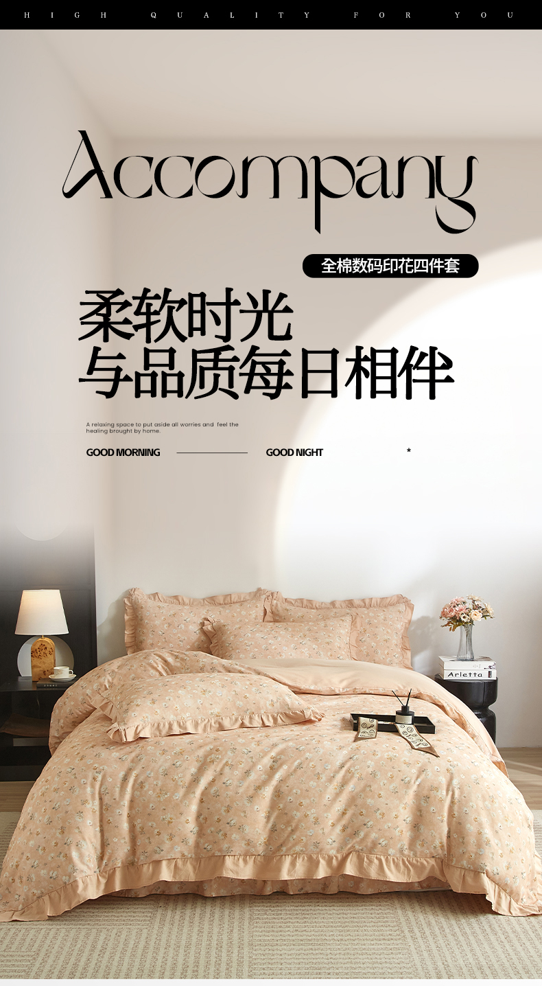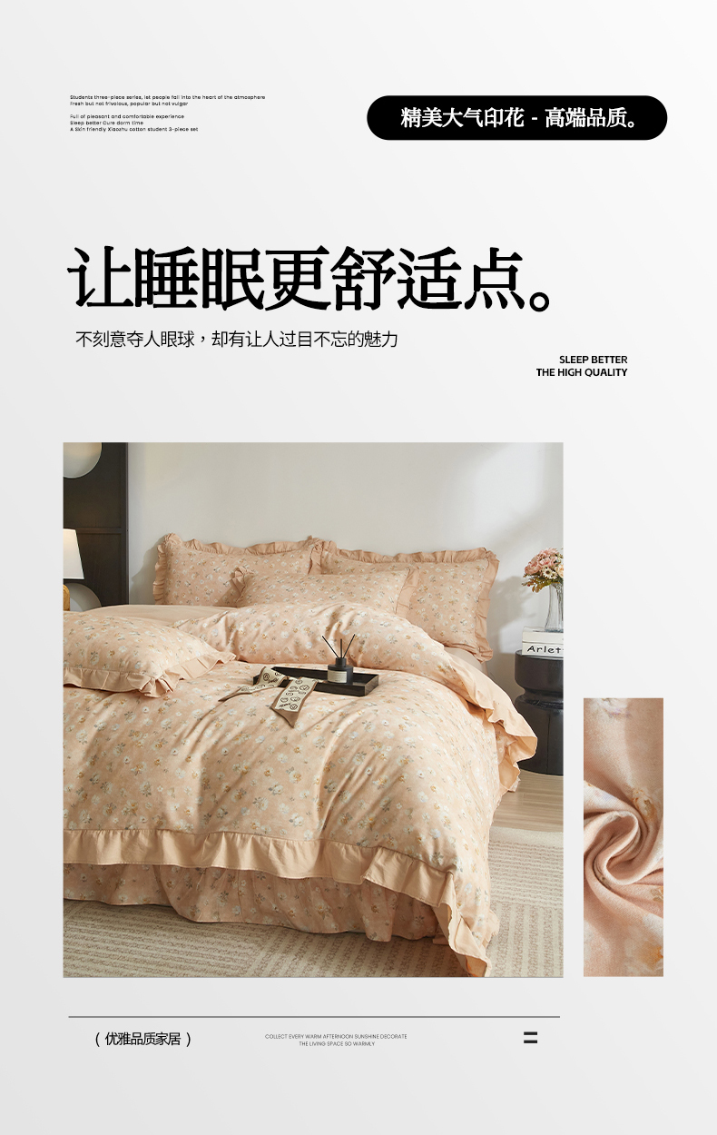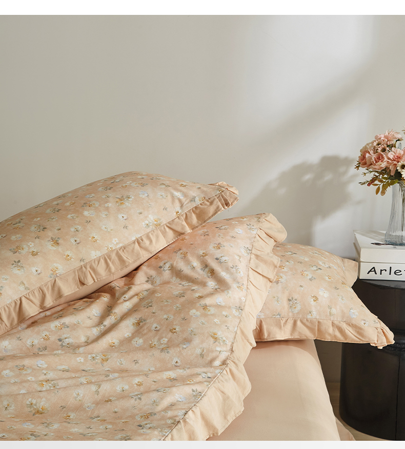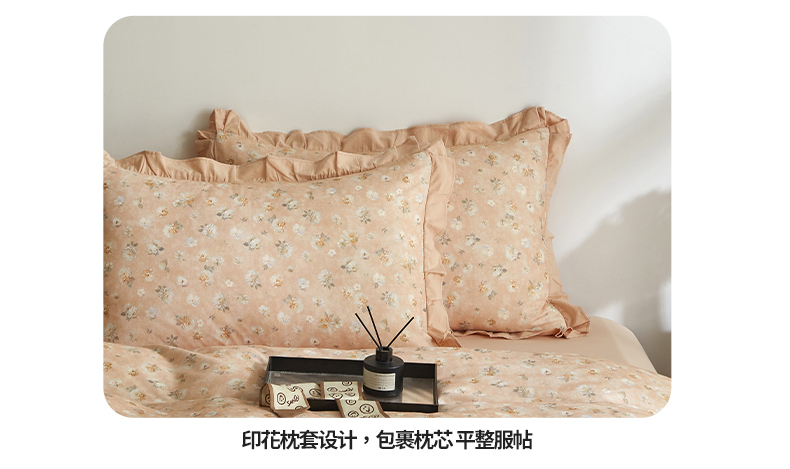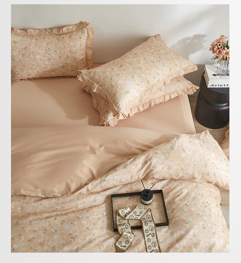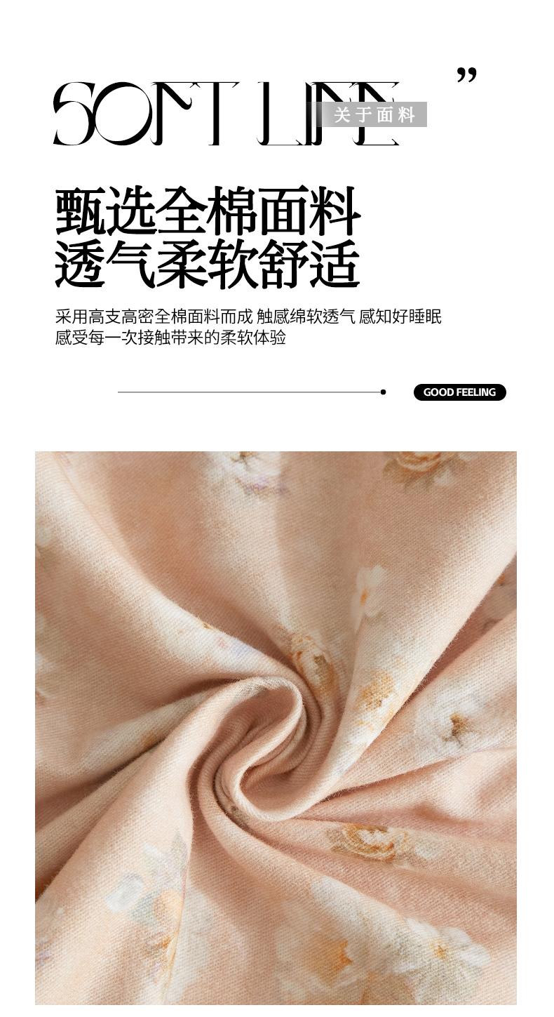 商品名称:金纱玉纺家纺 2025韩版数码印花加厚100%棉四件套 花语初晴-桔