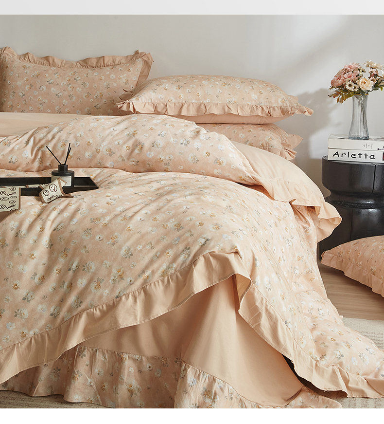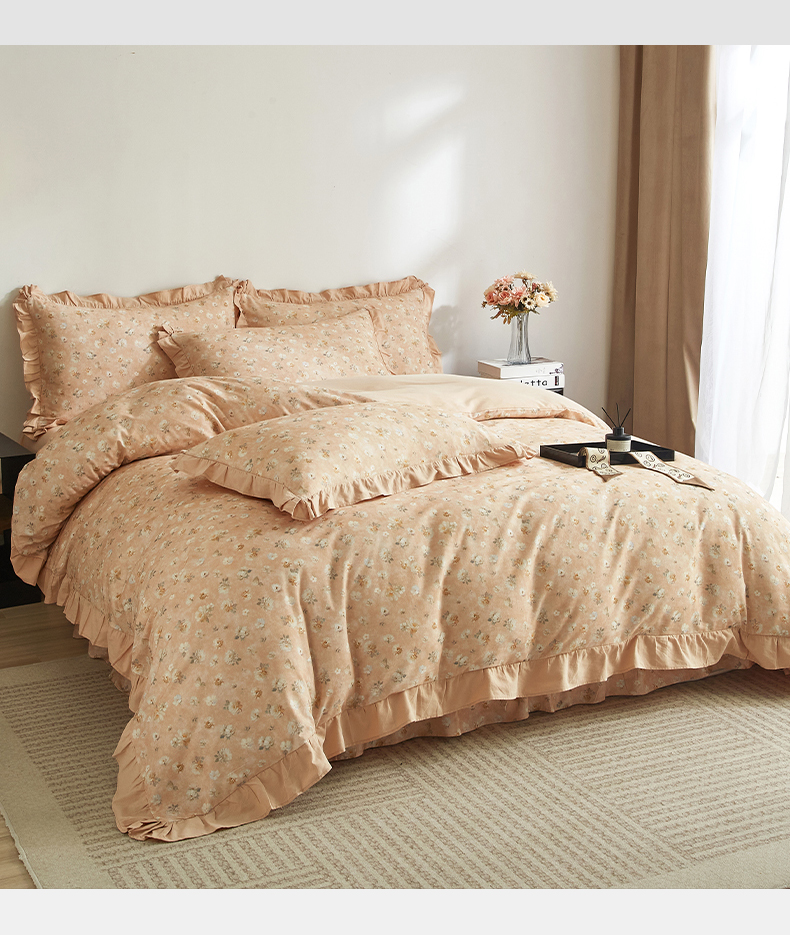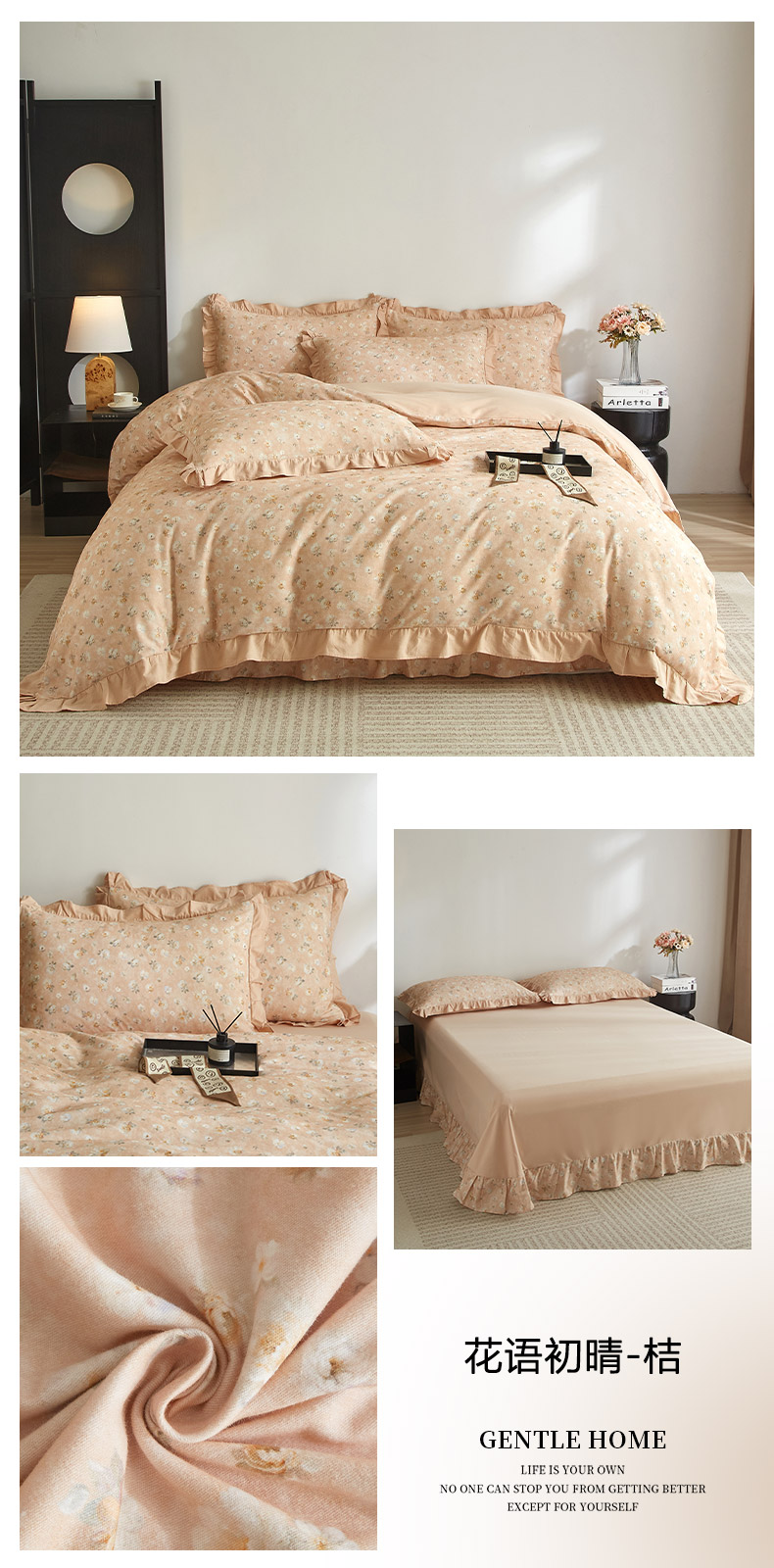 金纱玉纺家纺 2025韩版数码印花加厚100%棉四件套 花语初晴-桔