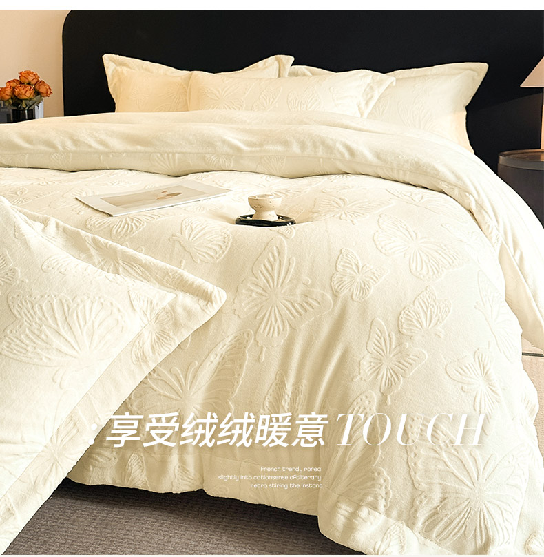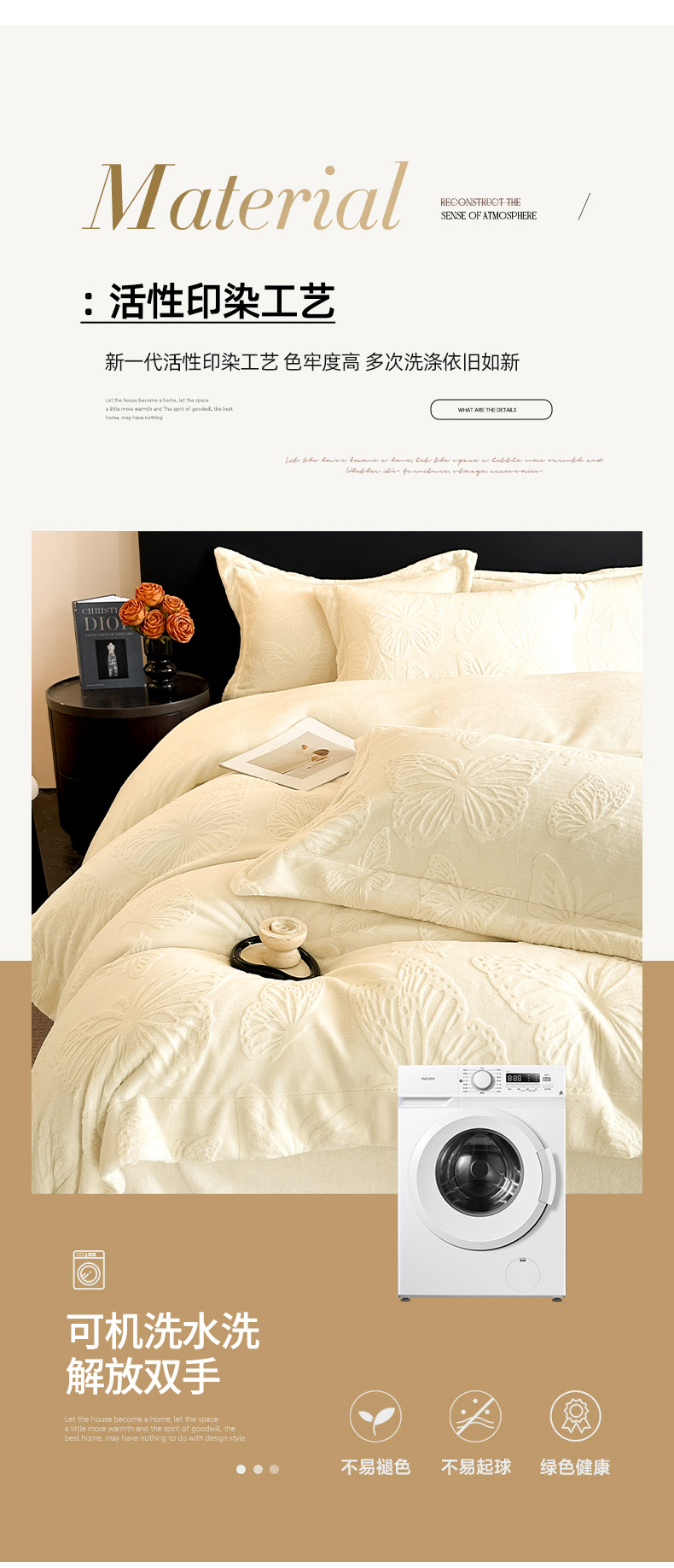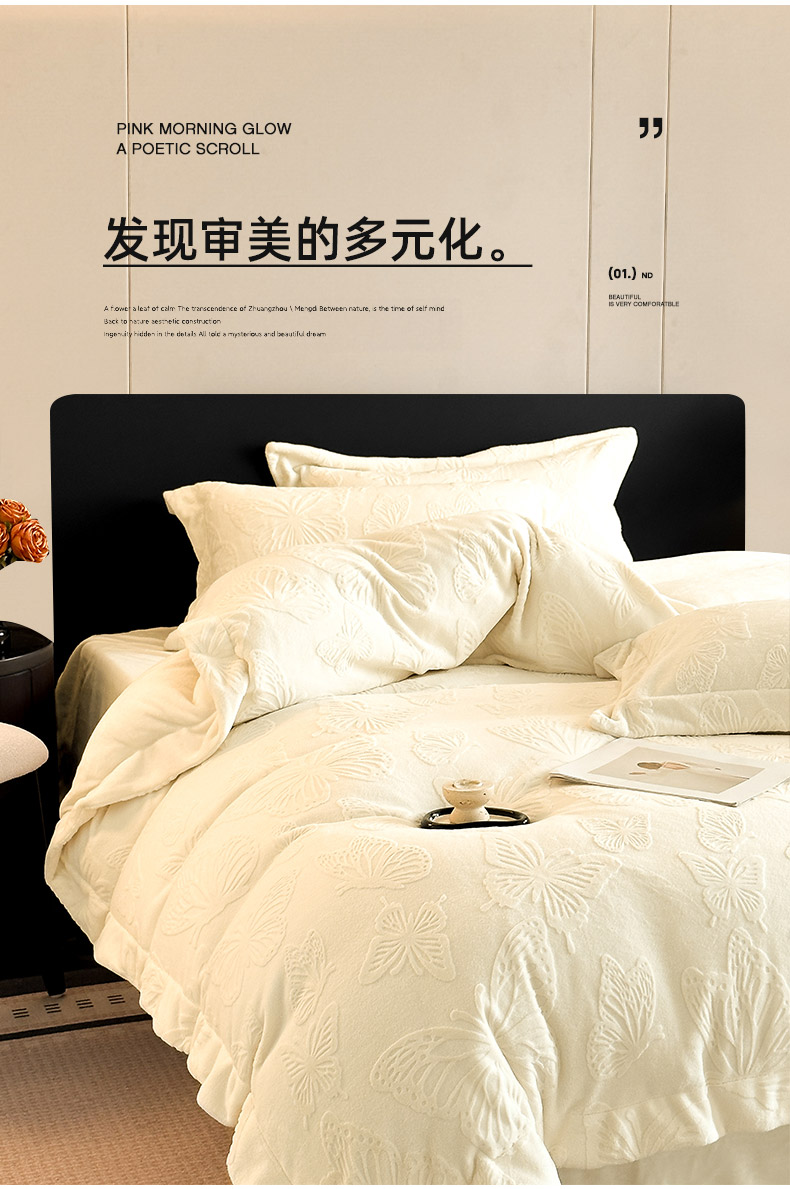 当前位置: 91家纺网 > 商品网购 > 床品套件 > 四件套 > 牛奶绒四件套 > 金阳光家纺 2025新款A类立体雕花牛奶绒轻奢风牛奶绒四件套-梦蝶 梦蝶-粉