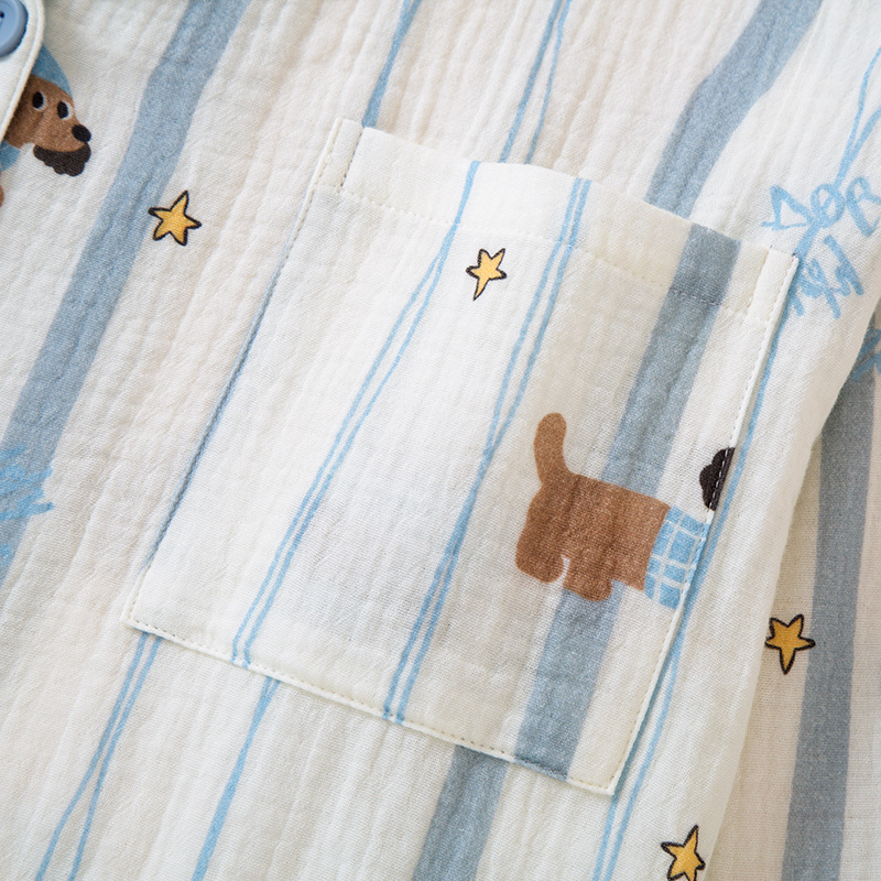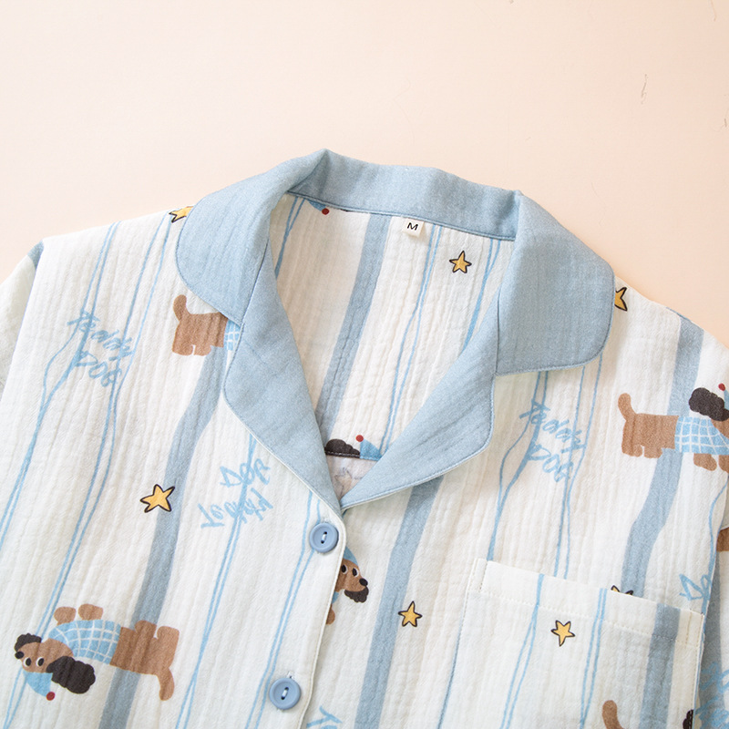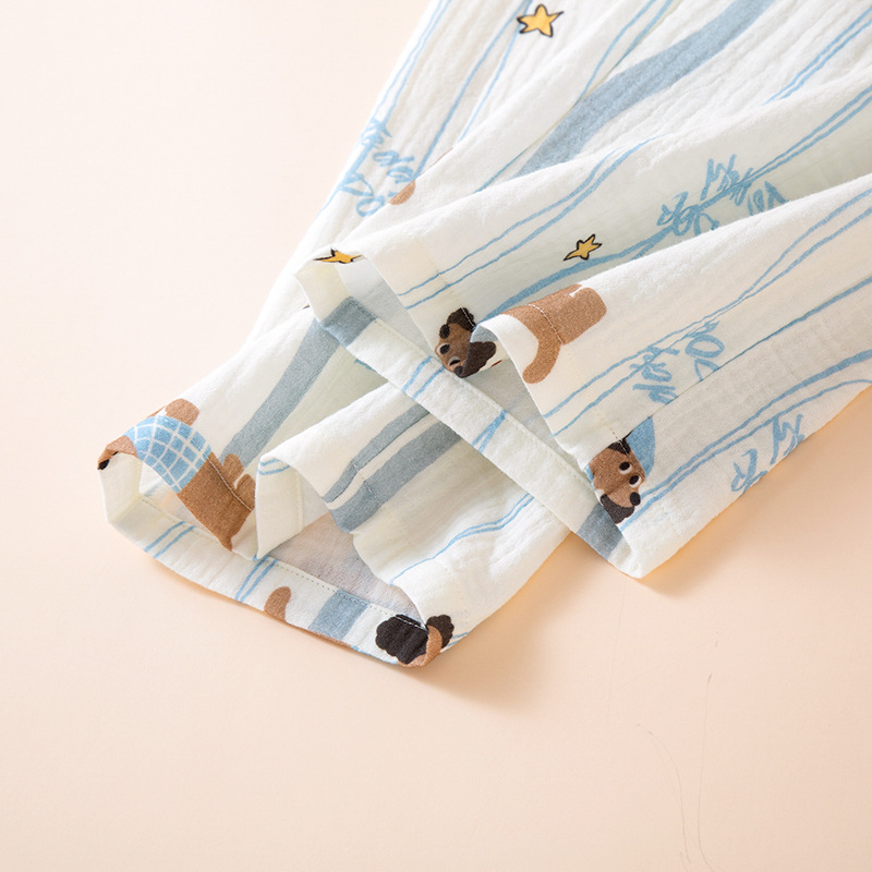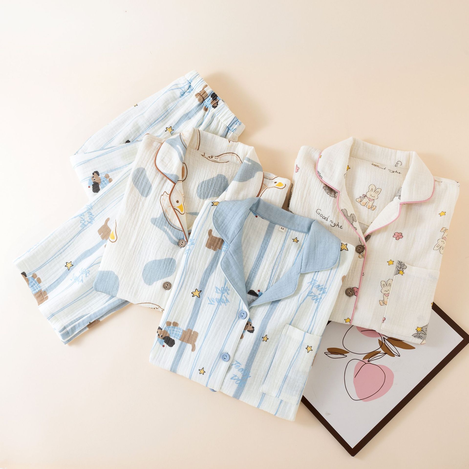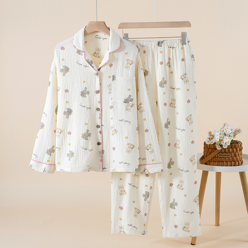(总)洛兰沙家居馆【只代发】【只代发】2025新款日系简约纯棉双层纱绉布女士睡衣春秋夏季薄款长袖长裤可外穿家居服