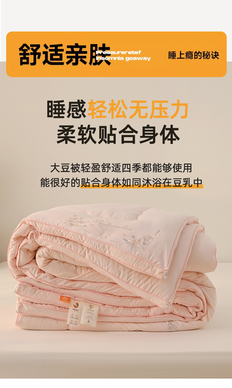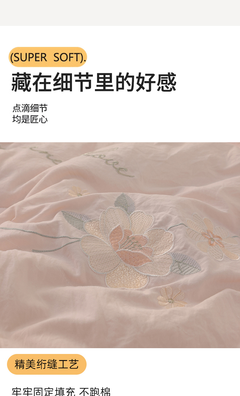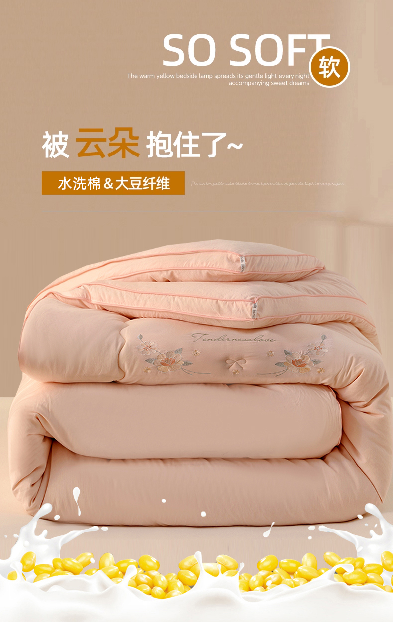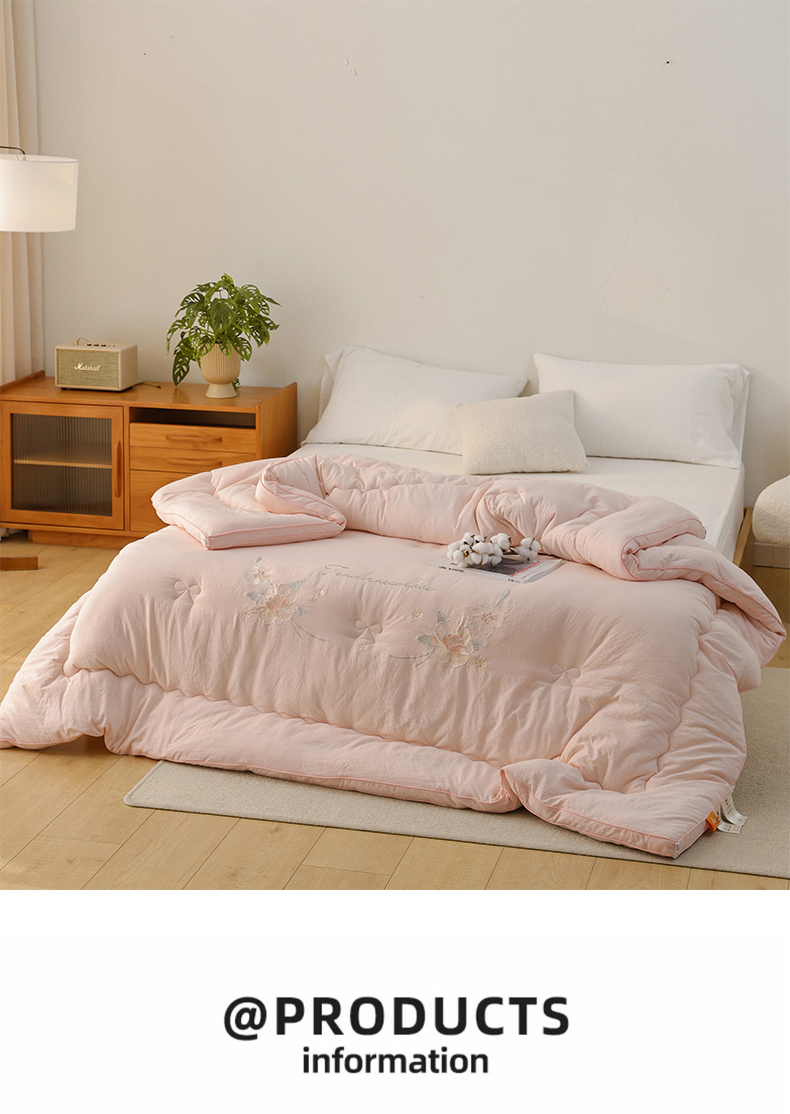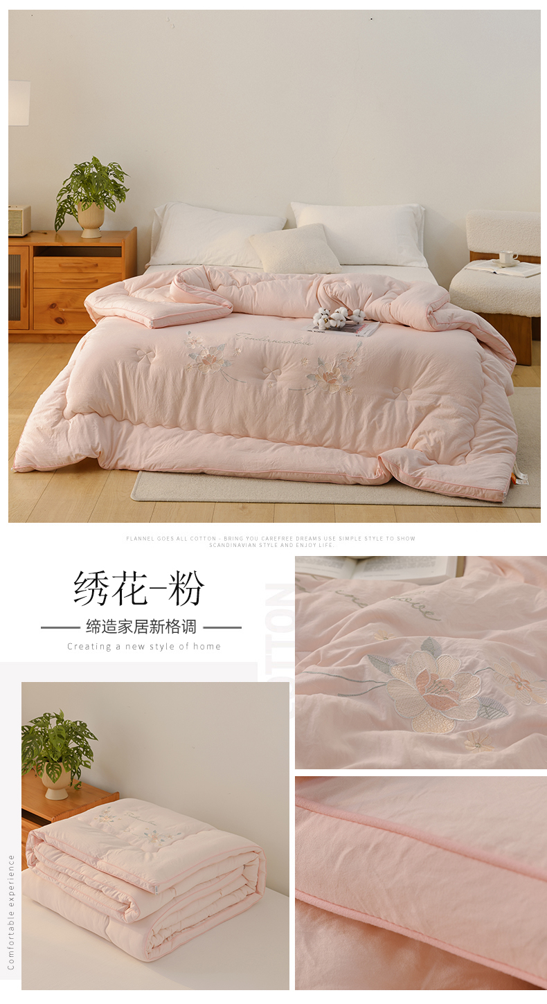 商品名称:雯雨家纺 2025新款A类绣花立体麻绳大豆被被子冬被春秋被被芯纤维被冬被被子被芯 绣花-粉