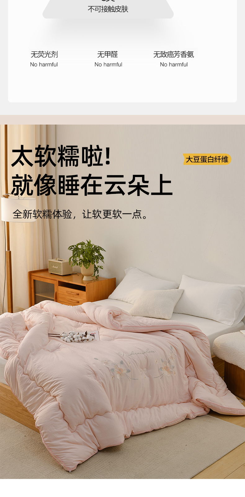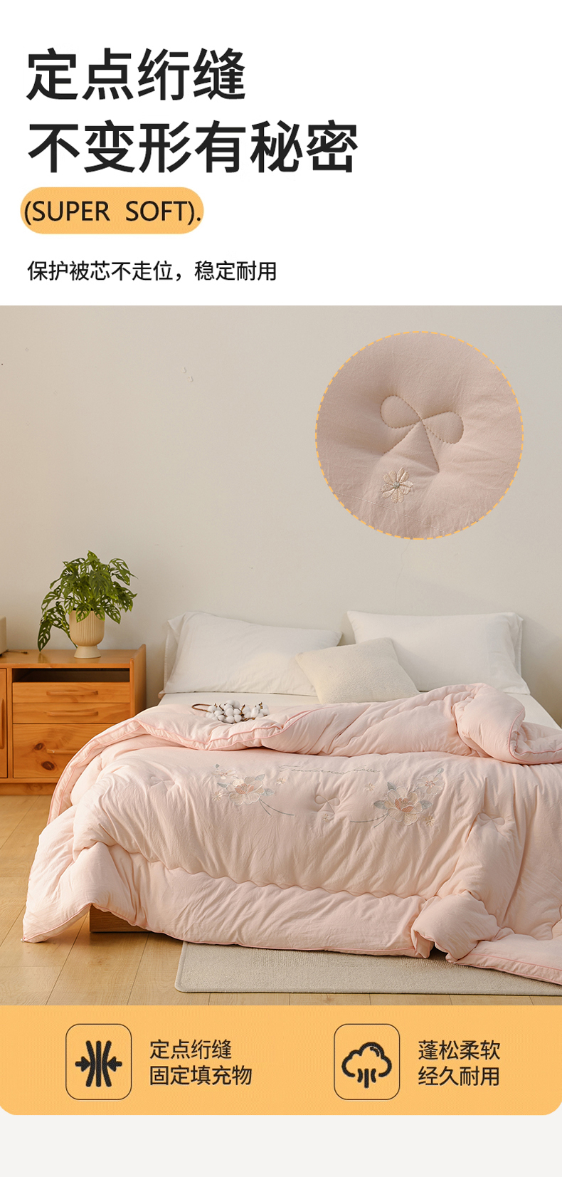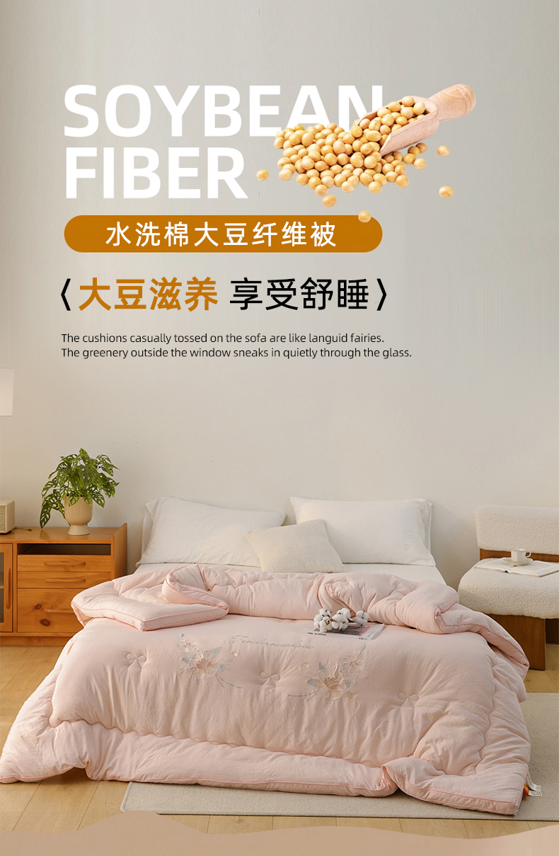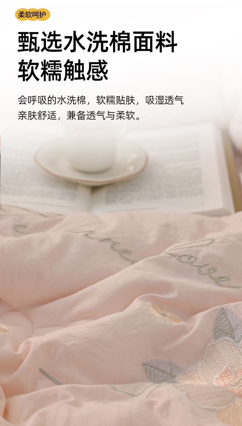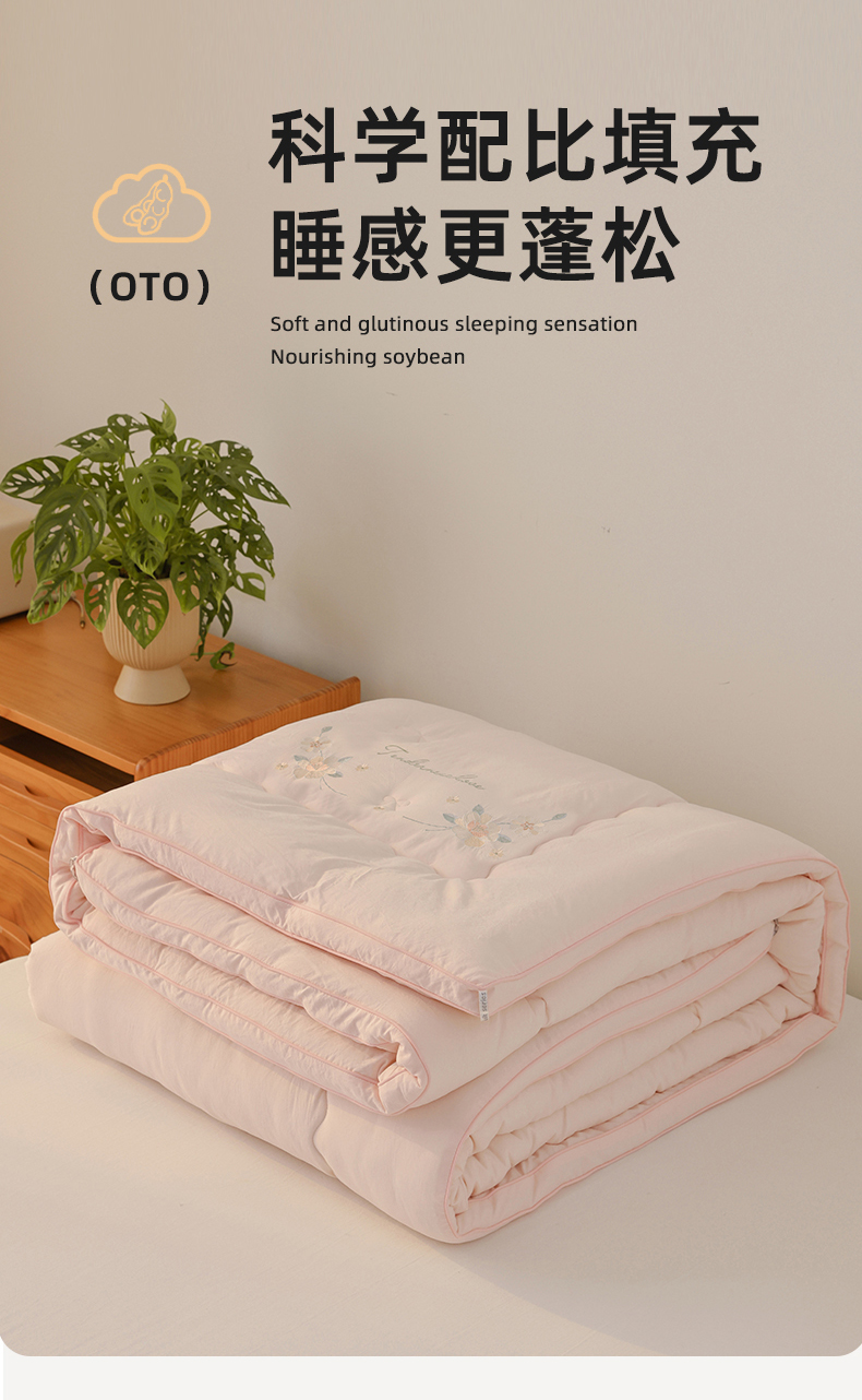 商品名称:雯雨家纺 2025新款A类绣花立体麻绳大豆被被子冬被春秋被被芯纤维被冬被被子被芯 绣花-粉