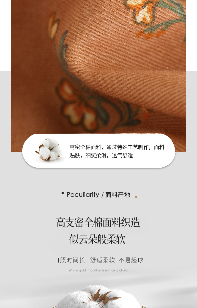 商品名称:绫韵家纺 2025秋冬新品生态全棉磨毛冬季纯棉磨毛四件套系列 花语遥香-咖