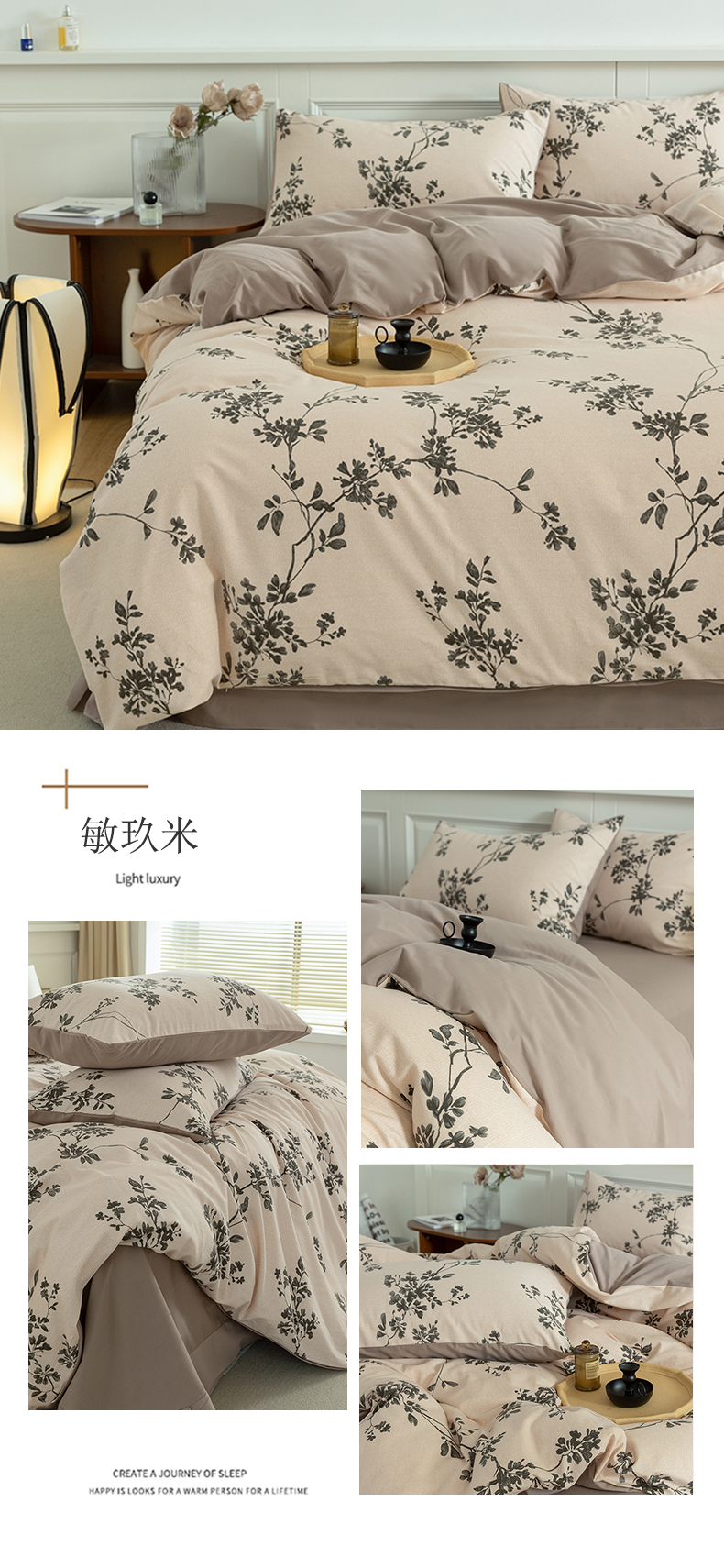 绫韵家纺 2025秋冬新品生态全棉磨毛冬季纯棉磨毛四件套系列 花语遥香-咖