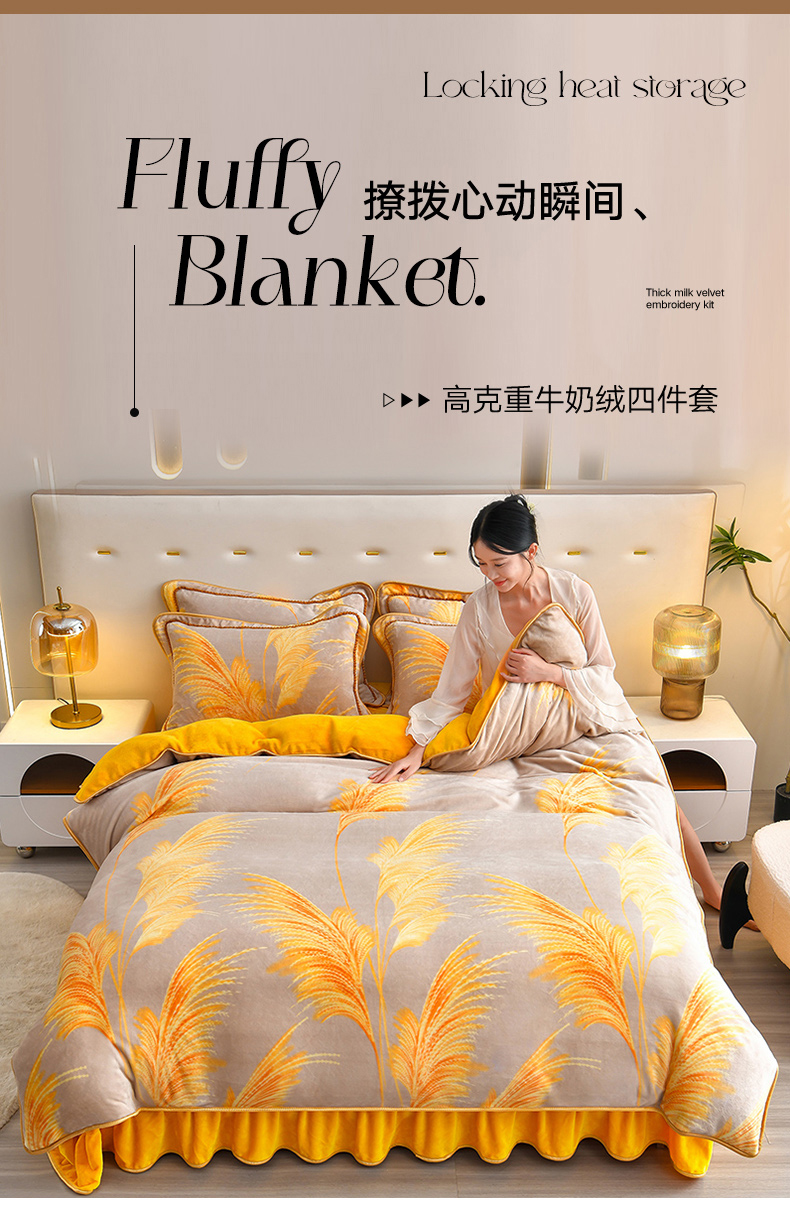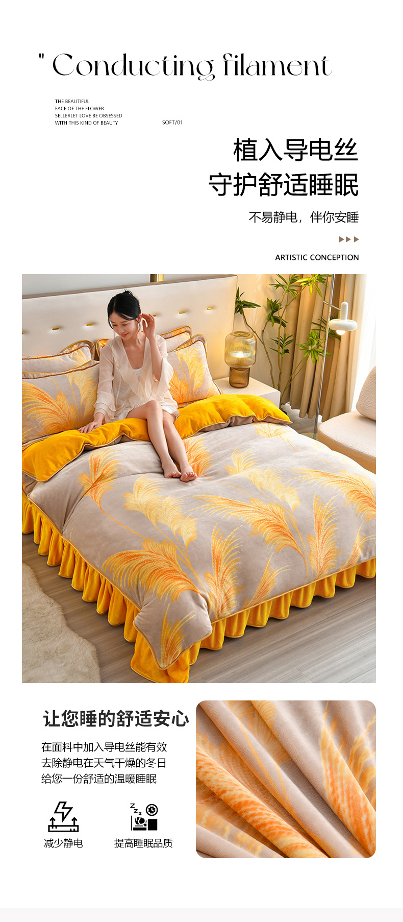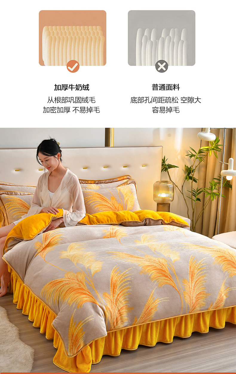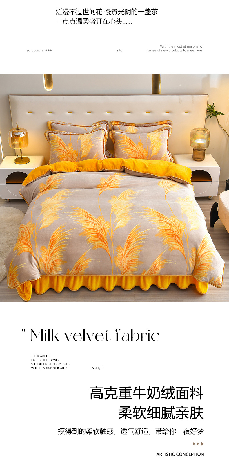亿品2025直播爆款9.5斤牛奶绒四件套加厚保暖床裙四件套 风吹麦浪