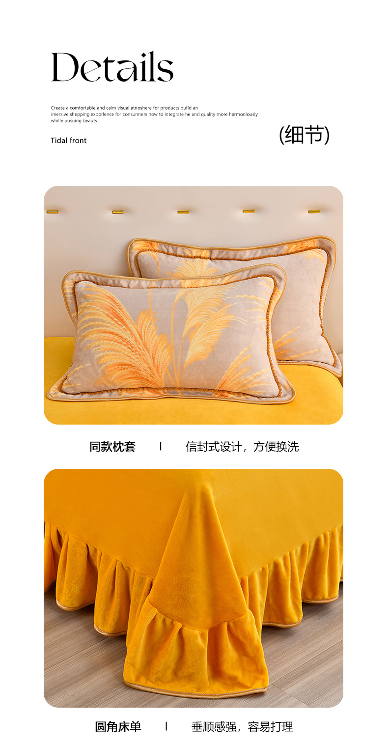 商品名称:亿品2025直播爆款9.5斤牛奶绒四件套加厚保暖床裙四件套 风吹麦浪