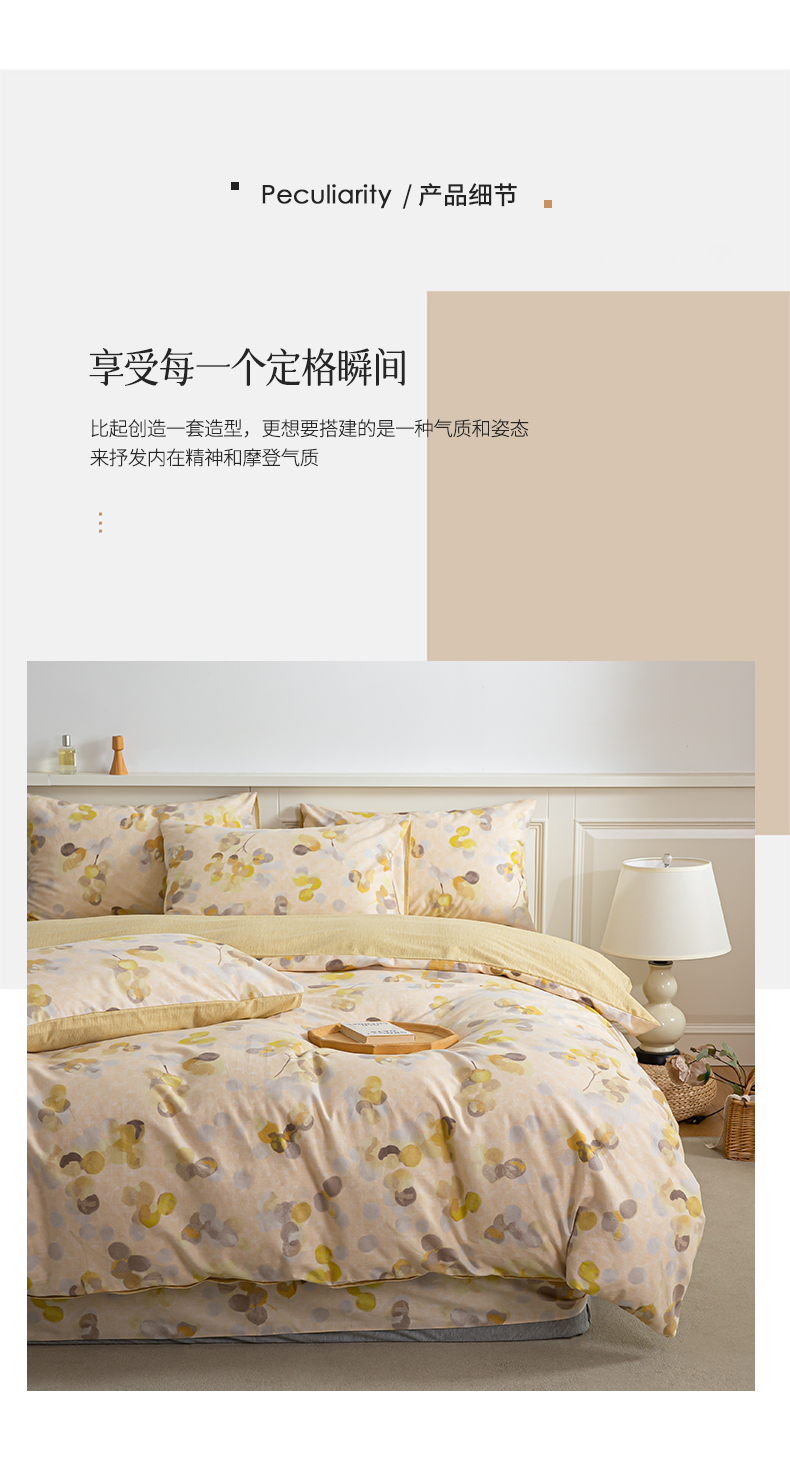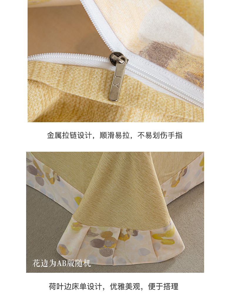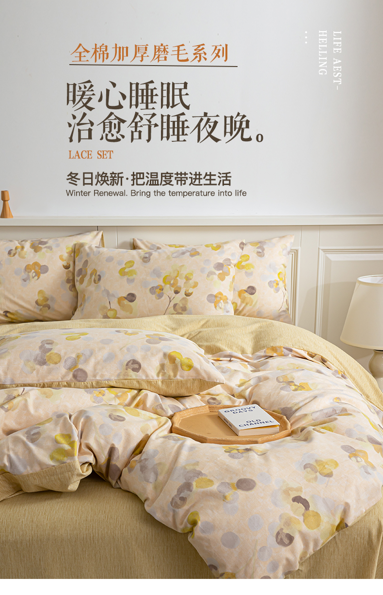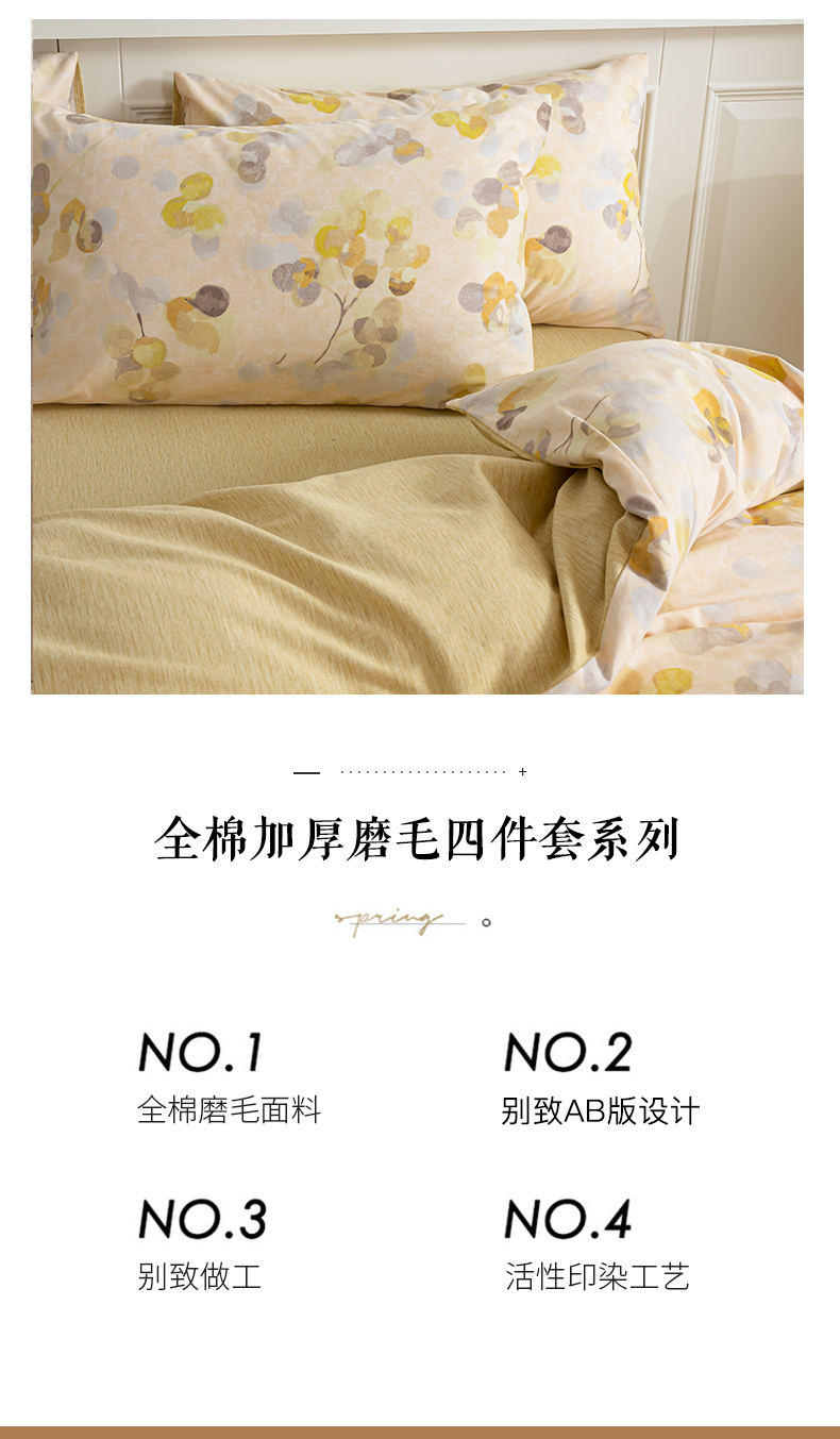 商品名称:绫韵家纺 2025秋冬新款印花全棉磨毛冬季加厚纯棉磨毛三件套四件套系列 四季风-黄