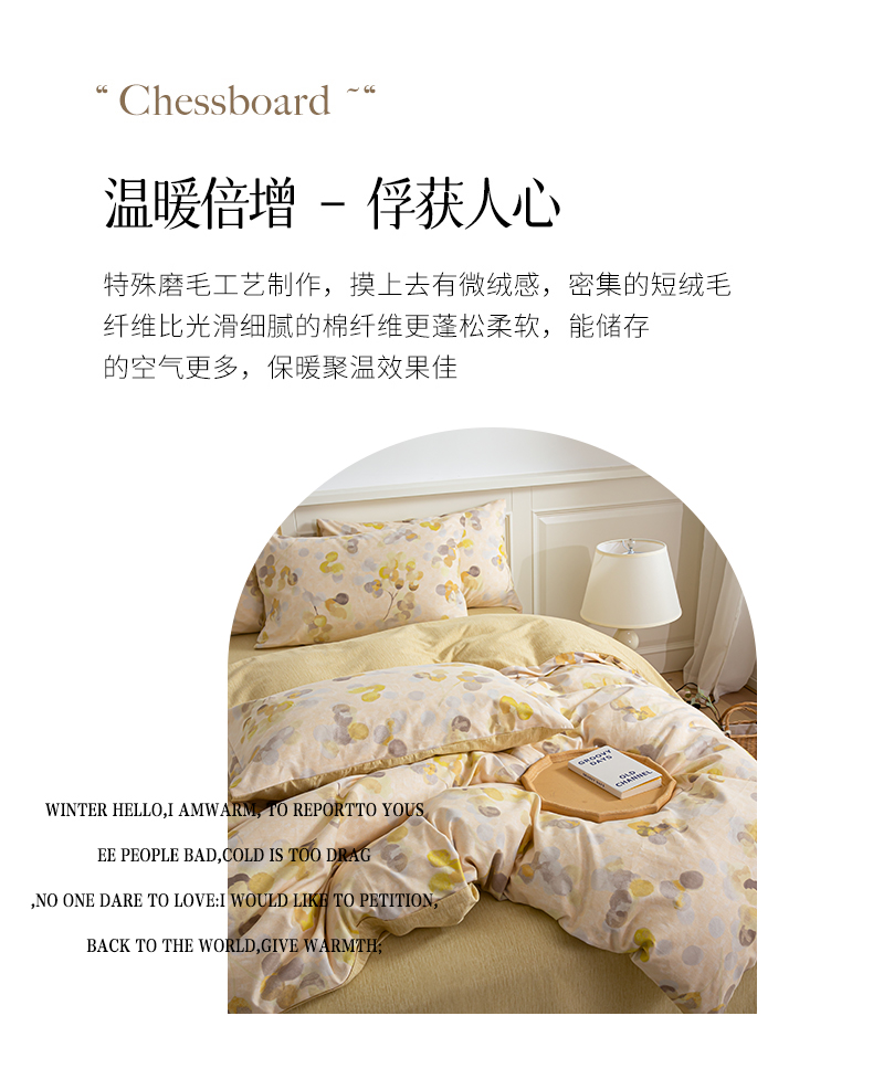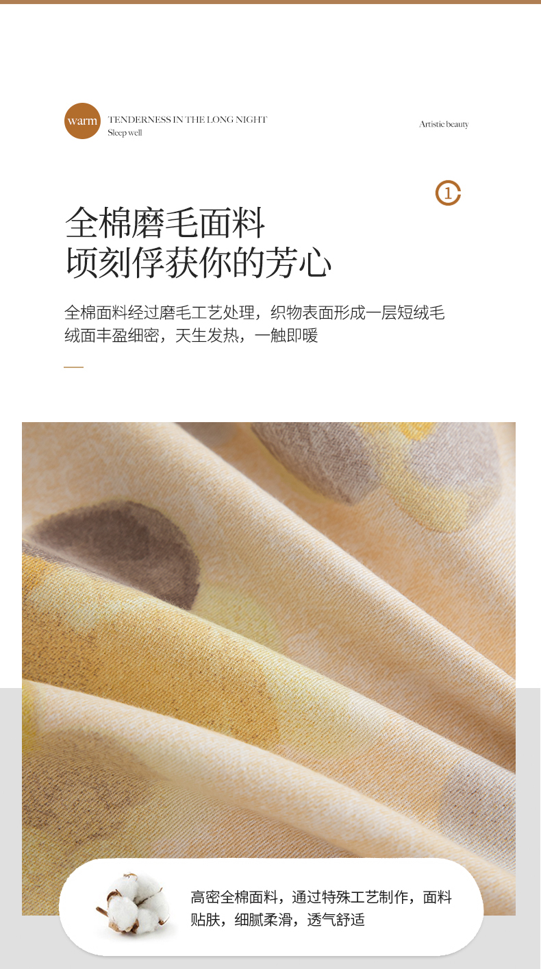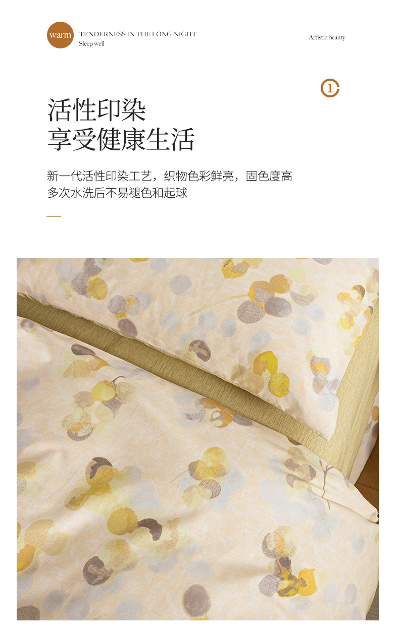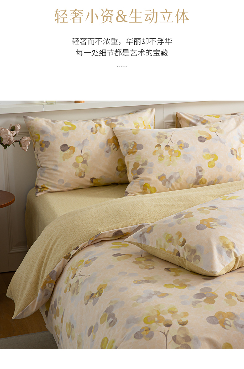 商品名称:绫韵家纺 2025秋冬新款印花全棉磨毛冬季加厚纯棉磨毛三件套四件套系列 四季风-黄