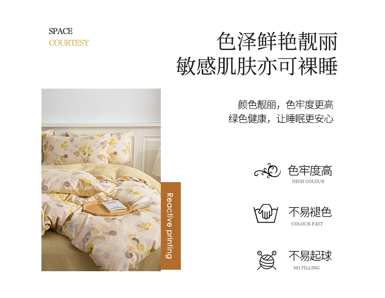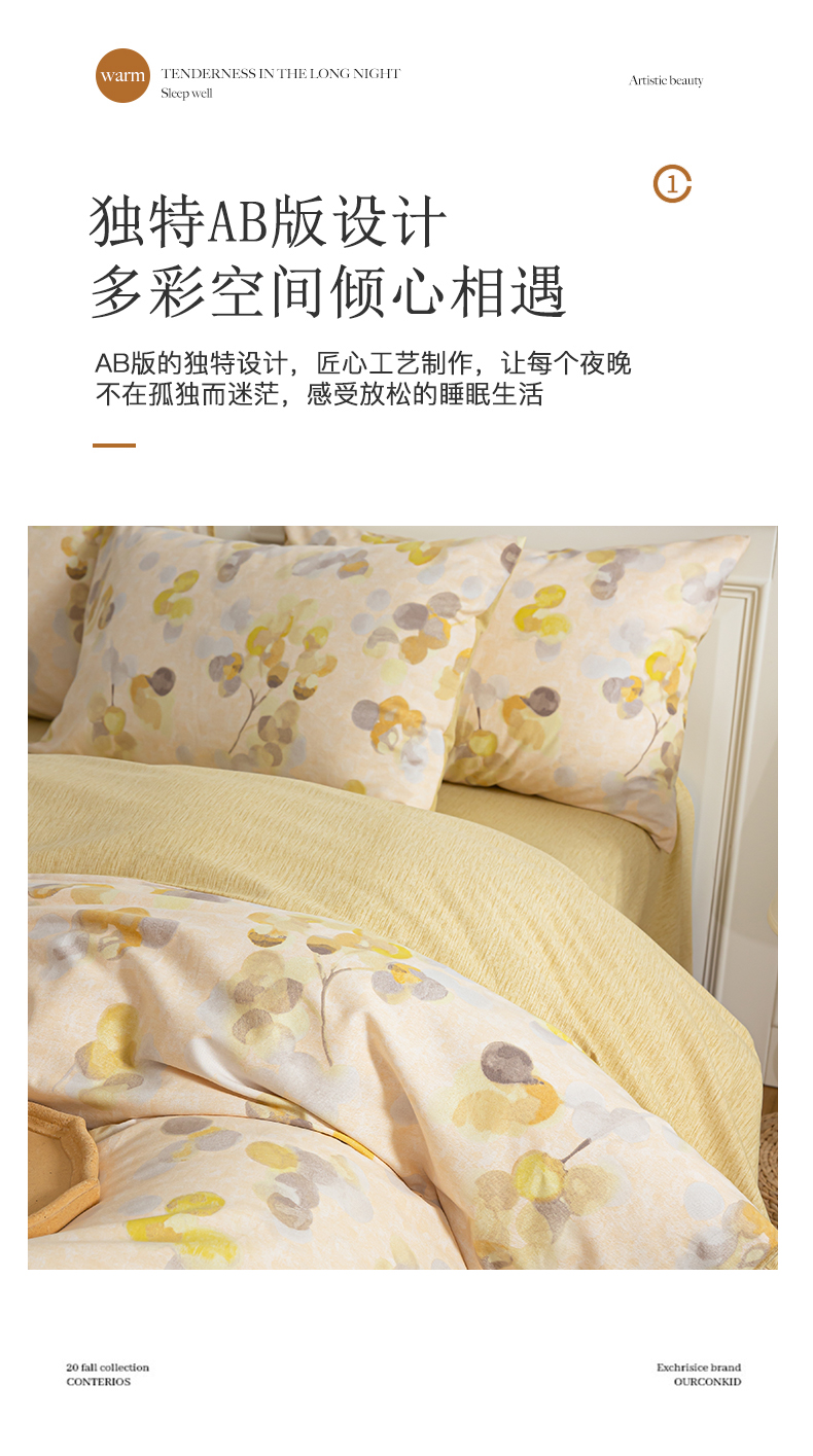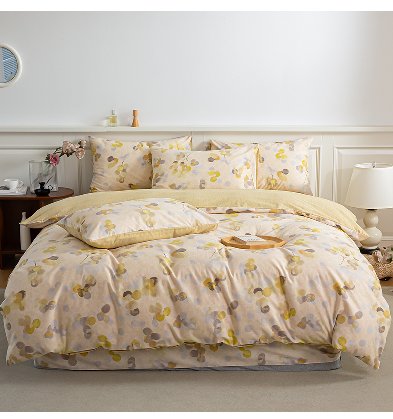 绫韵家纺 2025秋冬新款印花全棉磨毛冬季加厚纯棉磨毛三件套四件套系列 四季风-黄