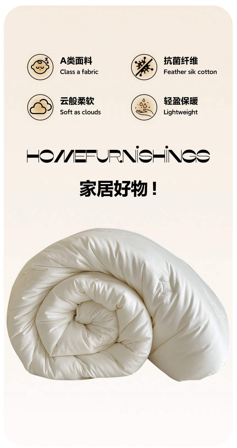 • 91家纺网 家纺一手货源 找家纺 (总)一加一 2025全棉大提花航天恒温立体抗菌被子被芯,白色