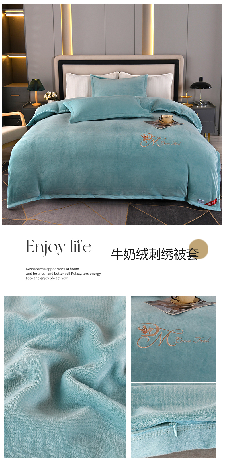 商品名称:尚品凤凰 2025新款牛奶绒绣花单被套单品被套单件被套 灰色