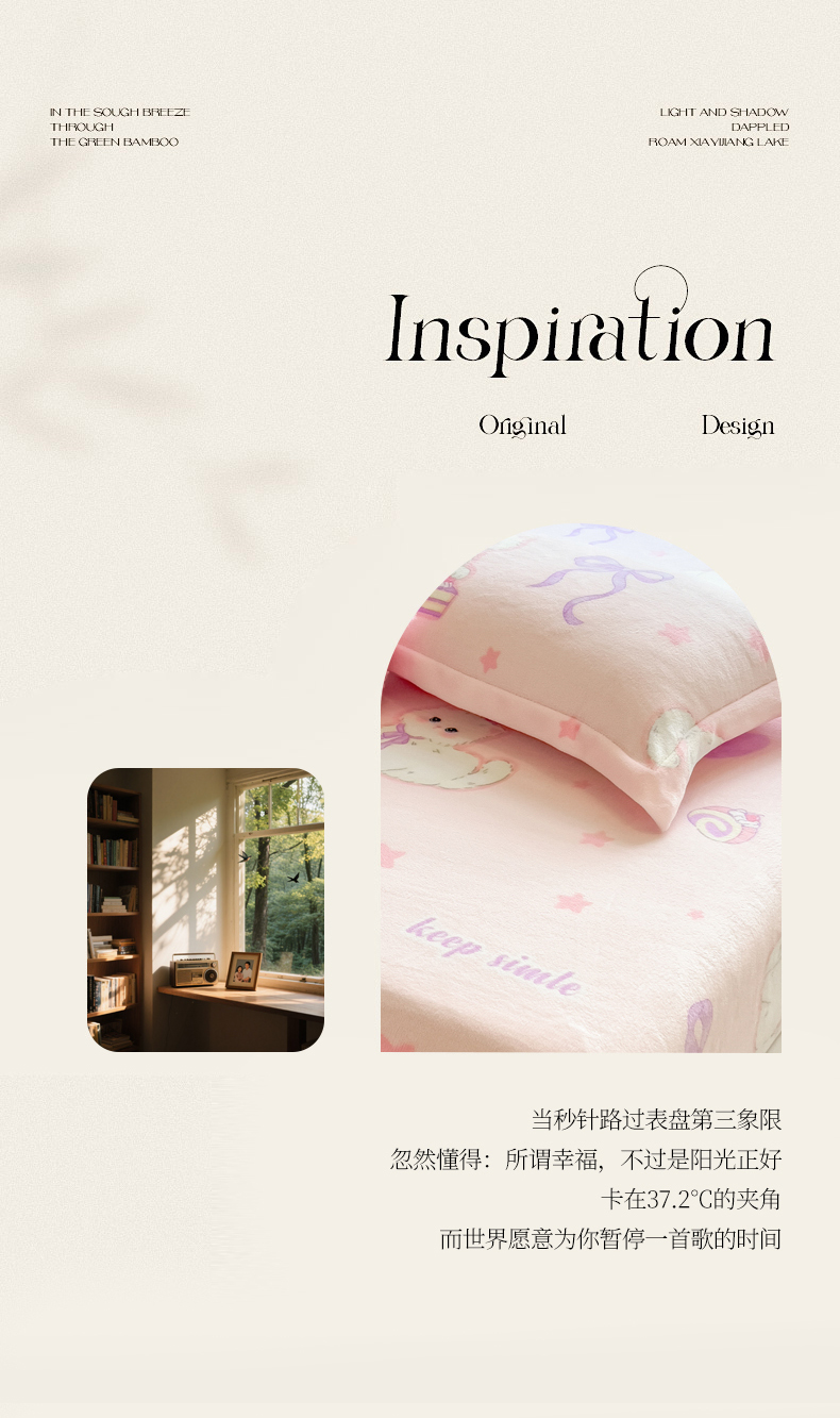 • 91家纺网 家纺一手货源 找家纺 丝羽坊 2025新款印花小清新牛奶绒印花床笠三件套 小美好