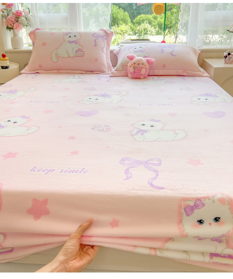 丝羽坊 2025新款印花小清新牛奶绒印花床笠三件套 小美好