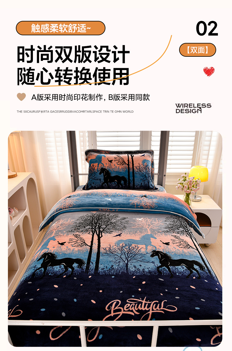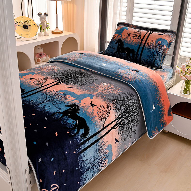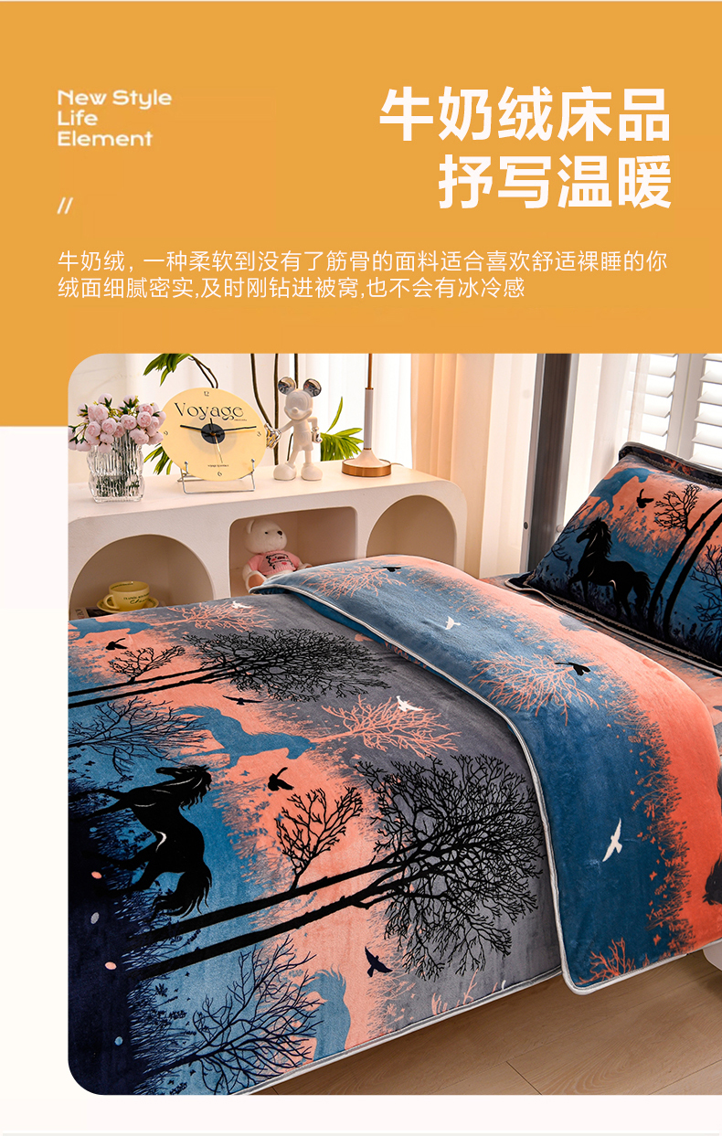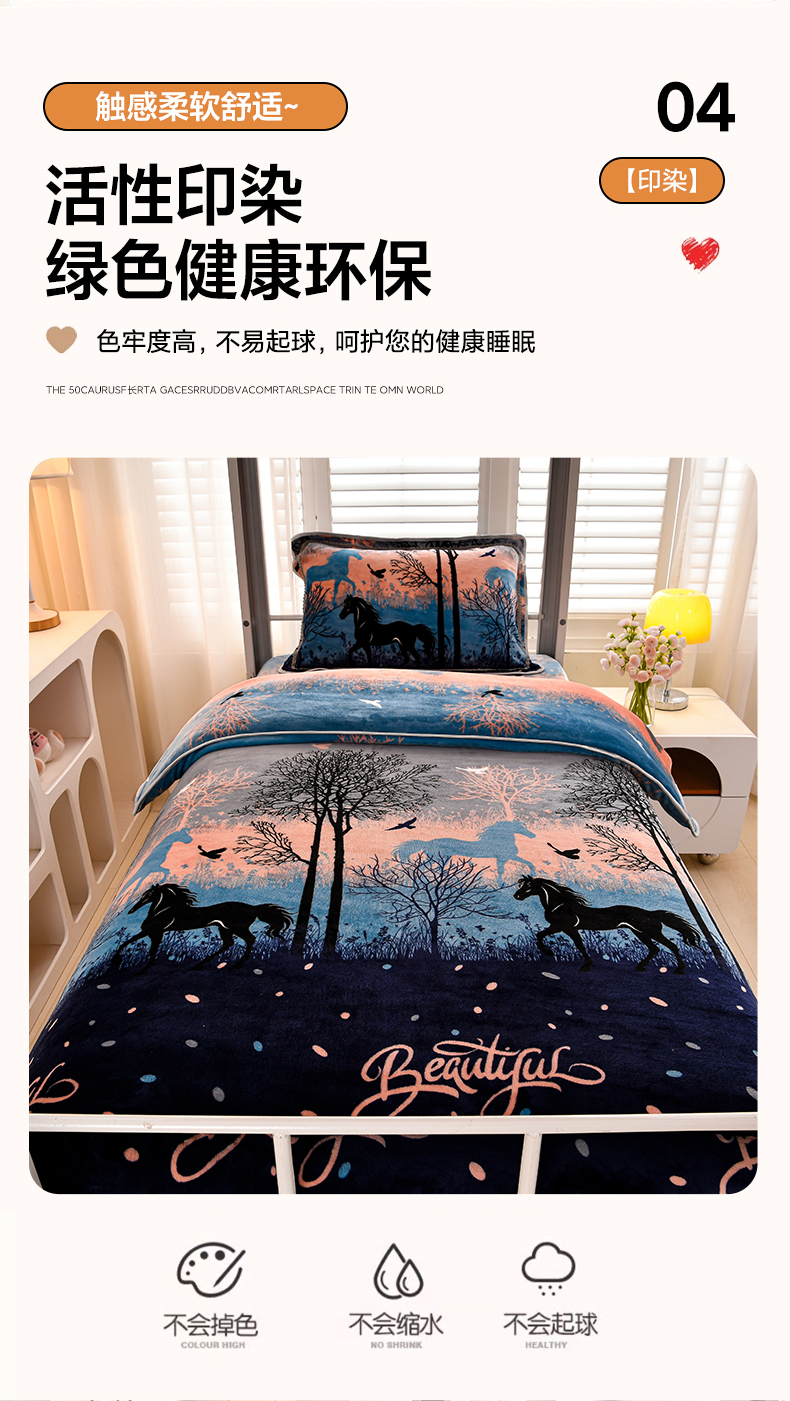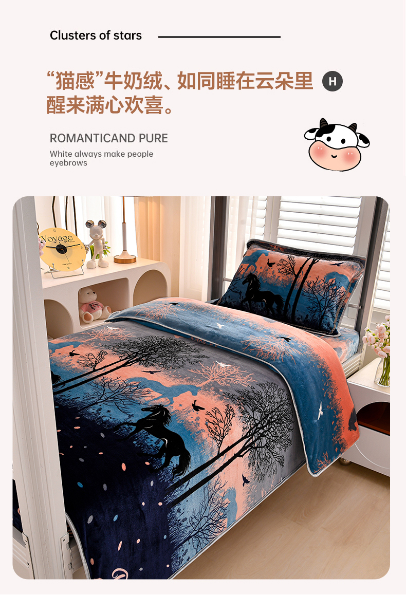 商品名称:绒品荟家纺 2025新款加厚牛奶绒三件套金貂绒法莱绒冬季床单款床笠款学生宿舍单人三件套天马行空