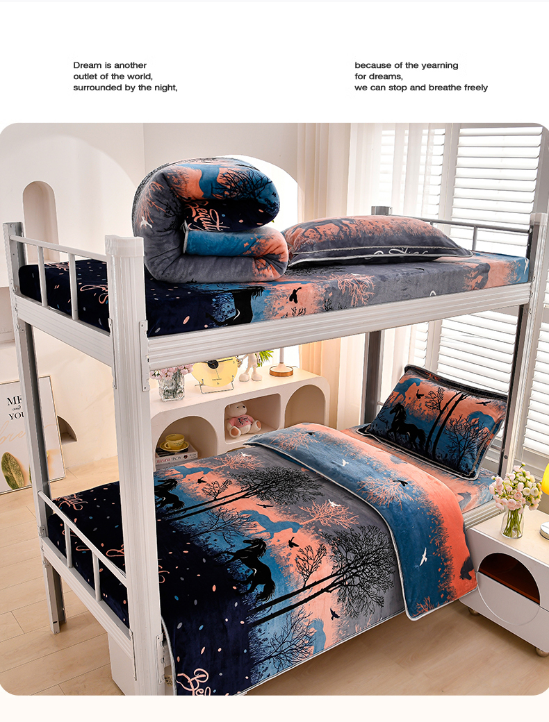 绒品荟家纺 2025新款加厚牛奶绒三件套金貂绒法莱绒冬季床单款床笠款学生宿舍单人三件套天马行空