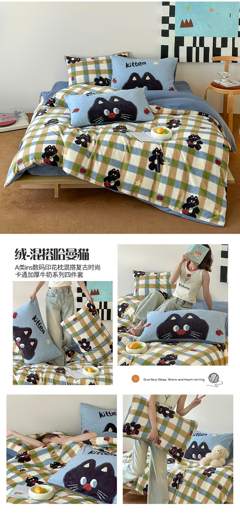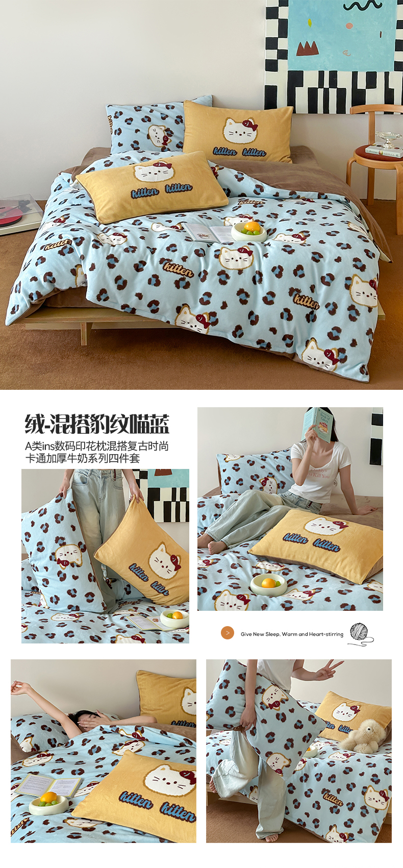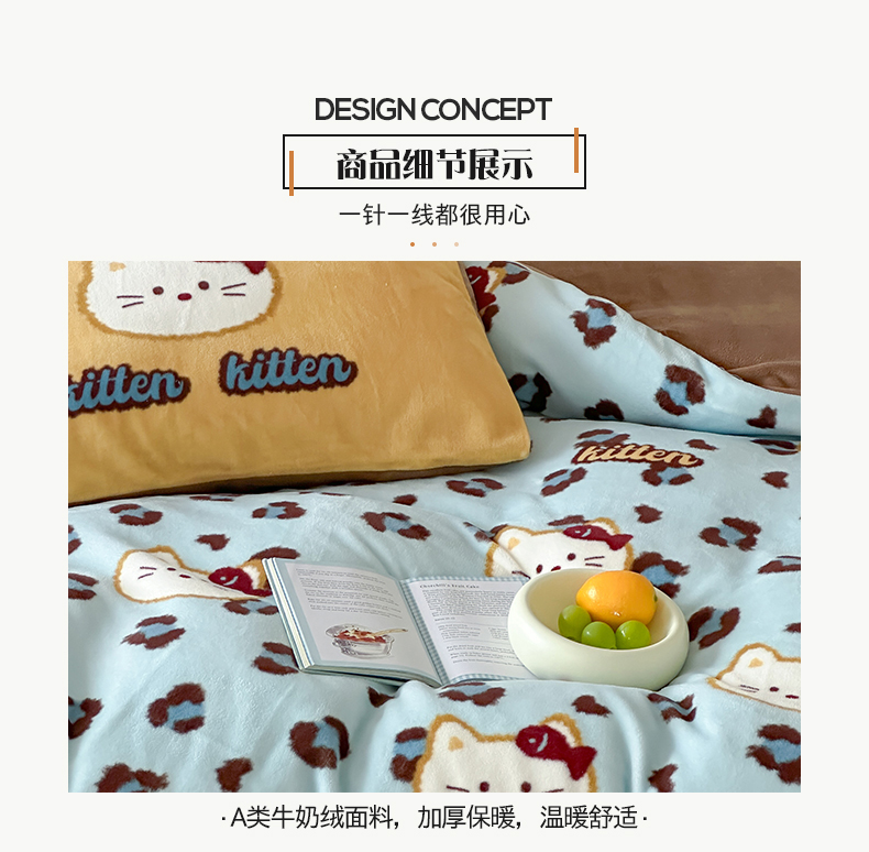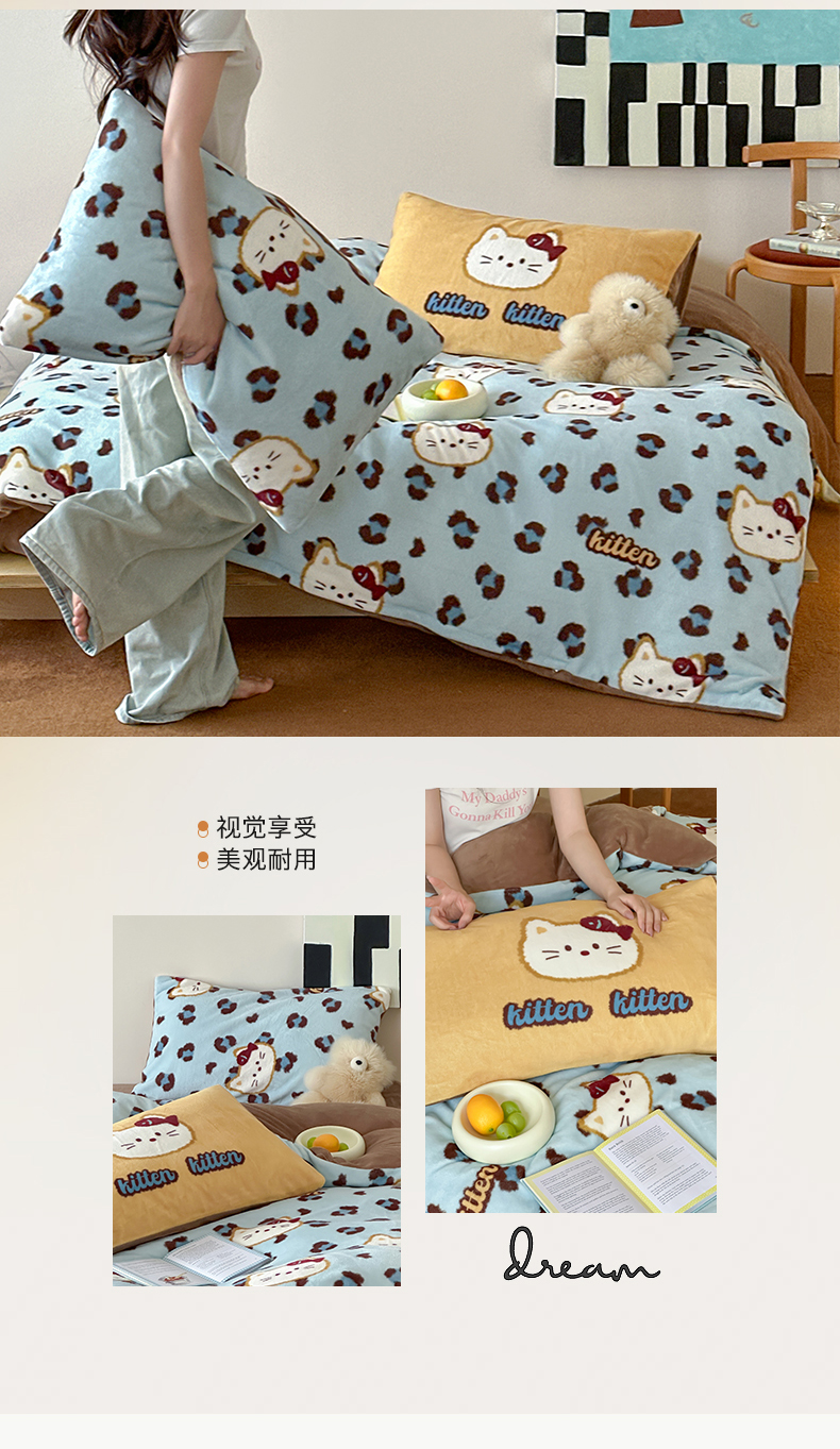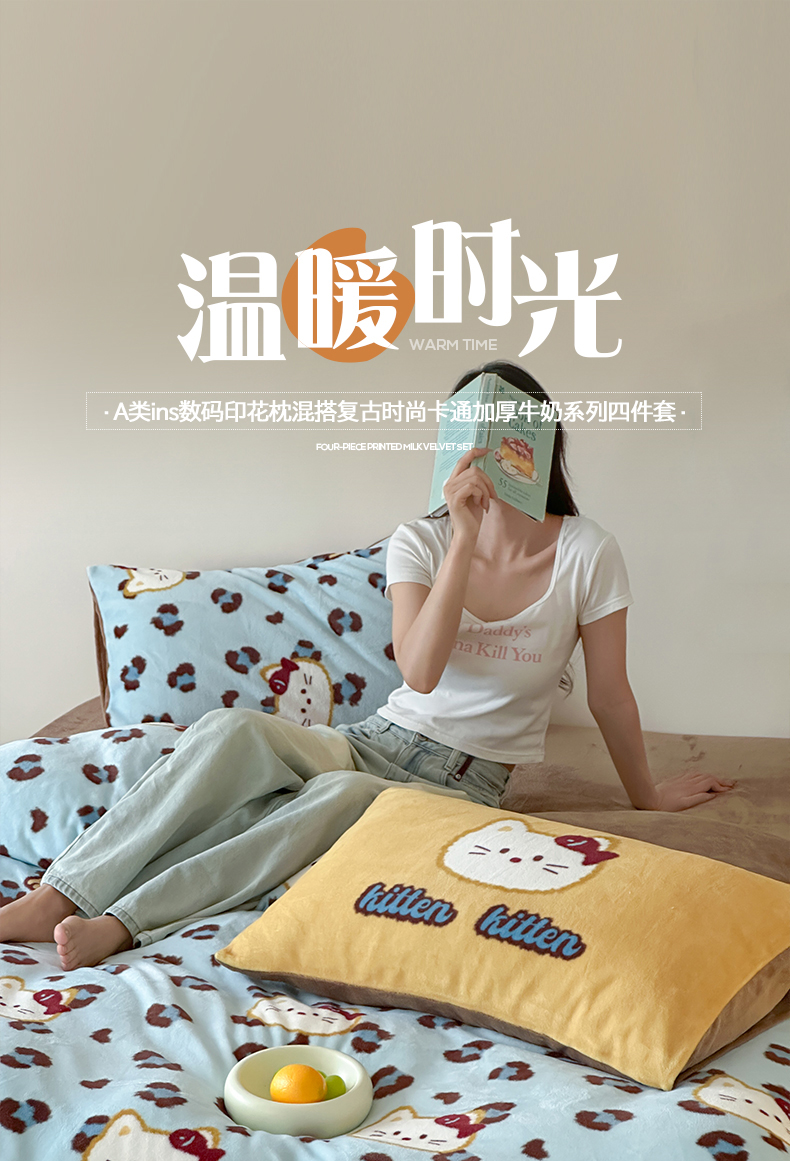 商品名称:(总)桃子家居 2025新款A类ins数码印花枕混搭复古时尚卡通加厚牛奶系列四件套