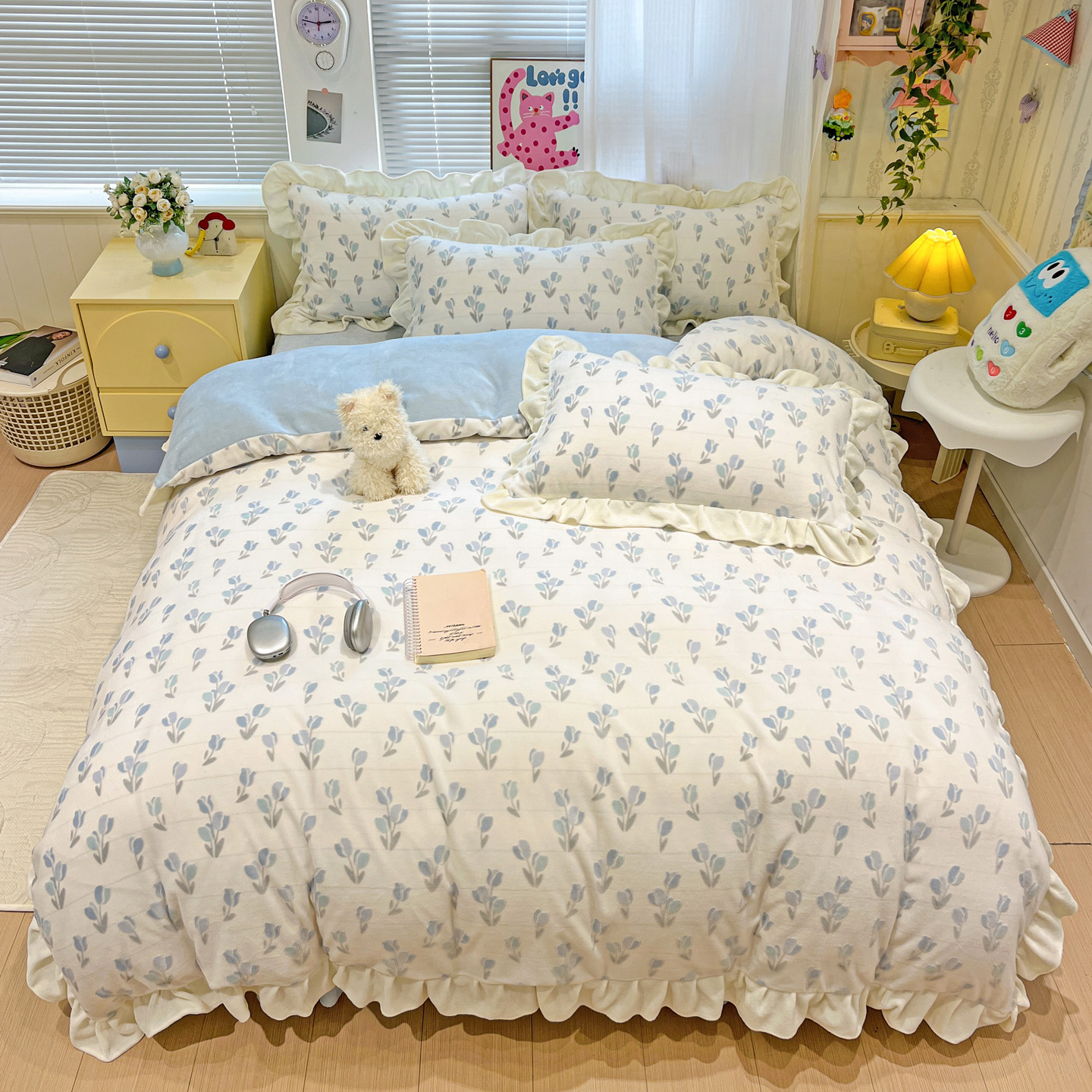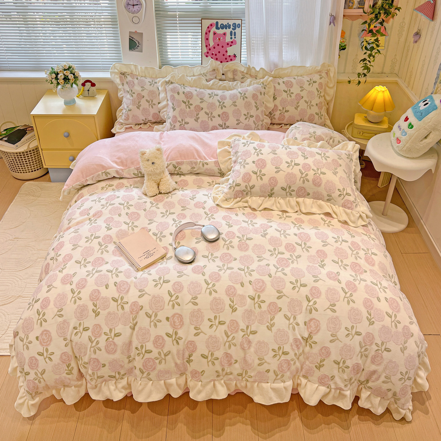 当前位置: 91家纺网 > 商品网购 > 床品套件 > 四件套 > 牛奶绒四件套 > 麦朵家居 2025花边款雕花绒立体印花牛奶绒高克重宝宝绒床裙款四件套牛奶绒床笠兔绒三件套 樱花-粉