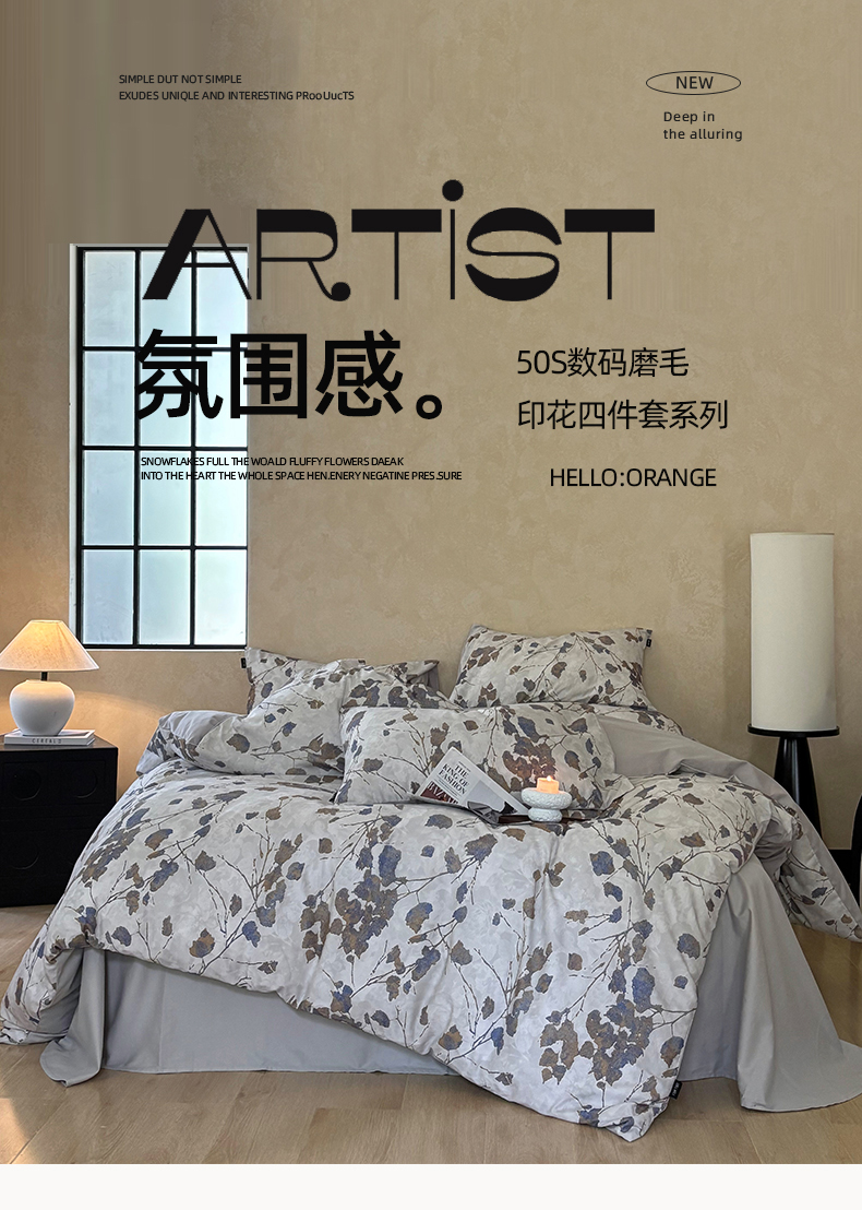 商品名称:(总)FORTWO家纺原创设计(FOR TWO家纺) 2025新款50全棉纯棉数码磨毛印花四件套-场景二