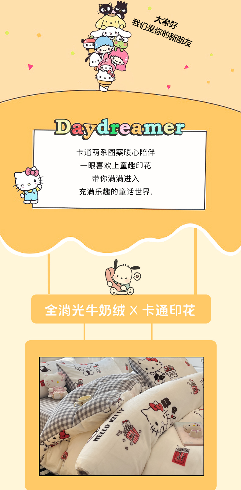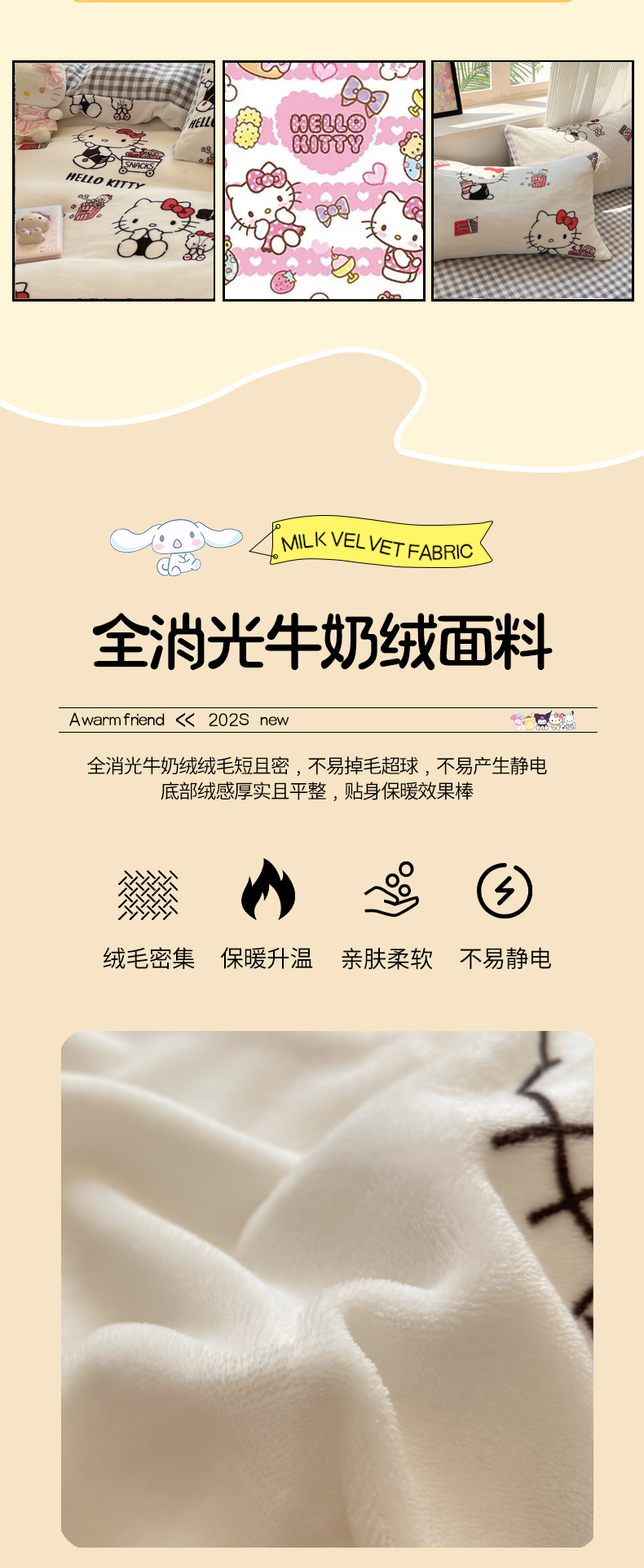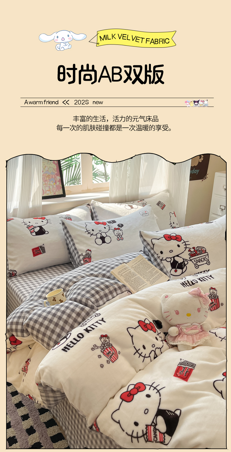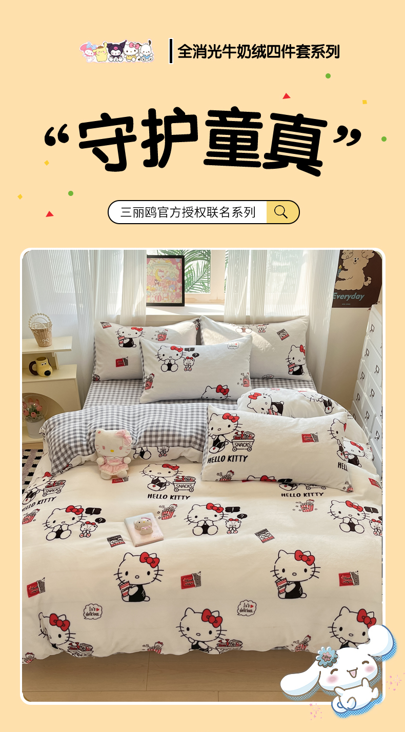 当前位置: 91家纺网 > 商品网购 > 床品套件 > 四件套 > 牛奶绒四件套 > 三朵家纺 2025新款三丽鸥印花牛奶绒四件套 凯蒂公主