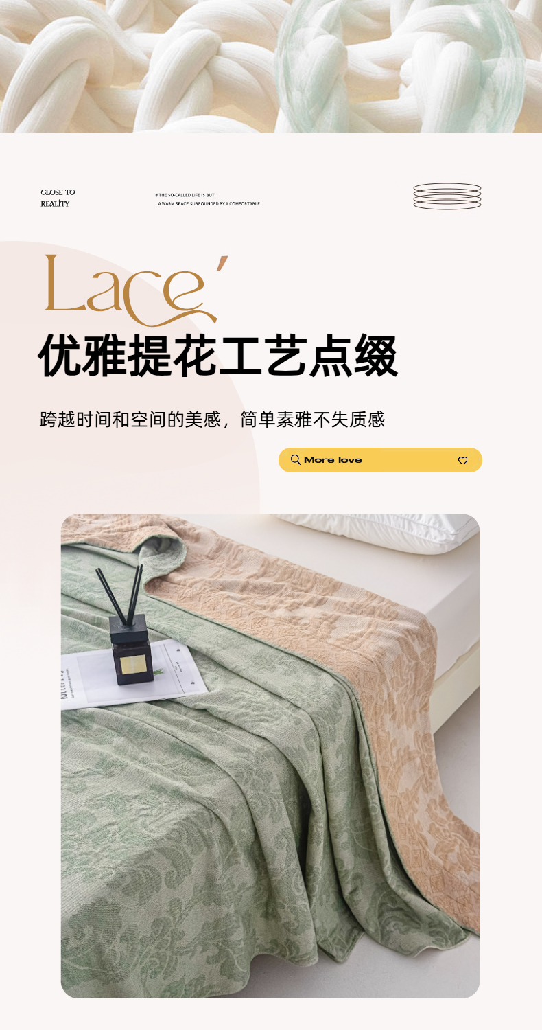 商品名称:悦然毛巾被 2025全棉欧式提花纱布毛巾被毛毯-洛可可 洛可可灰青