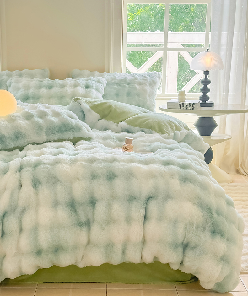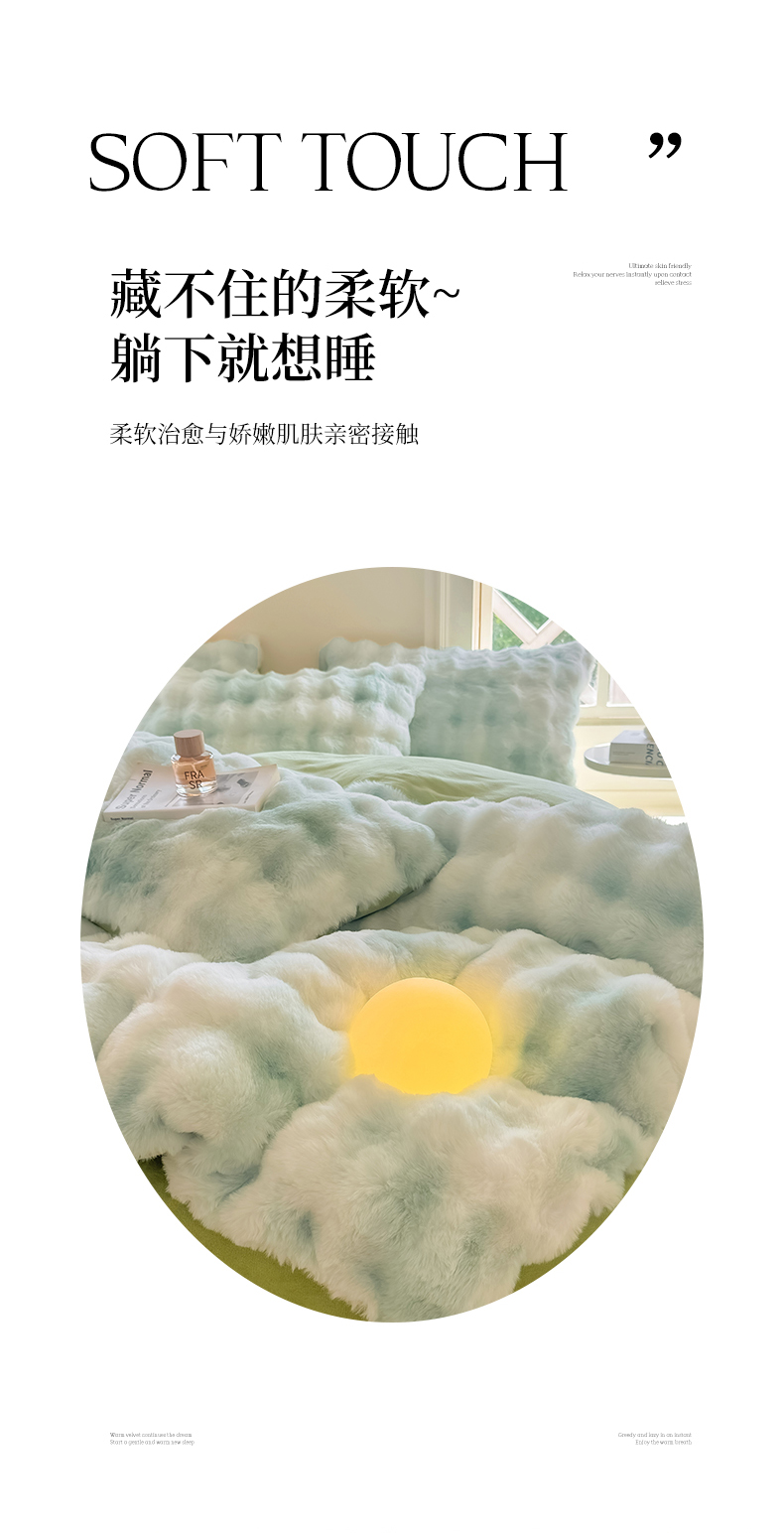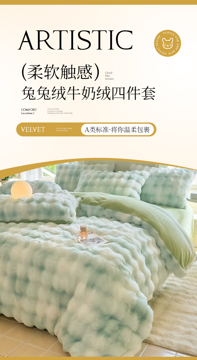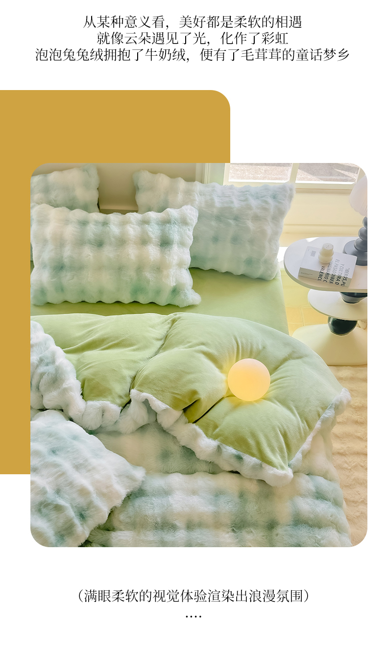 当前位置: 91家纺网 > 商品网购 > 床品套件 > 四件套 > 其它四件套 > 品乐家纺 2025新款简约纯色A类220克泡泡兔绒四件套 渐变-雨露青
