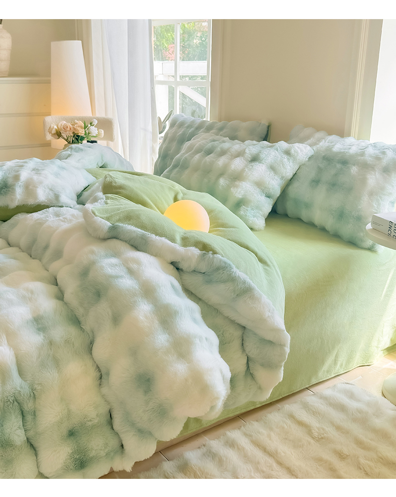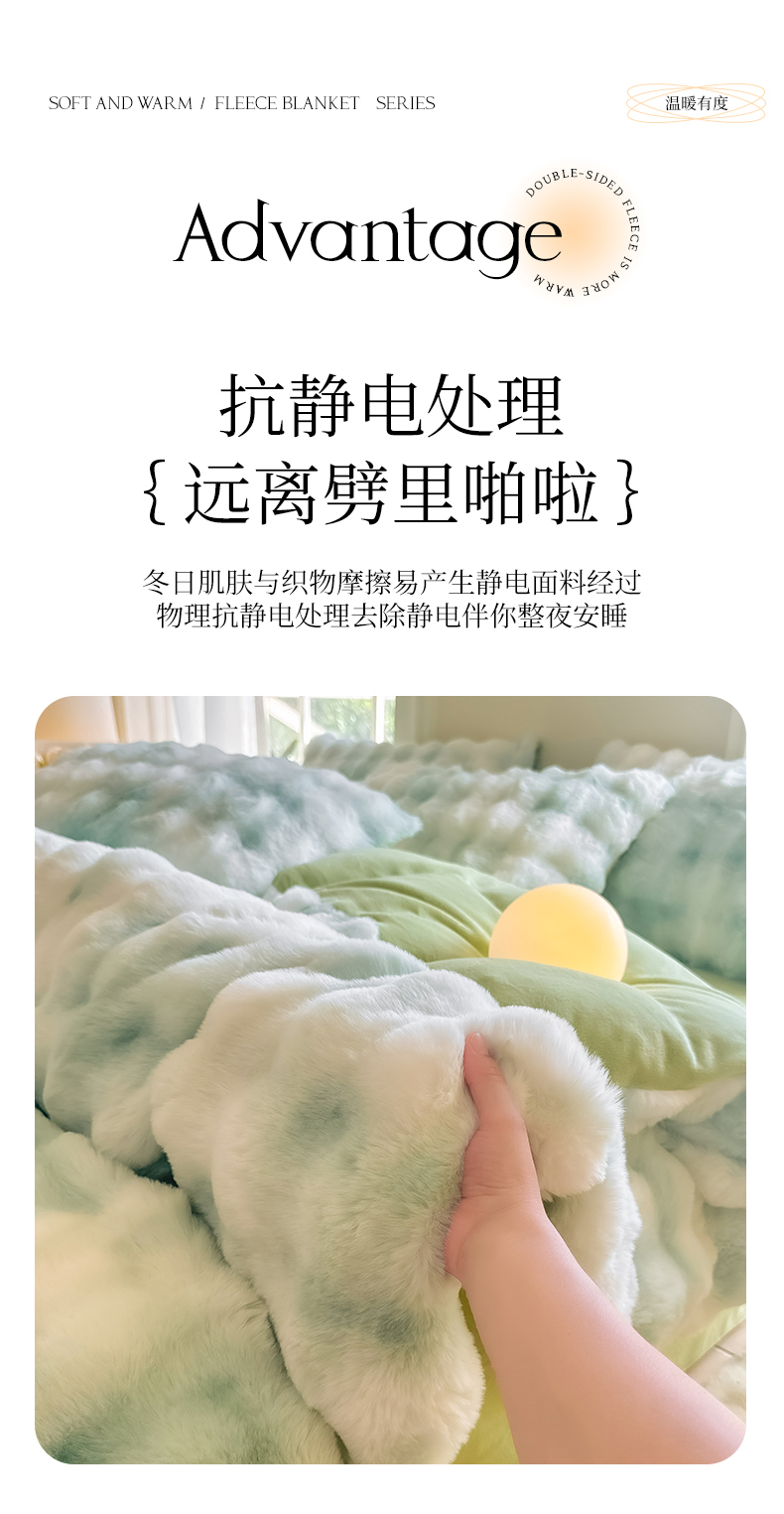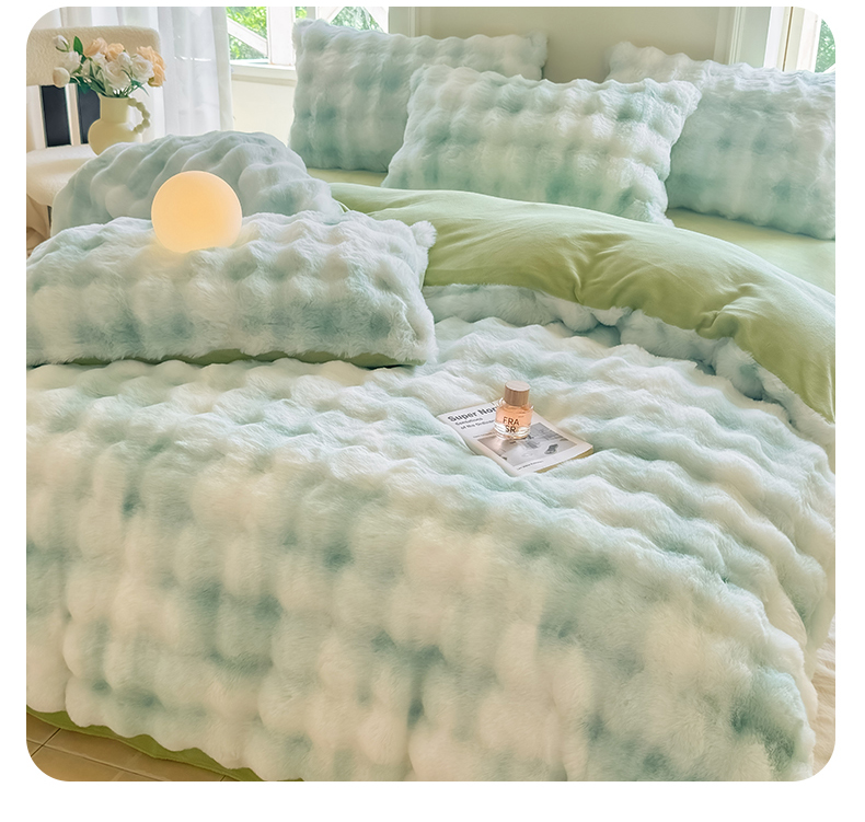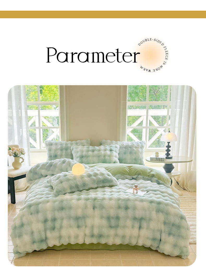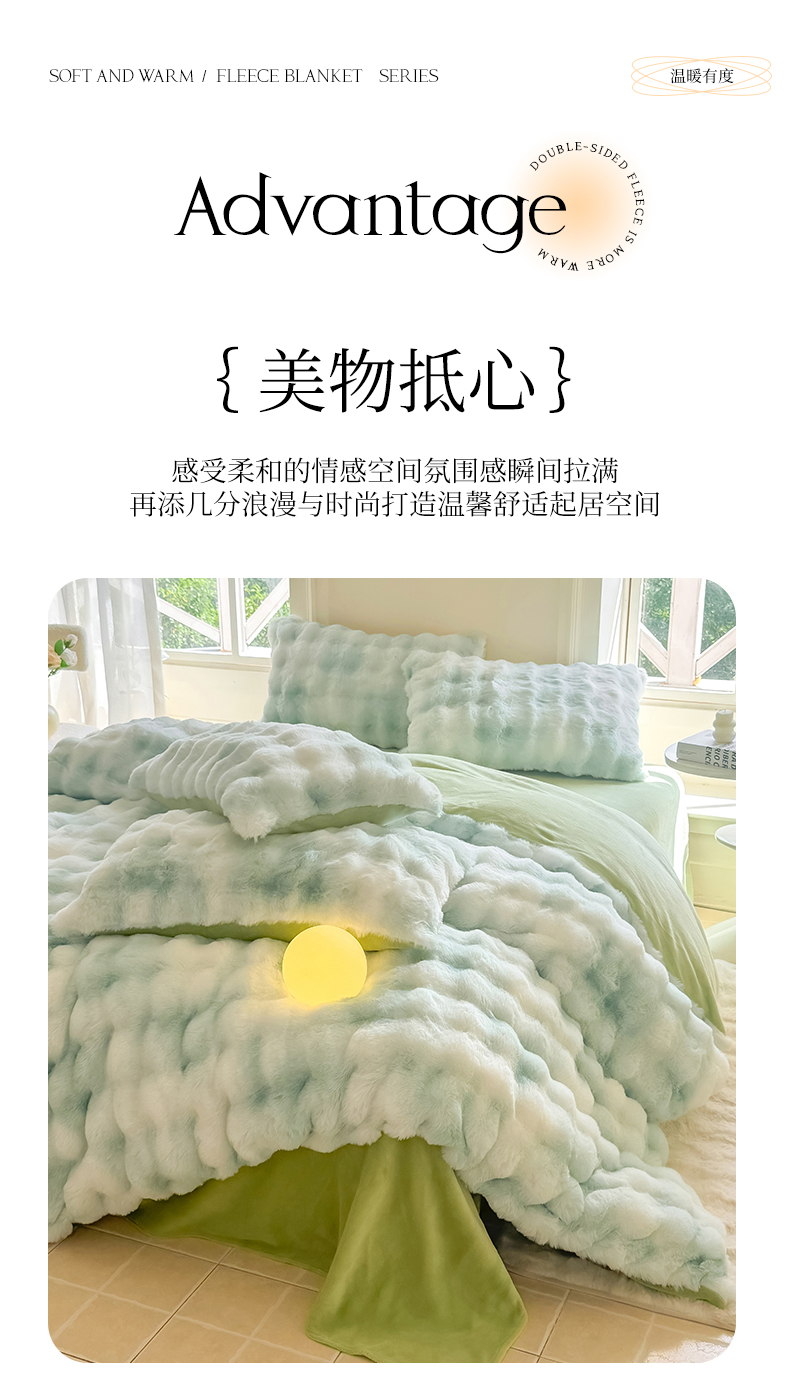 当前位置: 91家纺网 > 商品网购 > 床品套件 > 四件套 > 其它四件套 > 品乐家纺 2025新款简约纯色A类220克泡泡兔绒四件套 渐变-雨露青