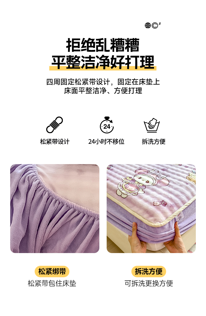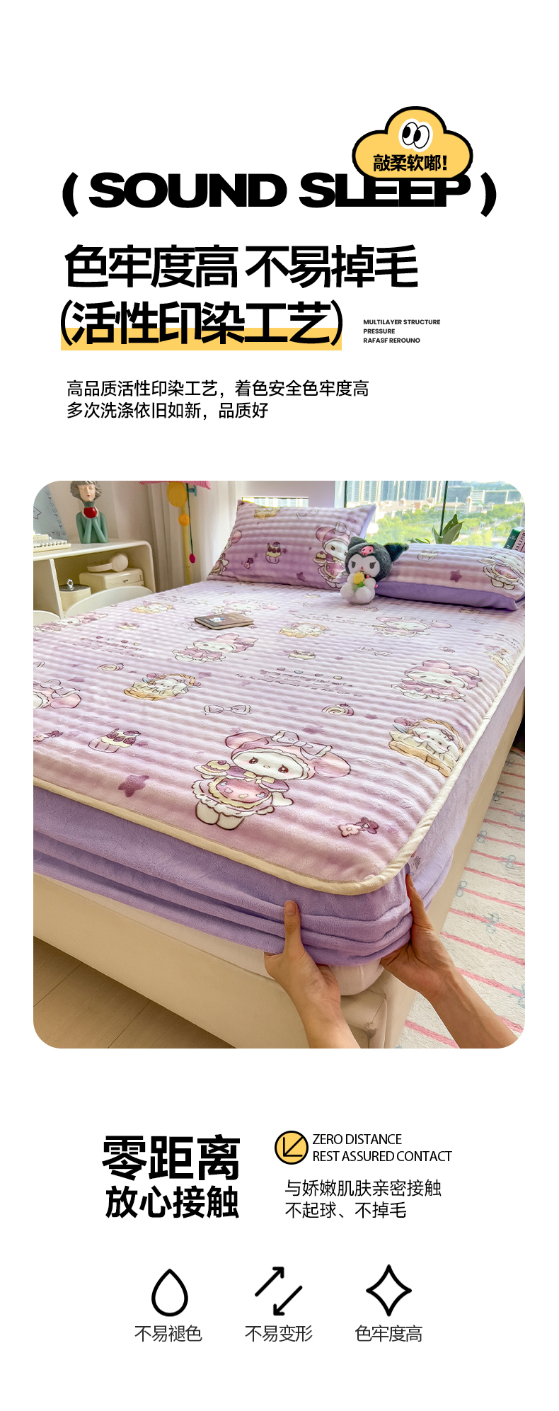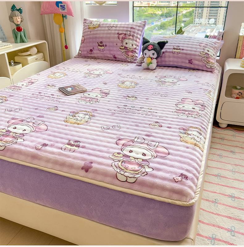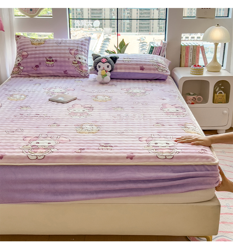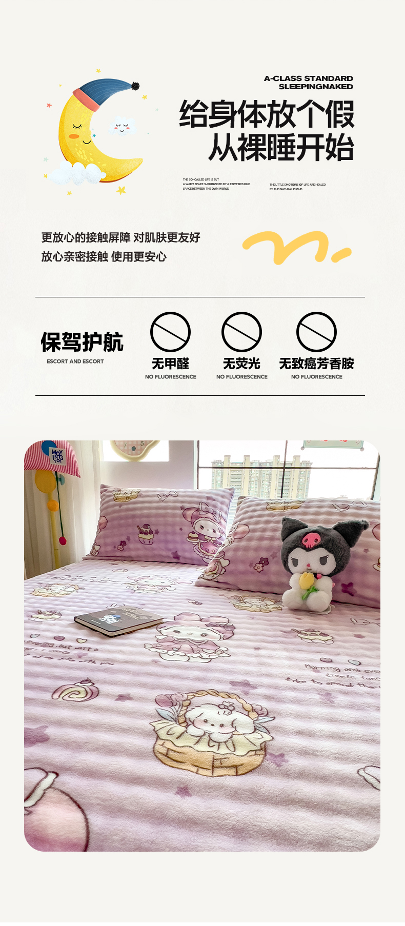 • 91家纺网 家纺一手货源 找家纺 摩妮卡 2025新款加厚牛奶绒泡泡绒床笠三件套 蝴蝶结美乐蒂