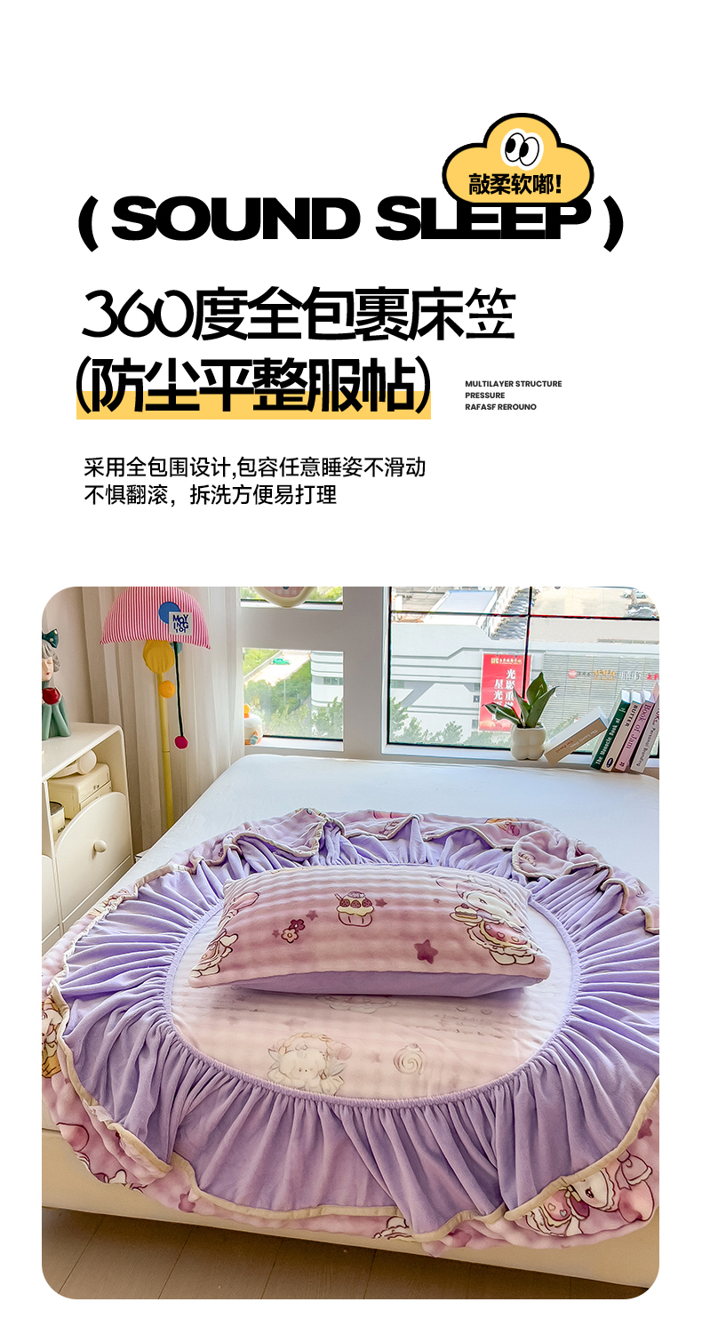 摩妮卡 2025新款加厚牛奶绒泡泡绒床笠三件套 蝴蝶结美乐蒂