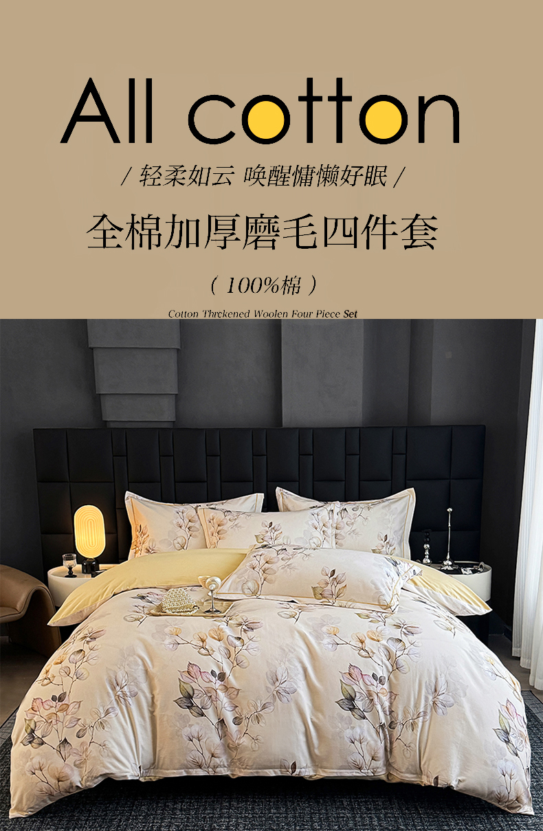 当前位置: 91家纺网 > 商品网购 > 床品套件 > 四件套 > 全棉普通四件套 > 金盛纺 2025新款全棉纯棉加厚磨毛印花四件套 舒蔓枝